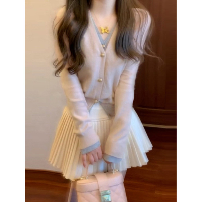 新年穿搭粉色假兩件毛衣女秋冬2026新款針織衫巨好看韓系外套上衣