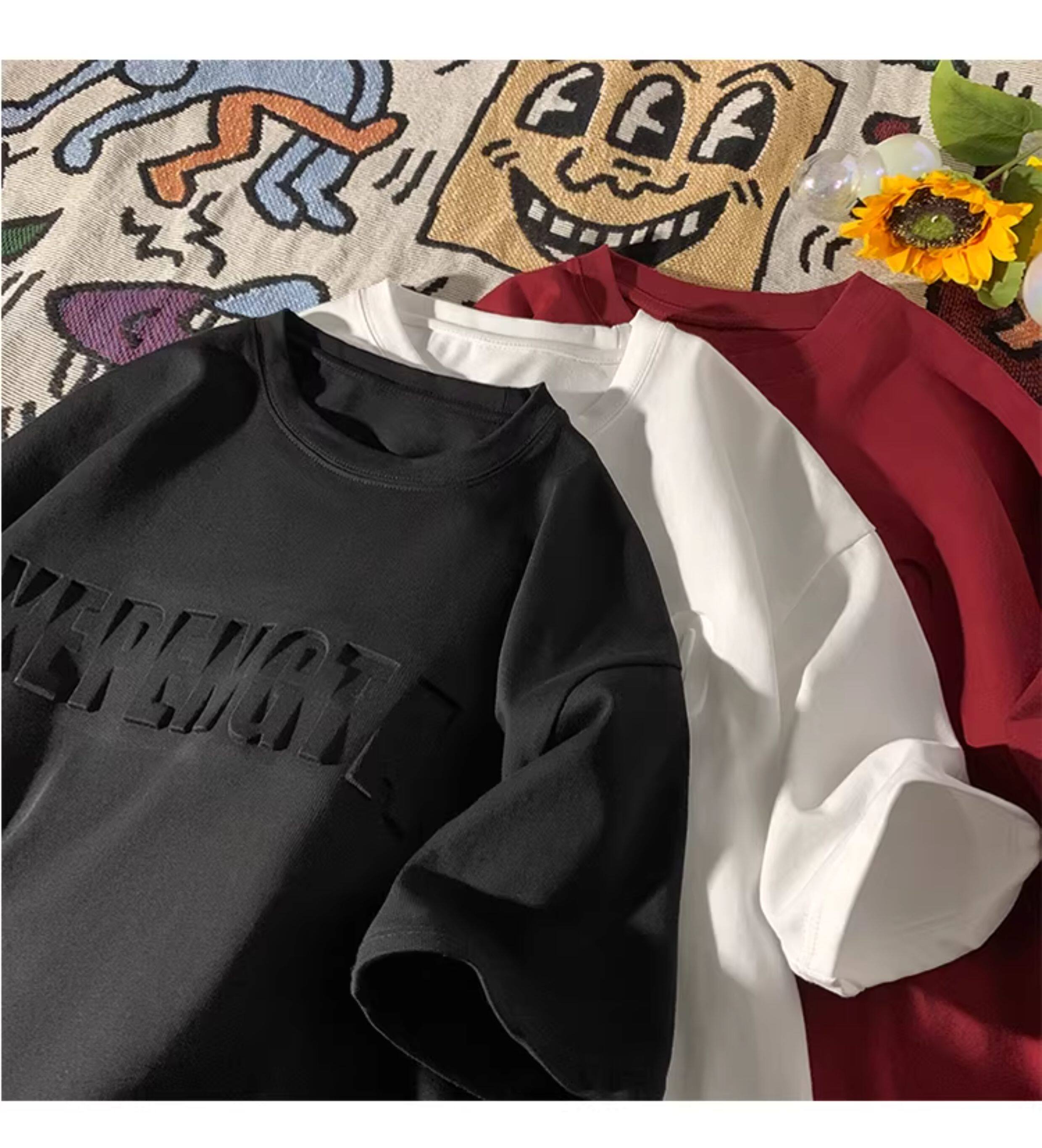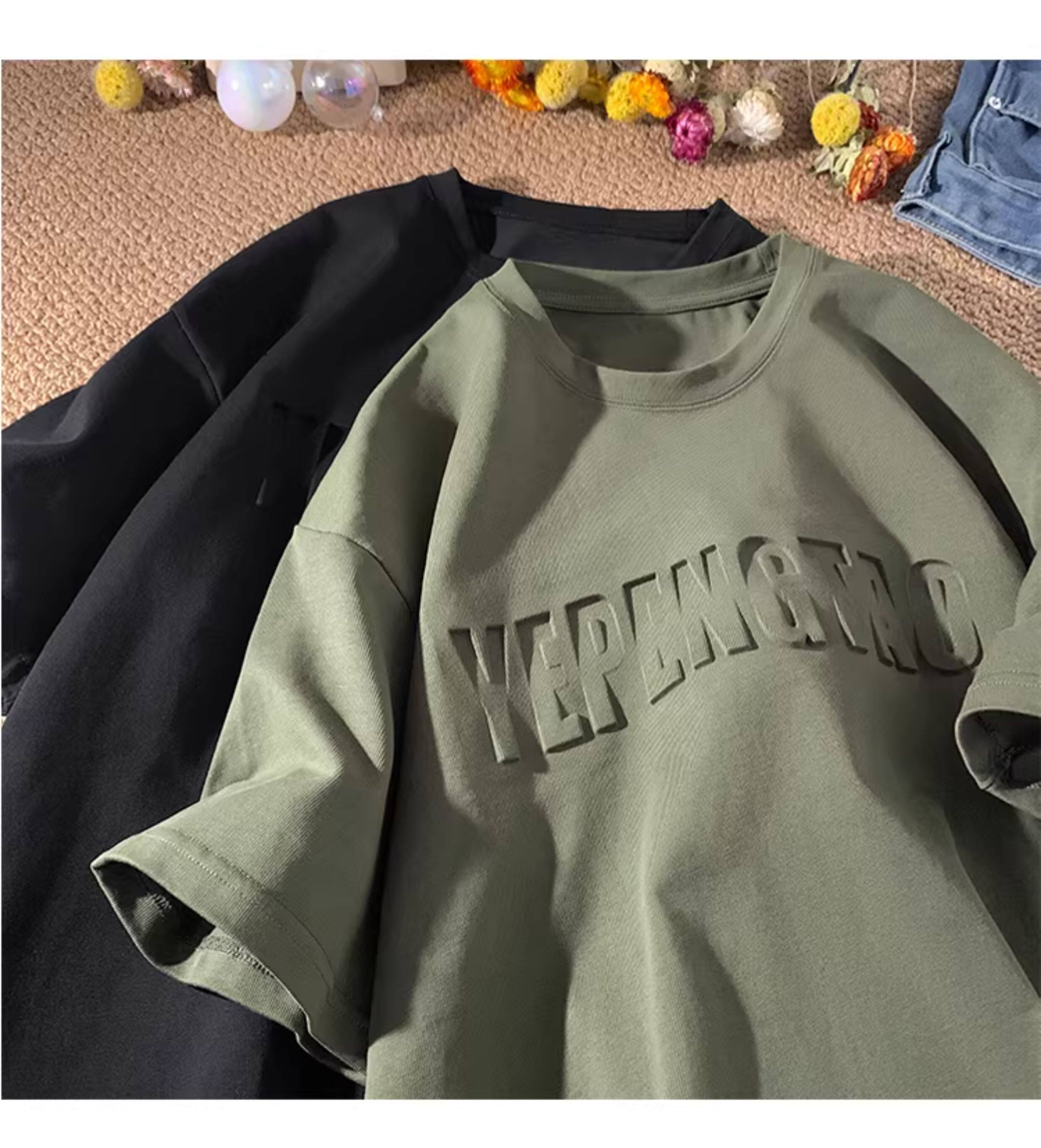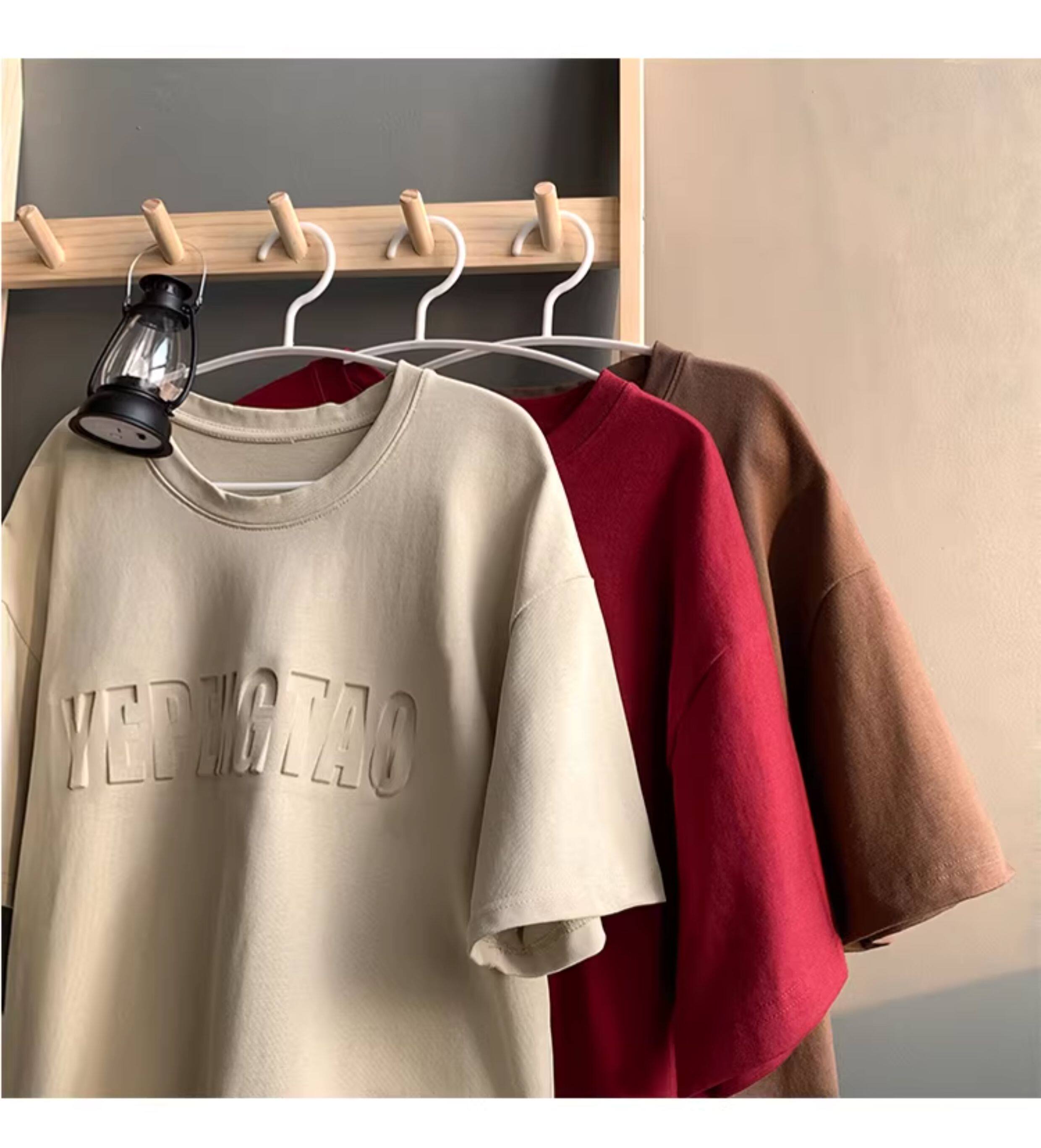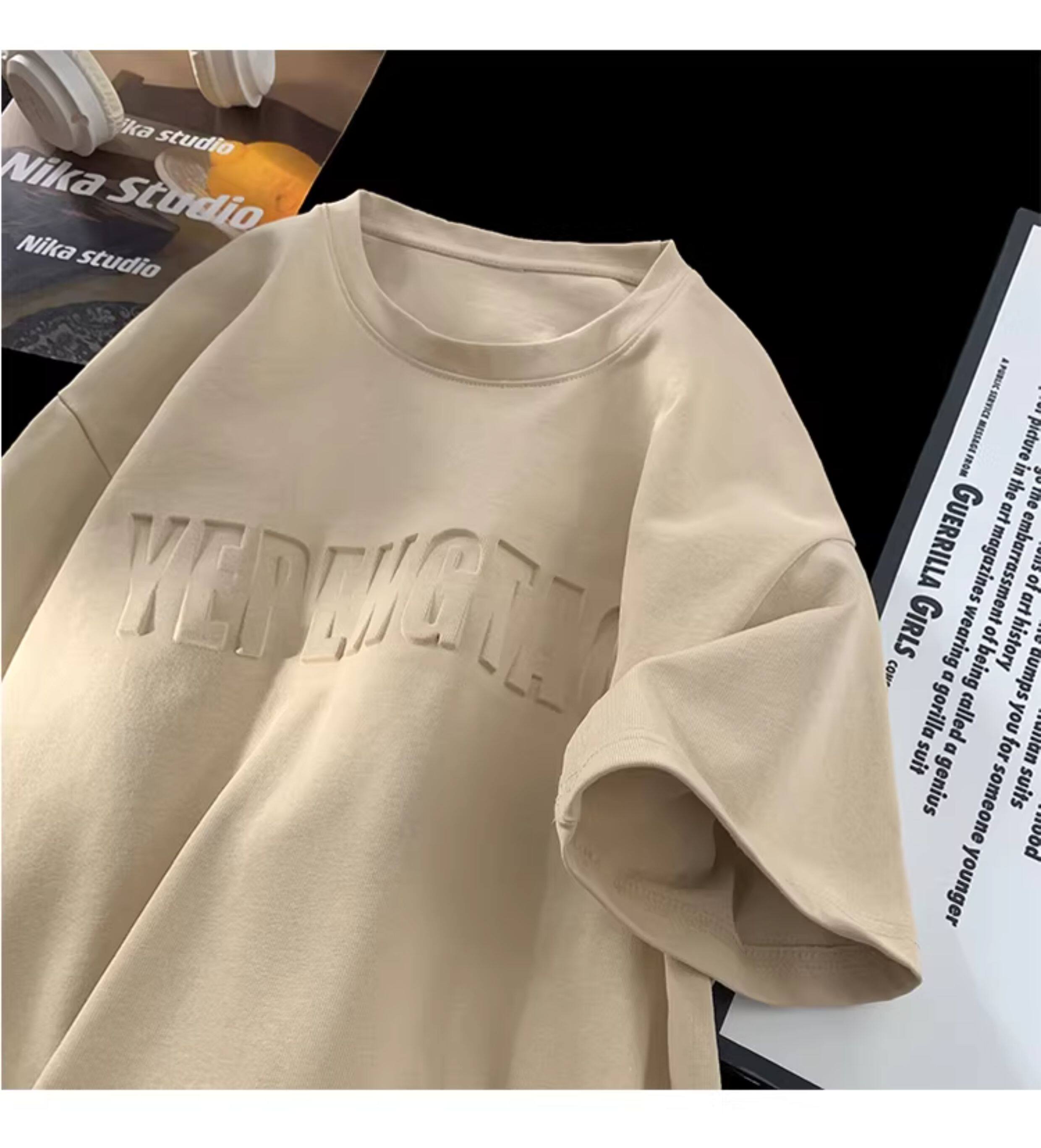 美式260g高克重鋼母短袖T恤男潮牌復古日系大碼寬鬆胖子體恤