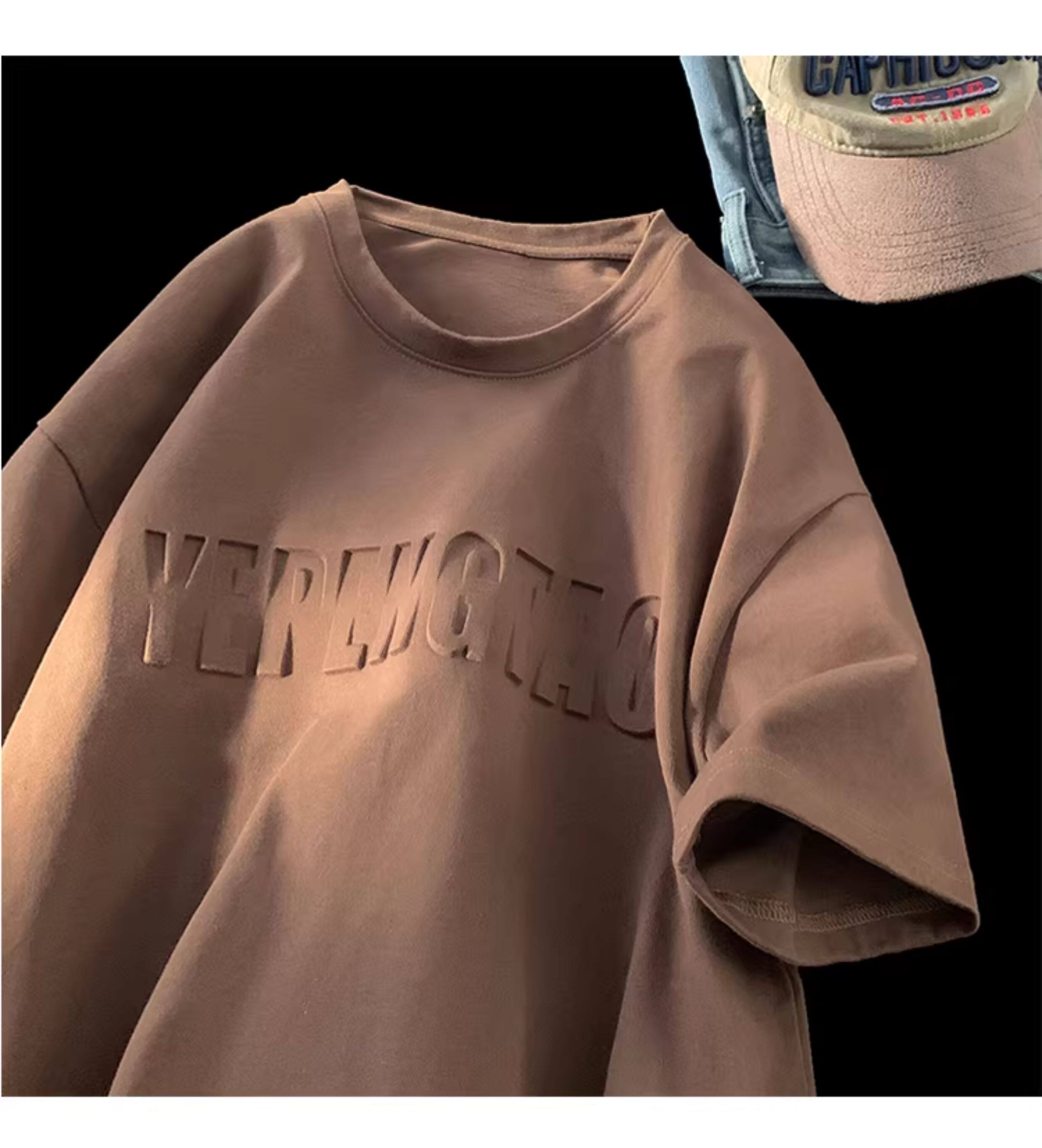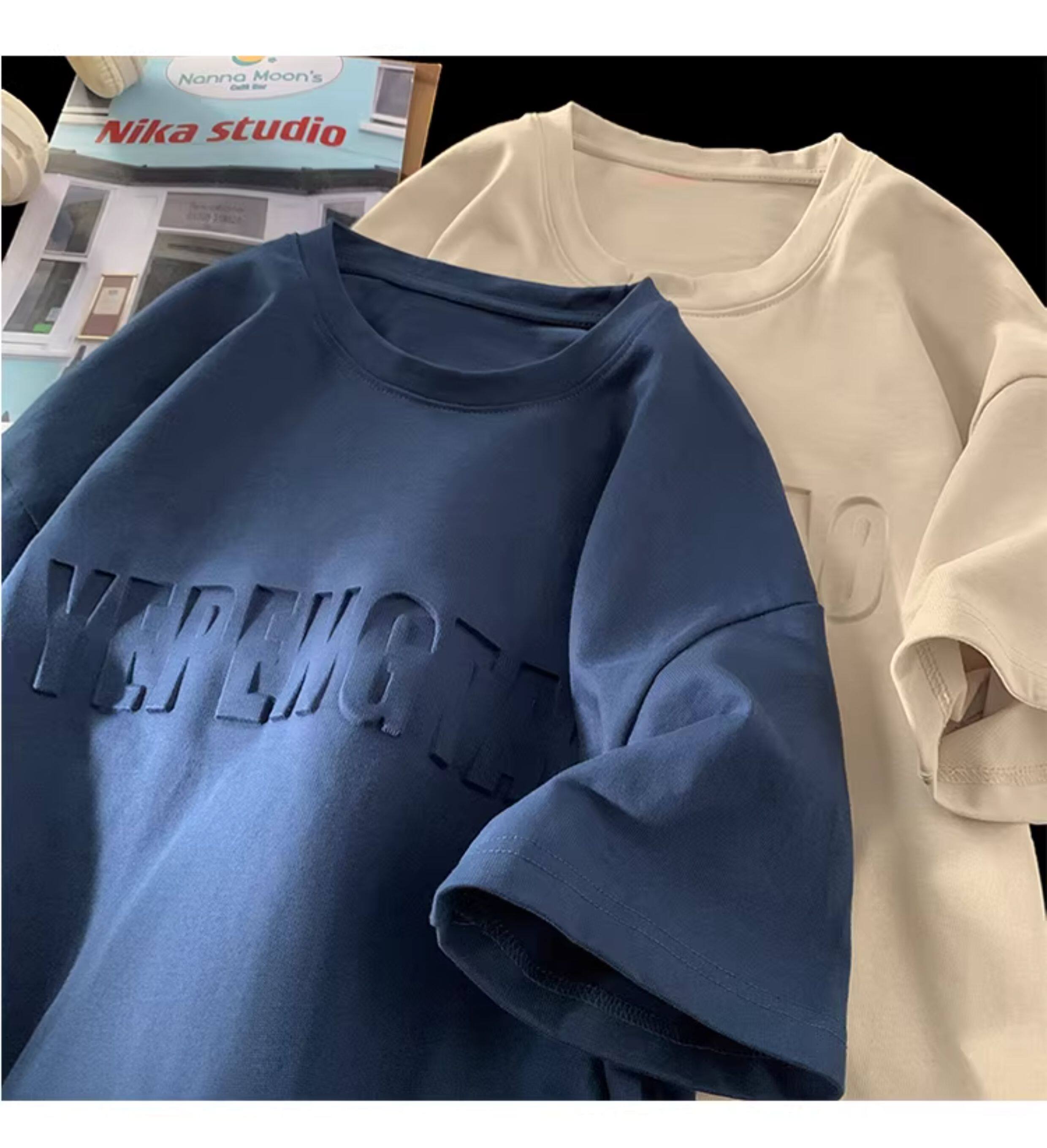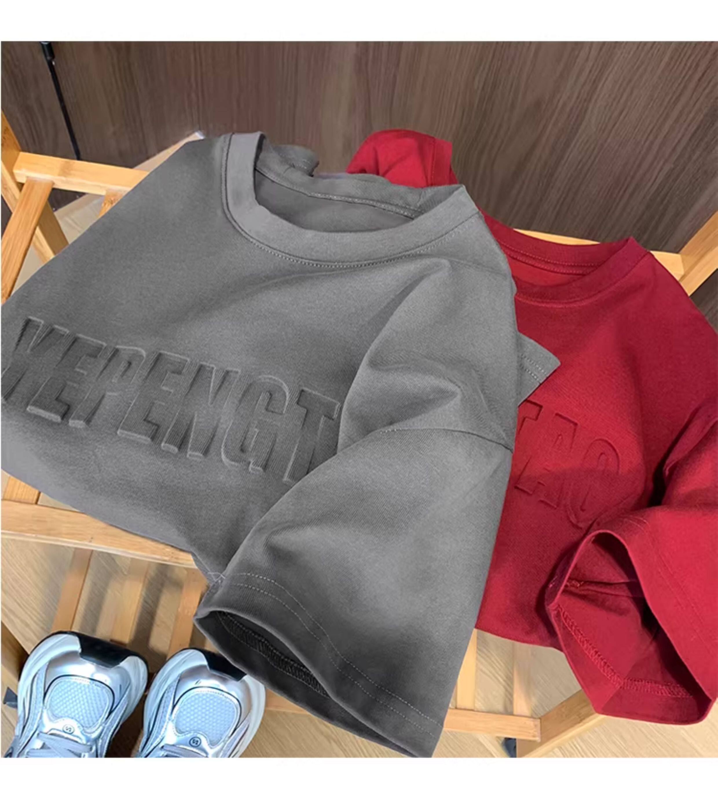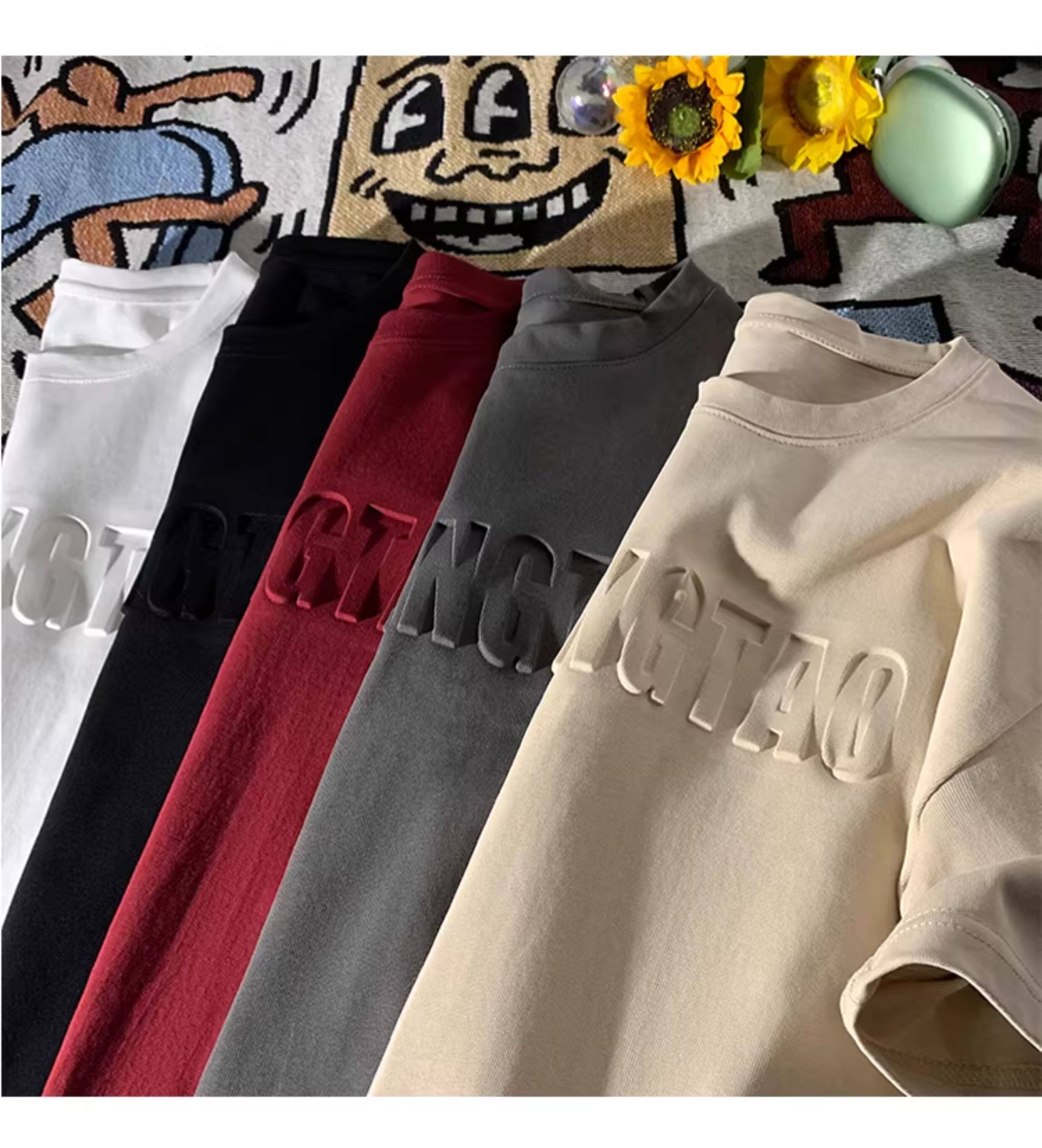 美式260g高克重鋼母短袖T恤男潮牌復古日系大碼寬鬆胖子體恤