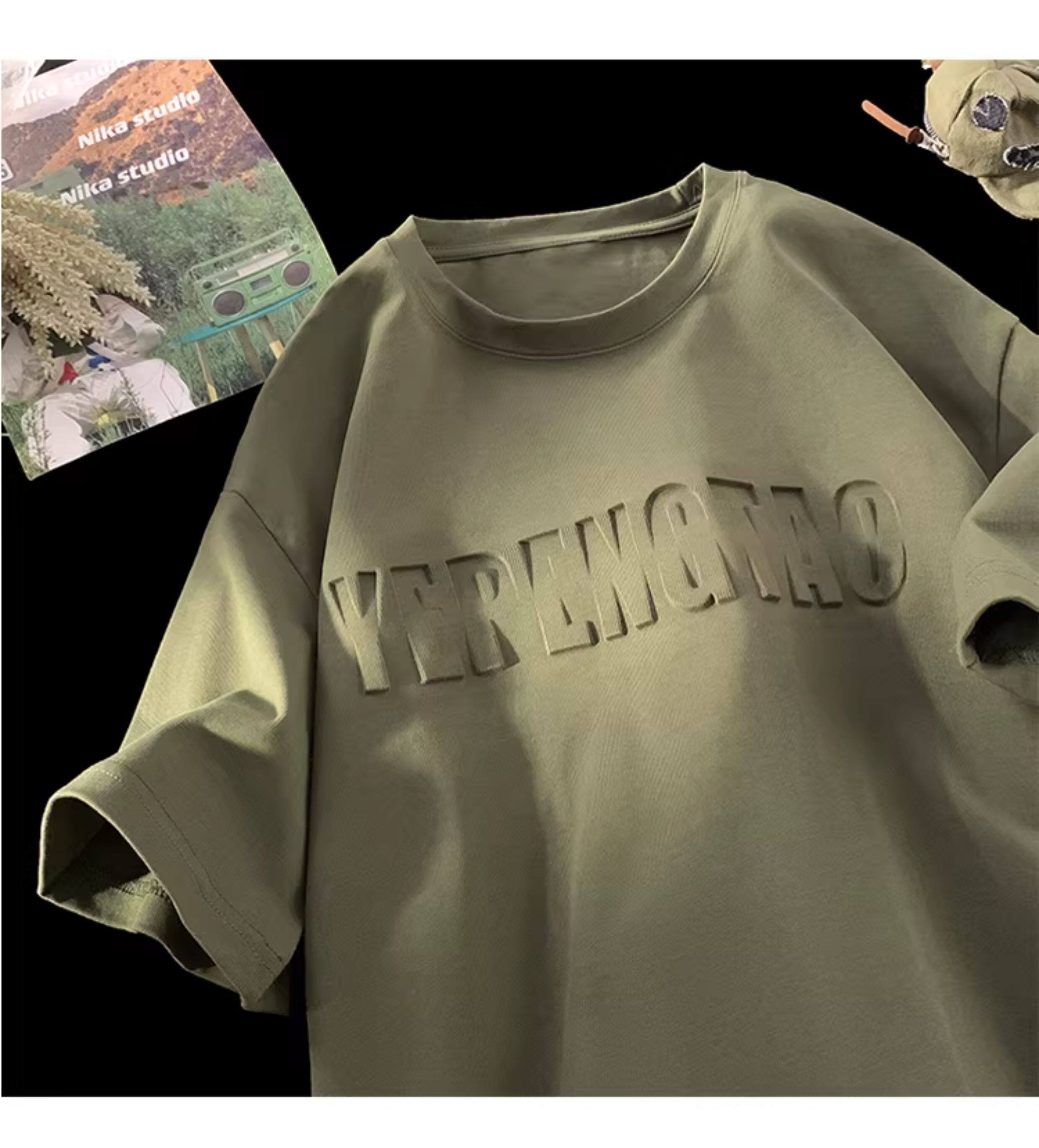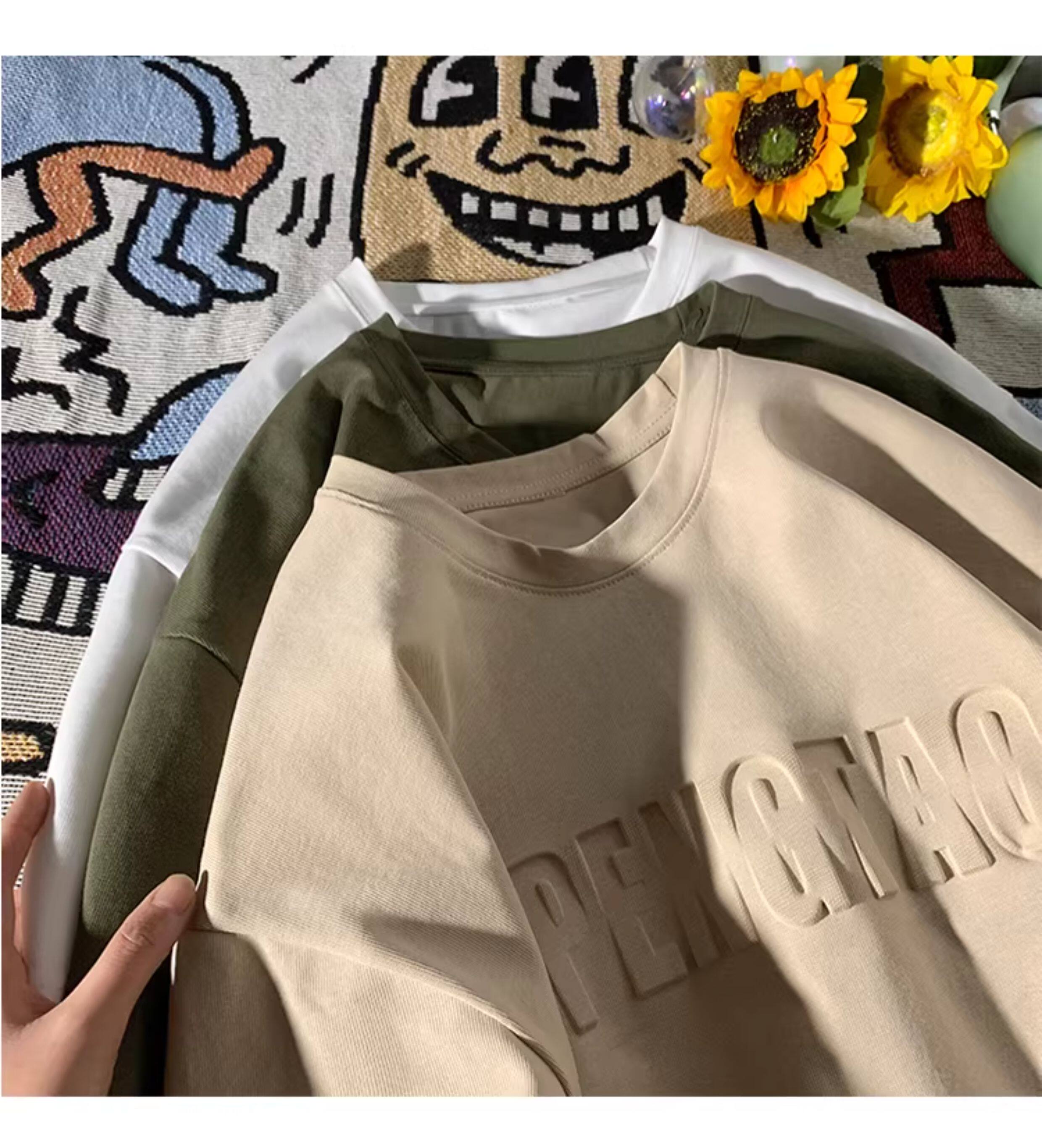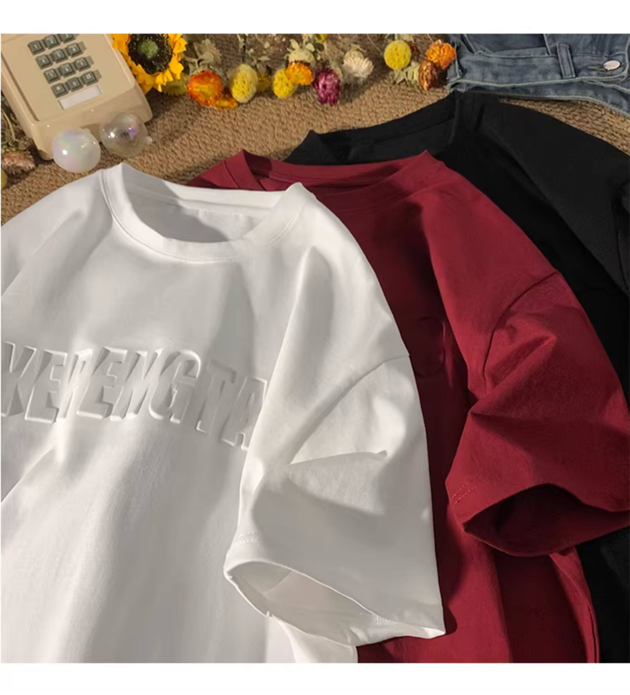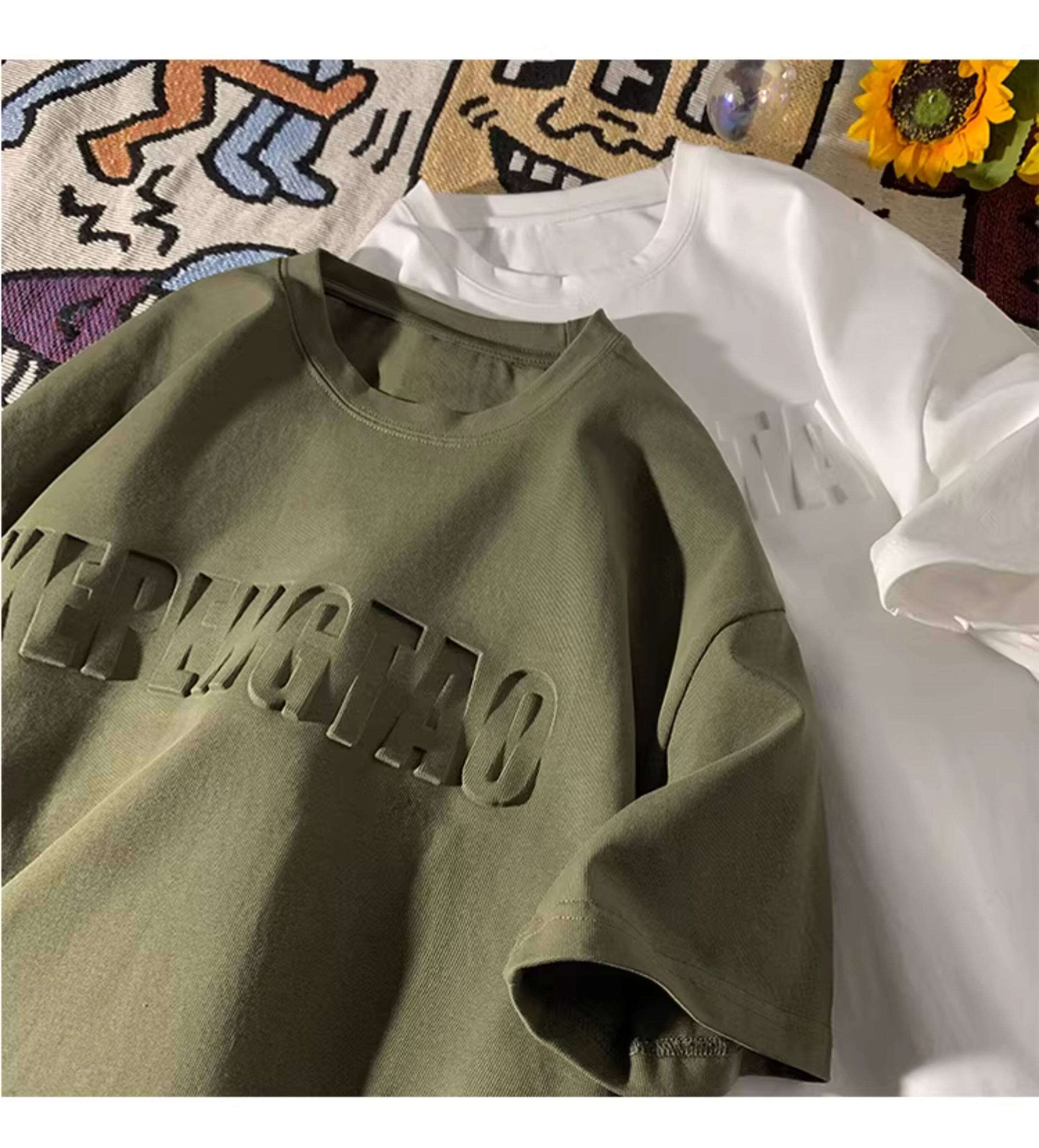 美式260g高克重鋼母短袖T恤男潮牌復古日系大碼寬鬆胖子體恤
