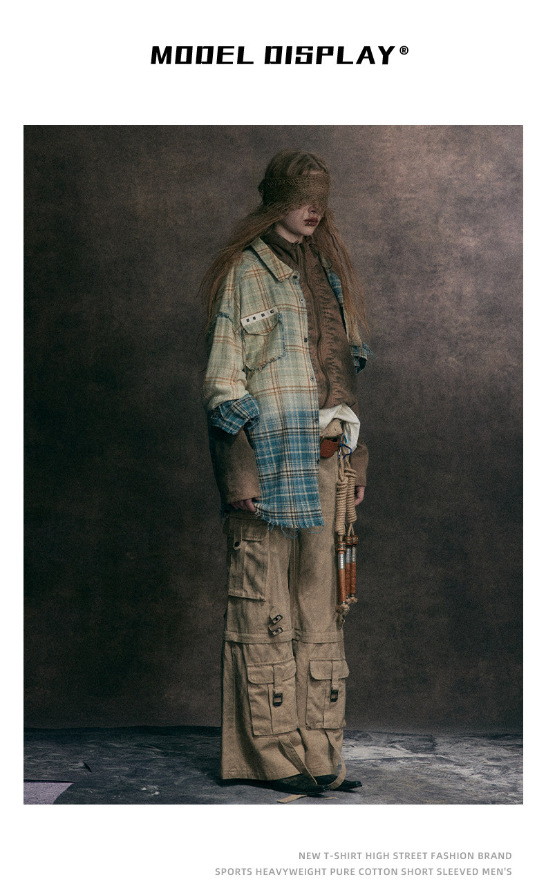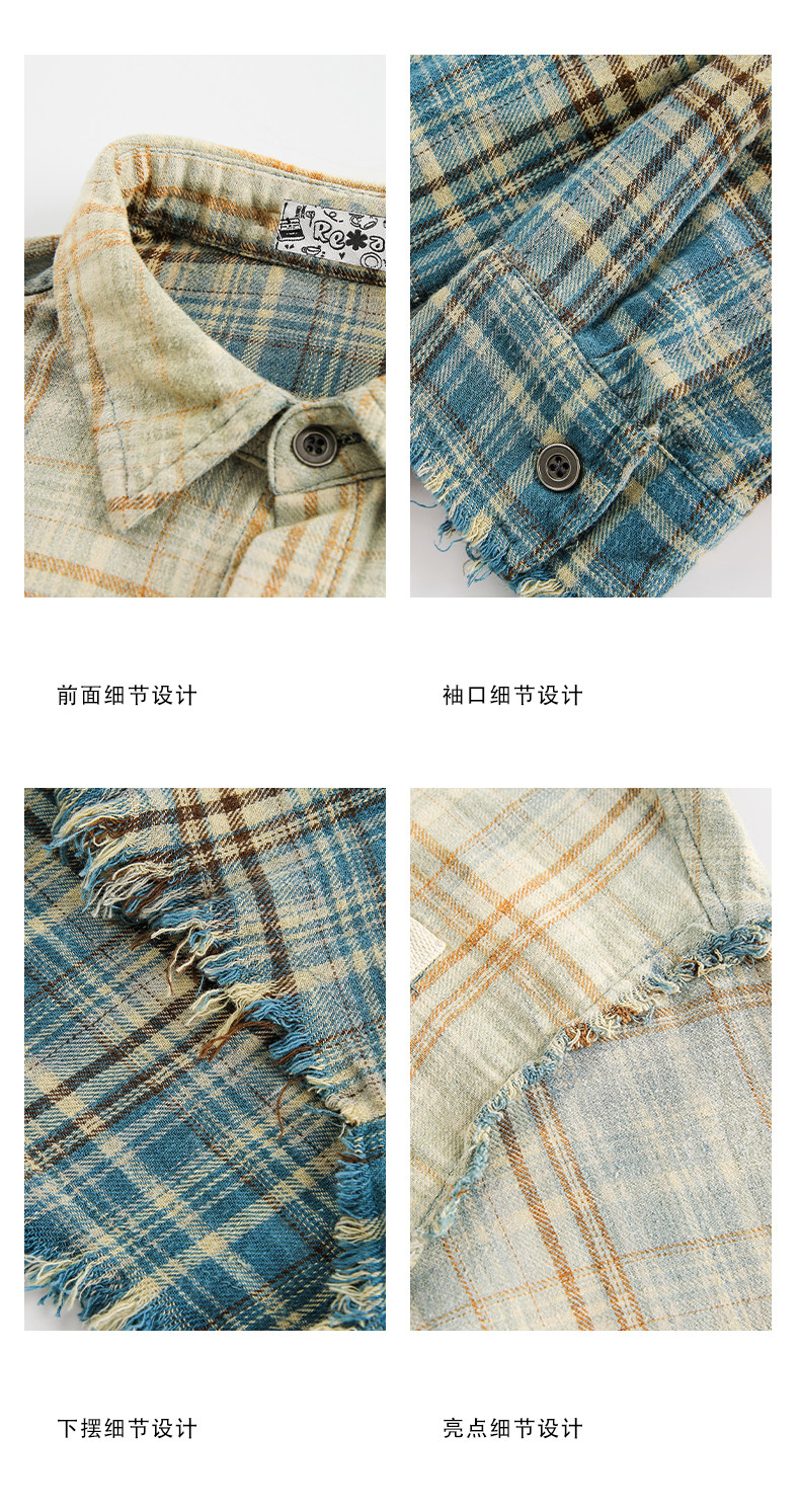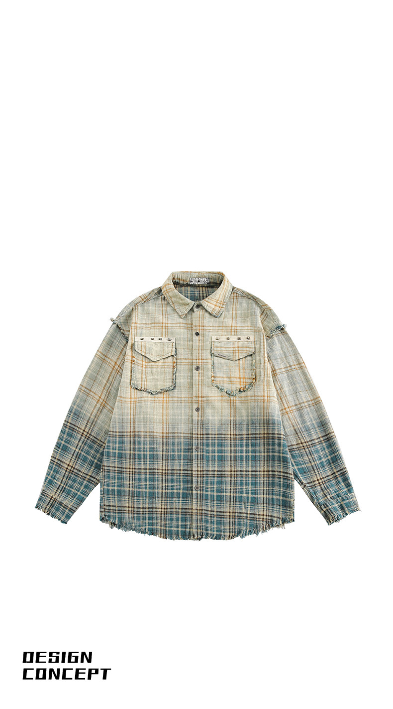 GU LIANG「設計師品牌」【潮流自定義】美式復古漸變休閒格子襯衫