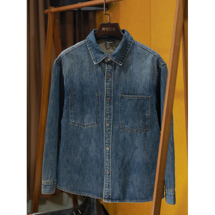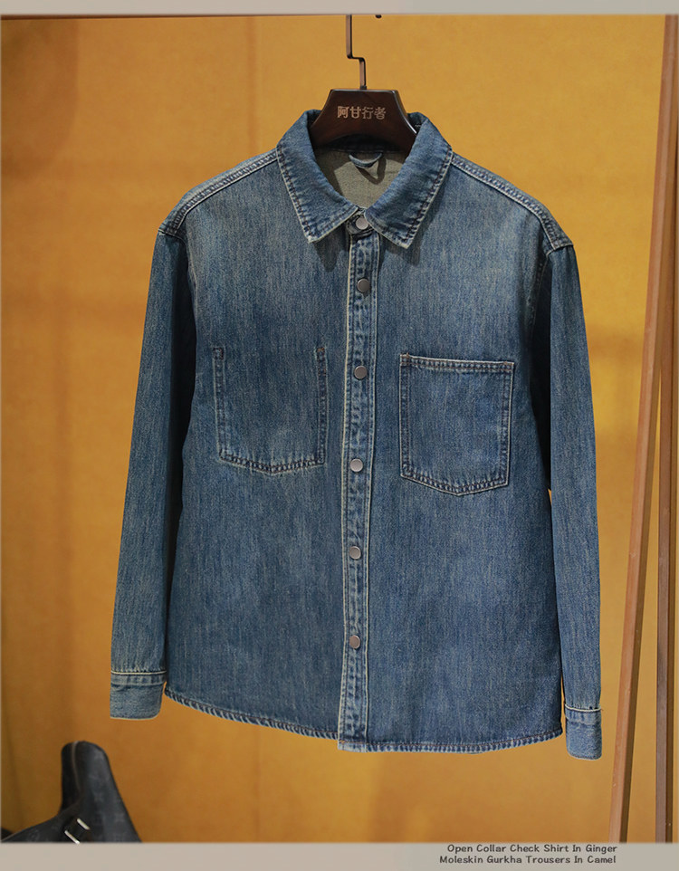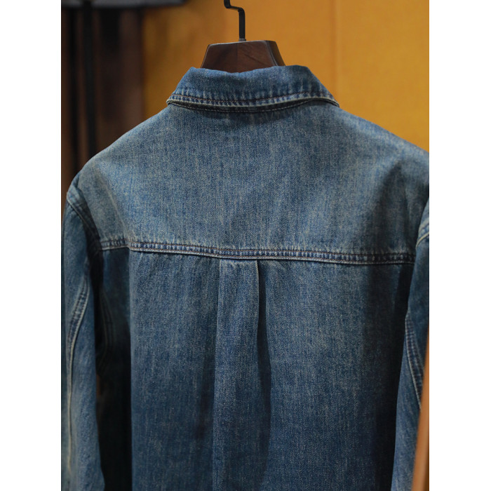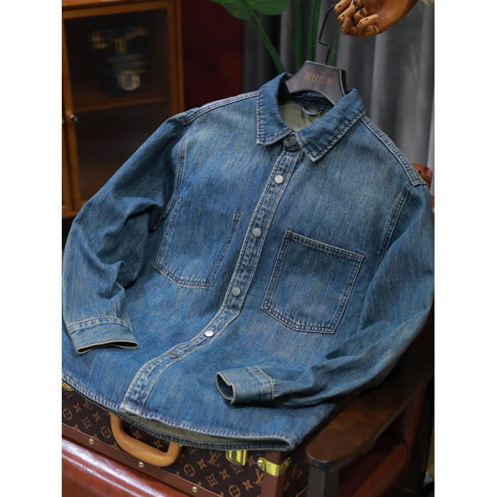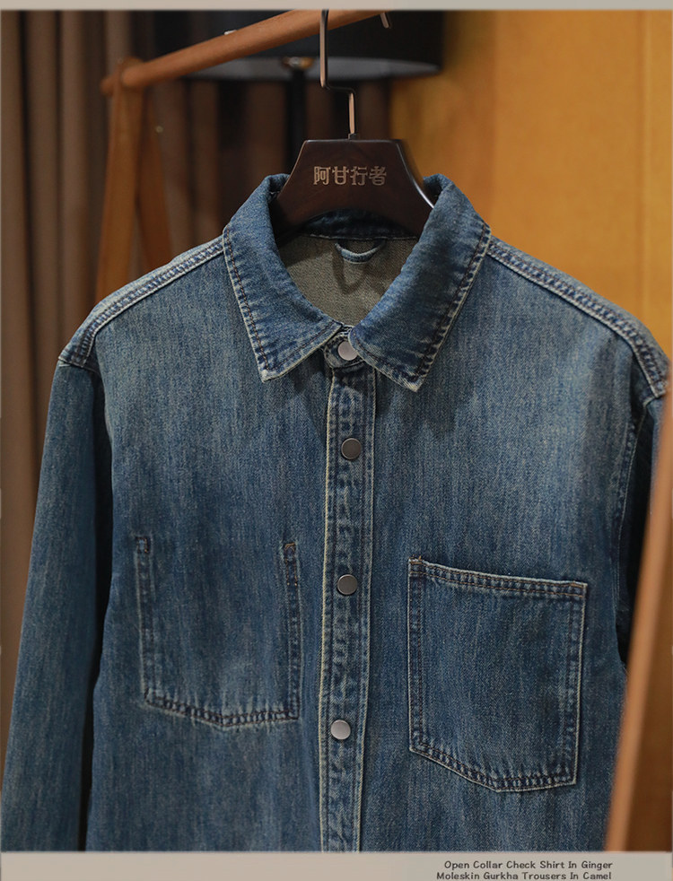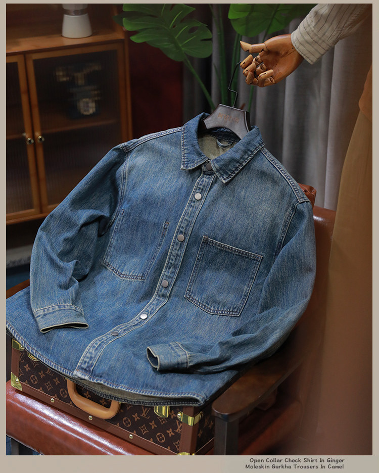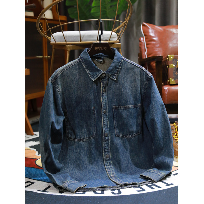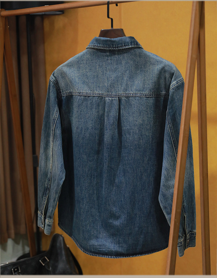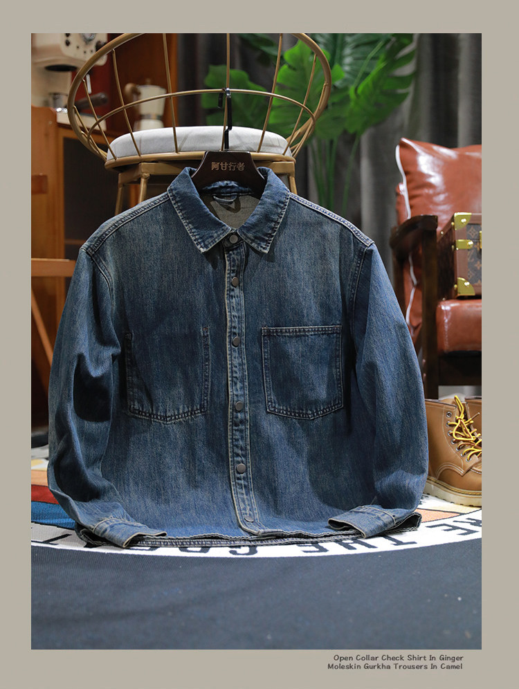 美式休閒做舊工裝牛仔襯衫男士新款秋季水洗寬鬆復古長袖襯衣外套