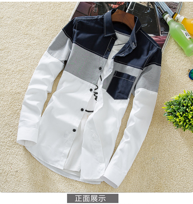 春季外套男士長袖格子襯衫白襯衣韓版潮流修身寸衫帥氣男裝上衣服