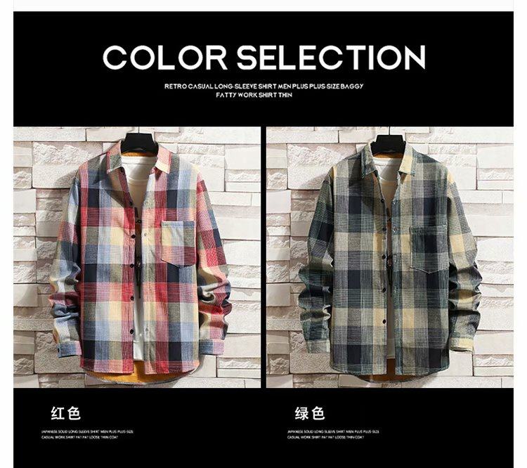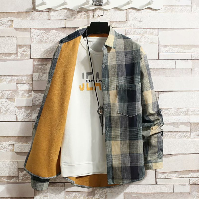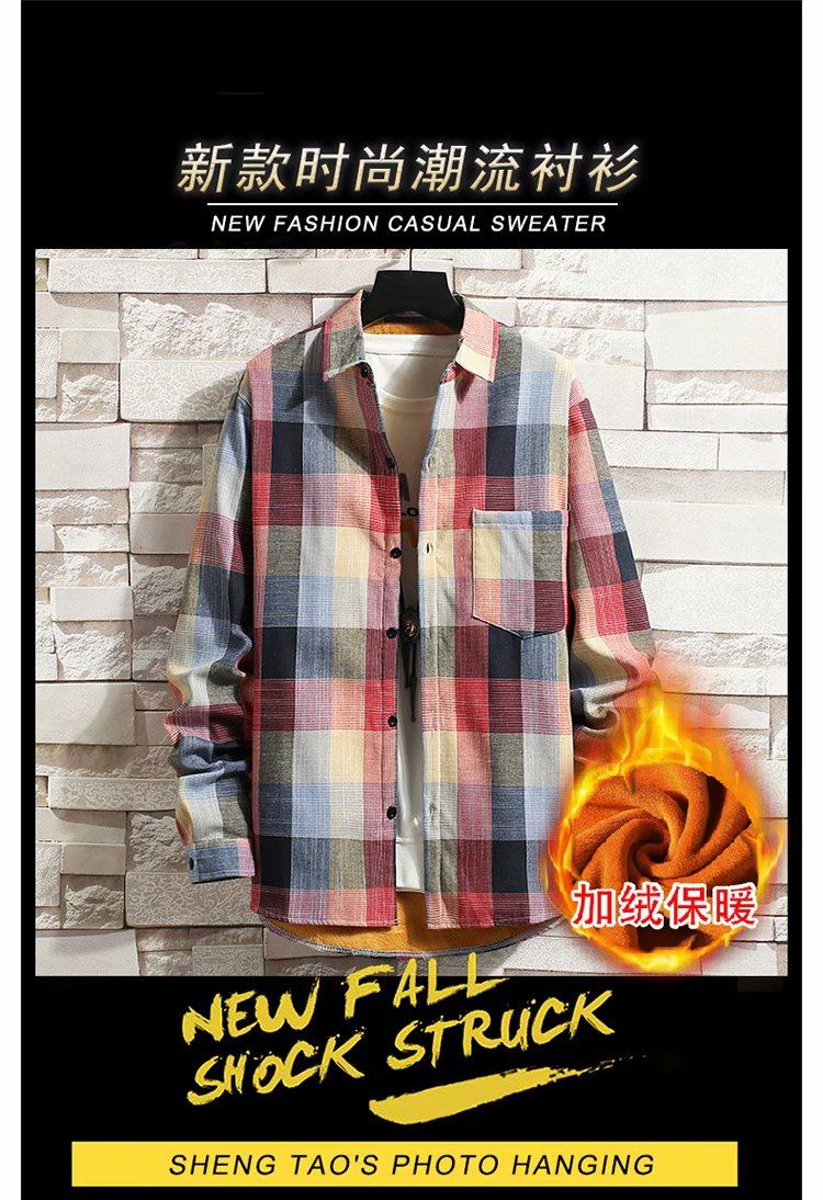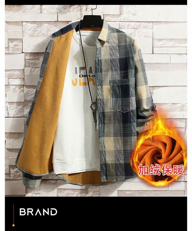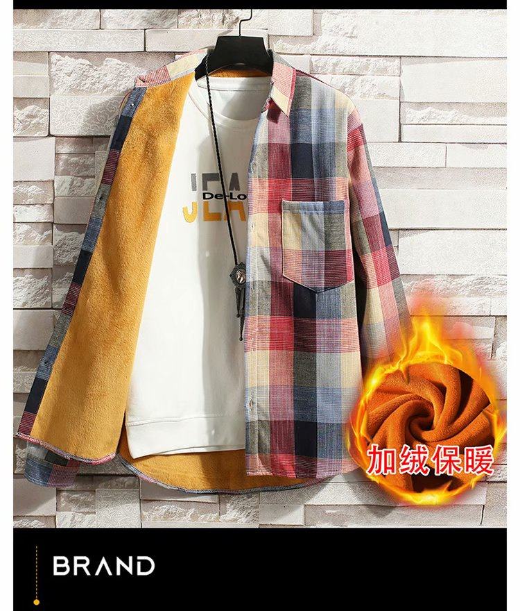 冬季長袖漸變格子襯衫男加絨保暖襯衣男韓版修身情侶潮流帥氣外套