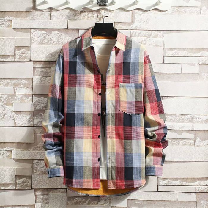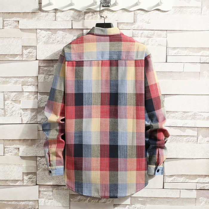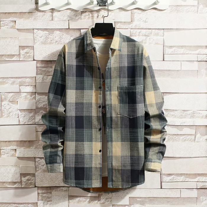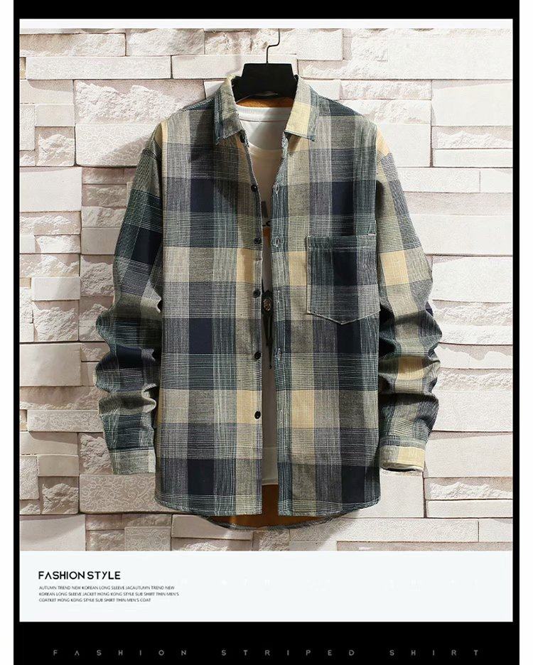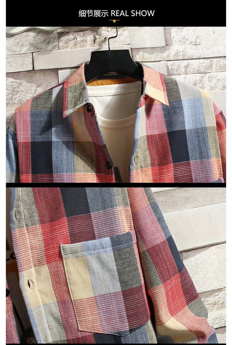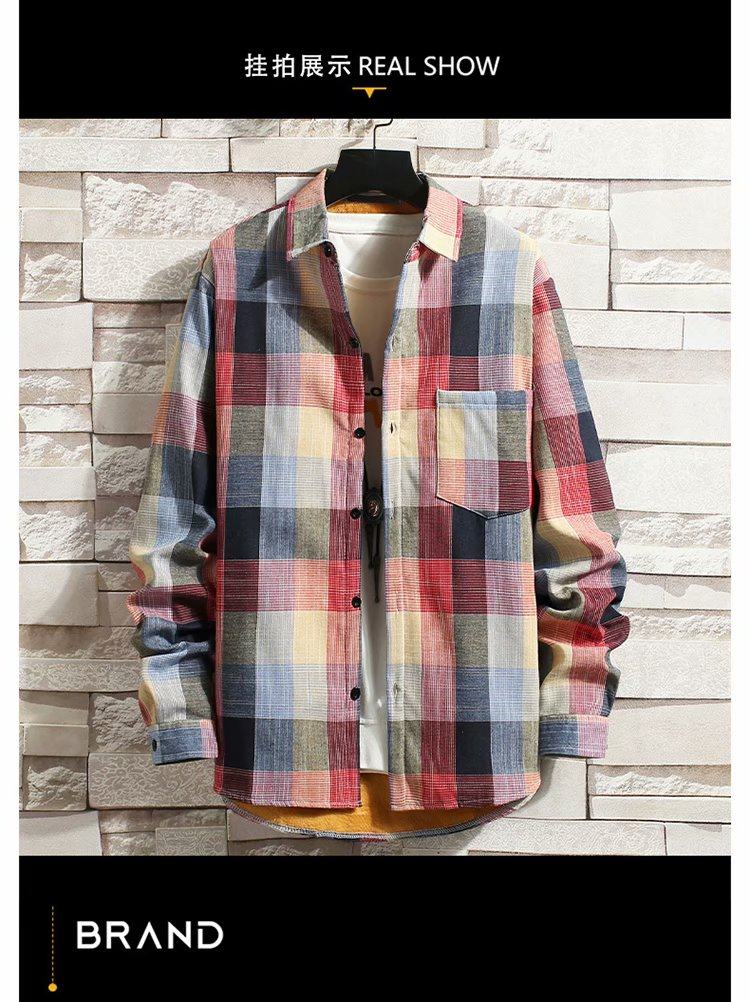 冬季長袖漸變格子襯衫男加絨保暖襯衣男韓版修身情侶潮流帥氣外套