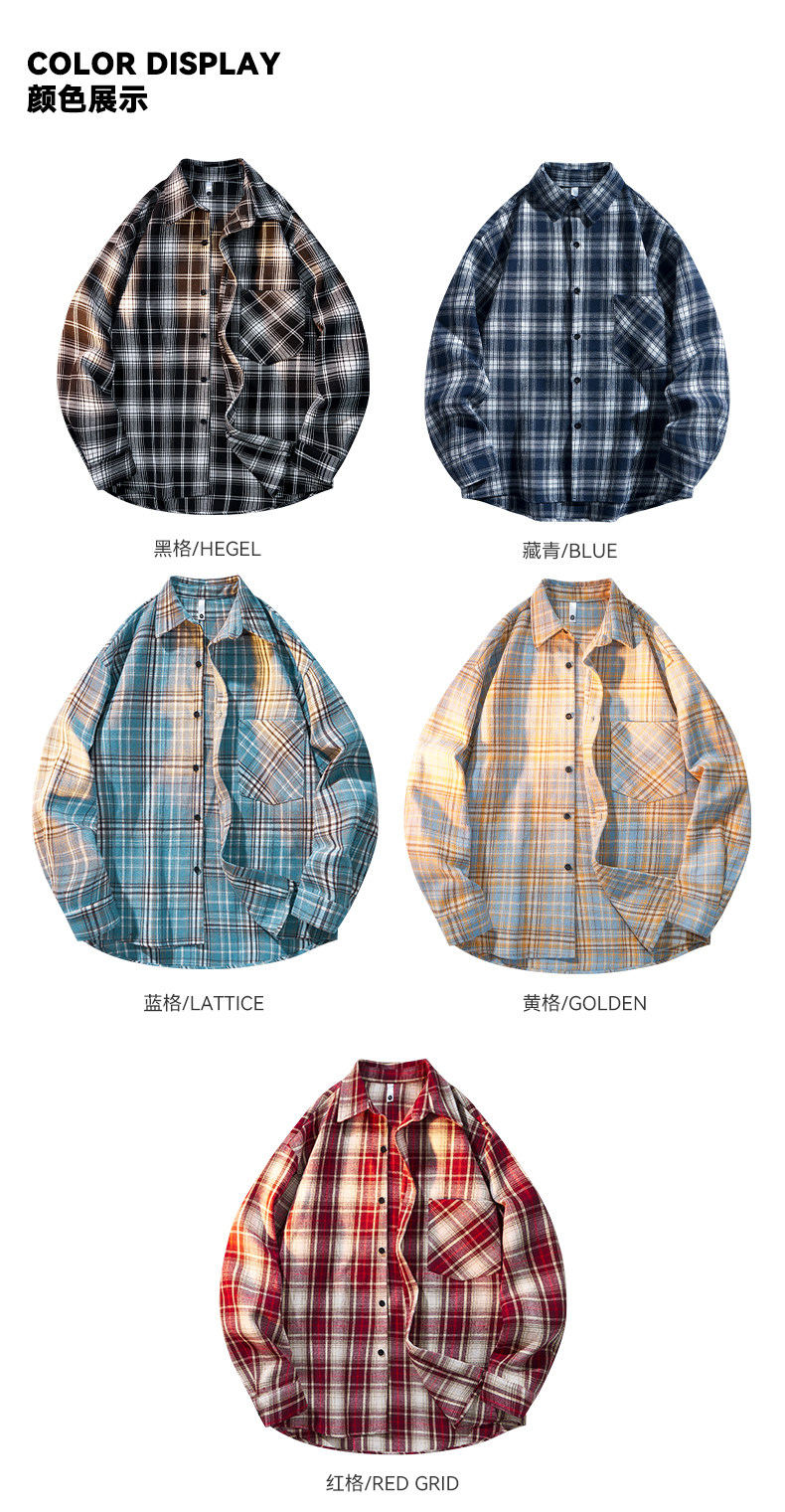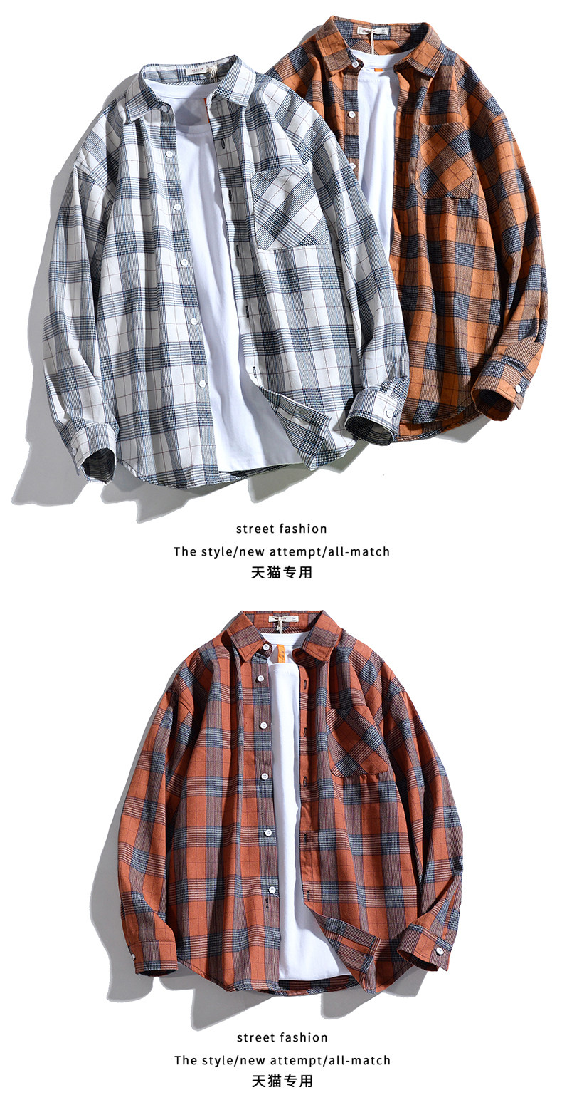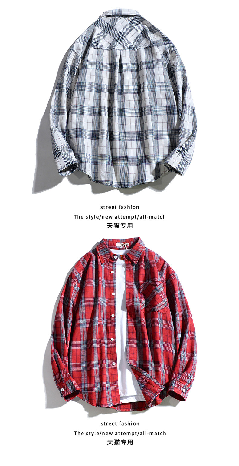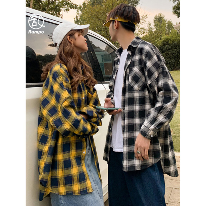 黑白格子襯衫男裝學生上衣休閒青少年情侶襯衣服帥氣百搭磨毛外套
