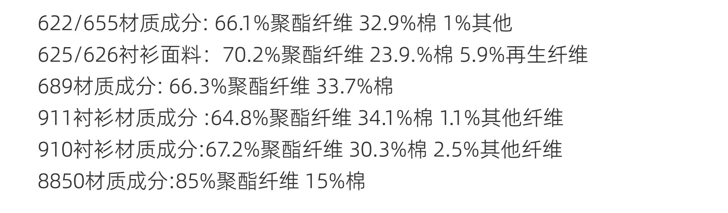 | 材質成分 | 聚酯纖維66.1% 棉32.9% 其他材質1% |