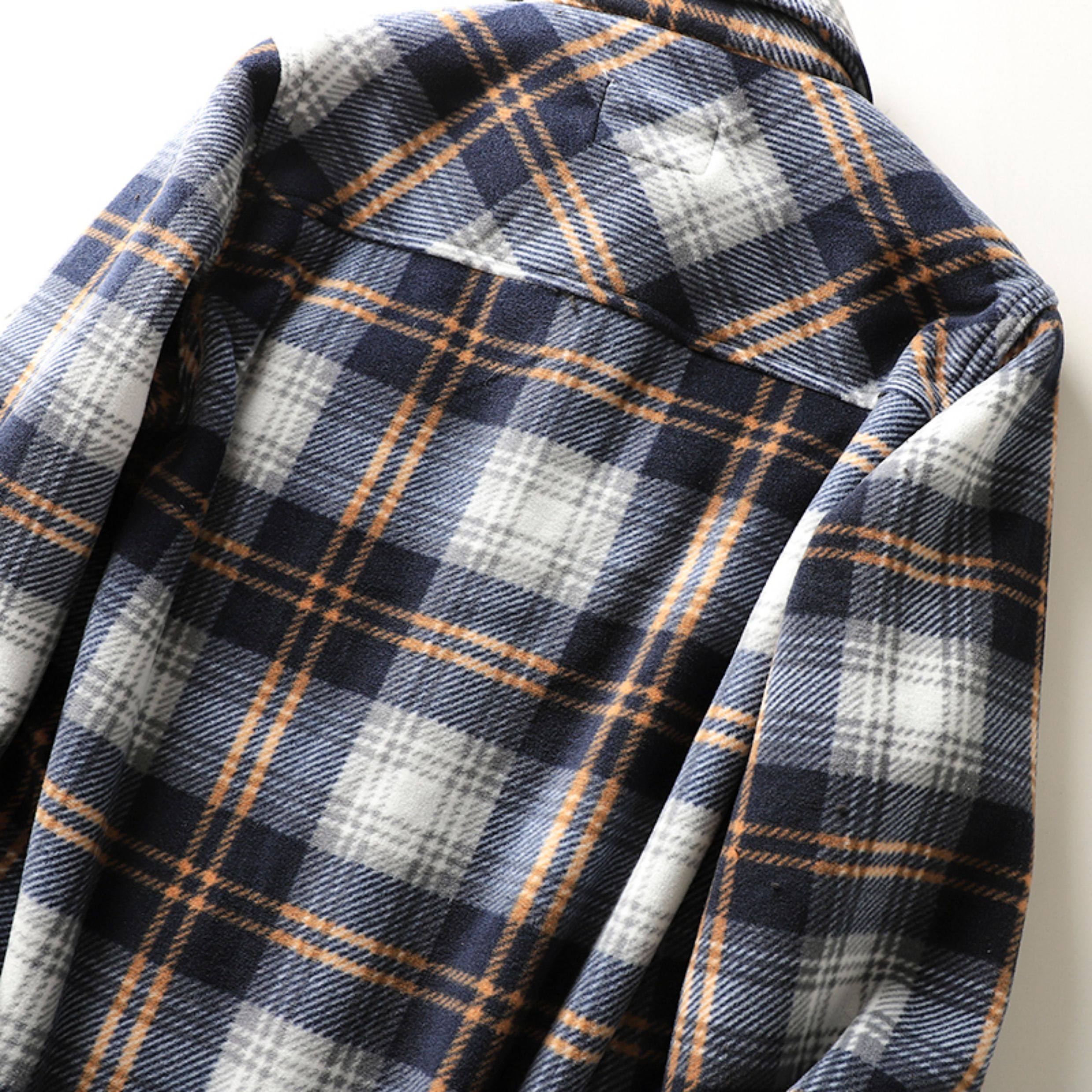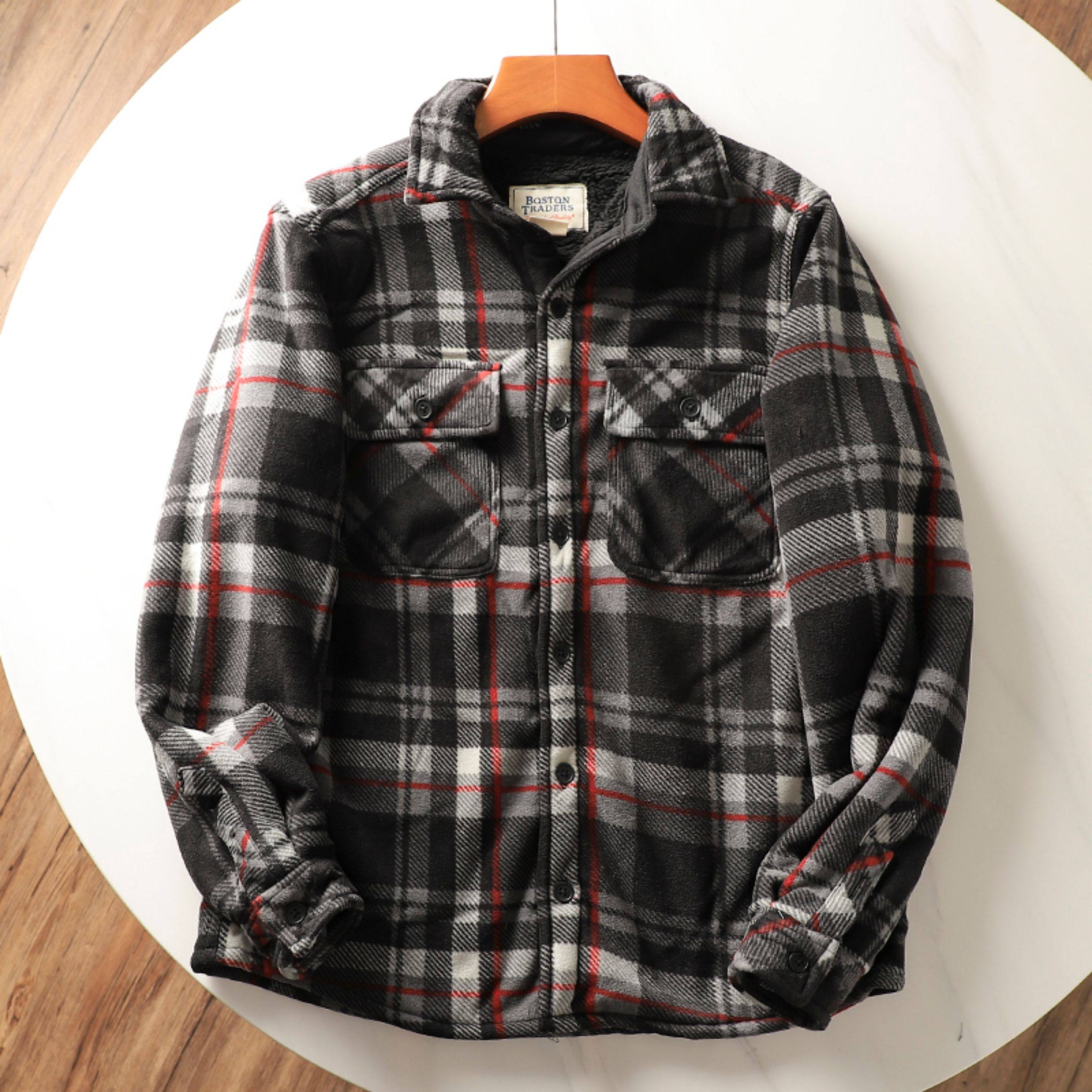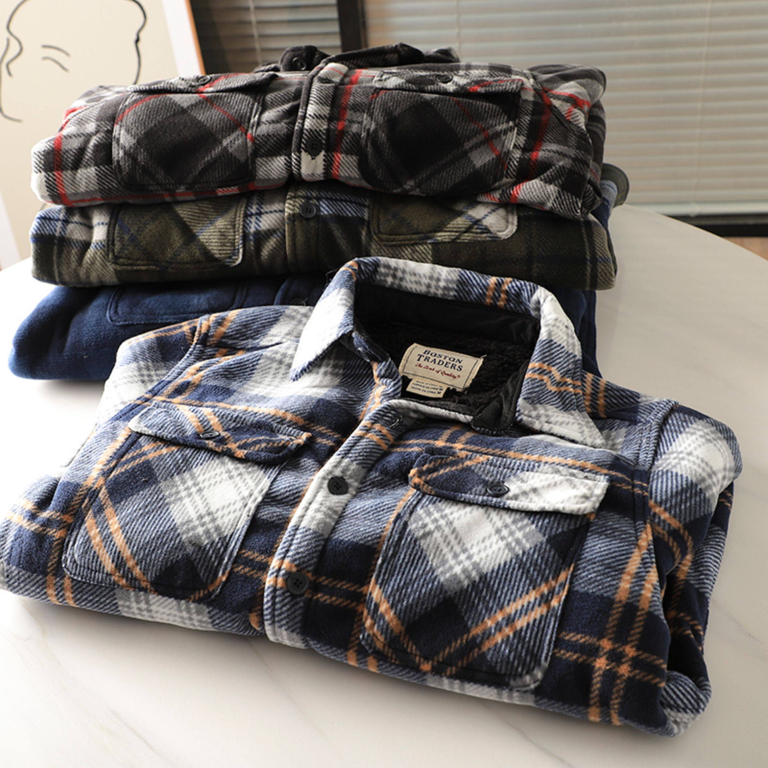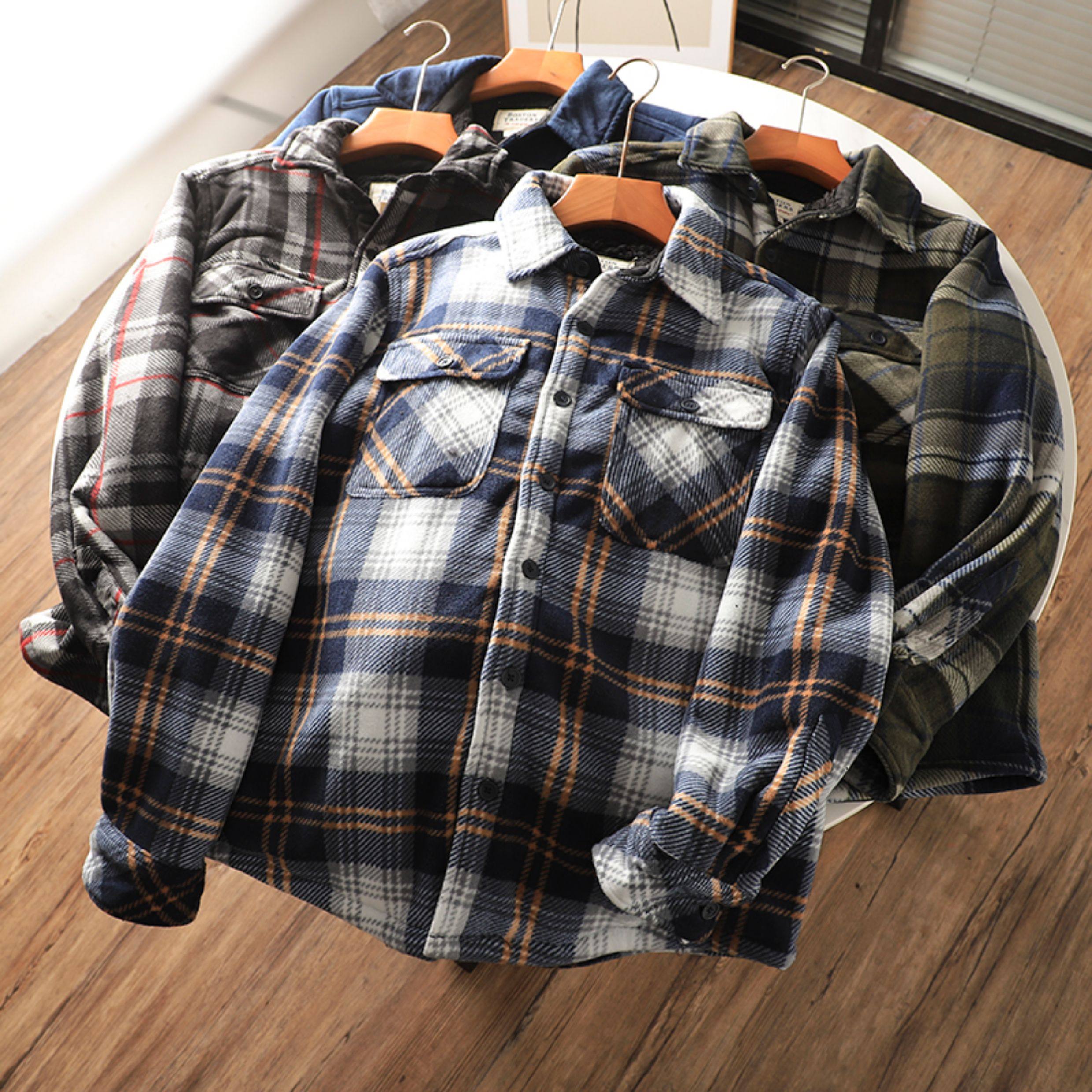 老美單~可做棉衣~秋冬男士加絨加厚保暖寬鬆羊羔毛法蘭絨格子襯衫