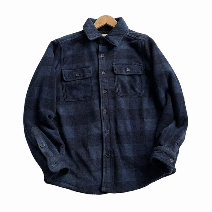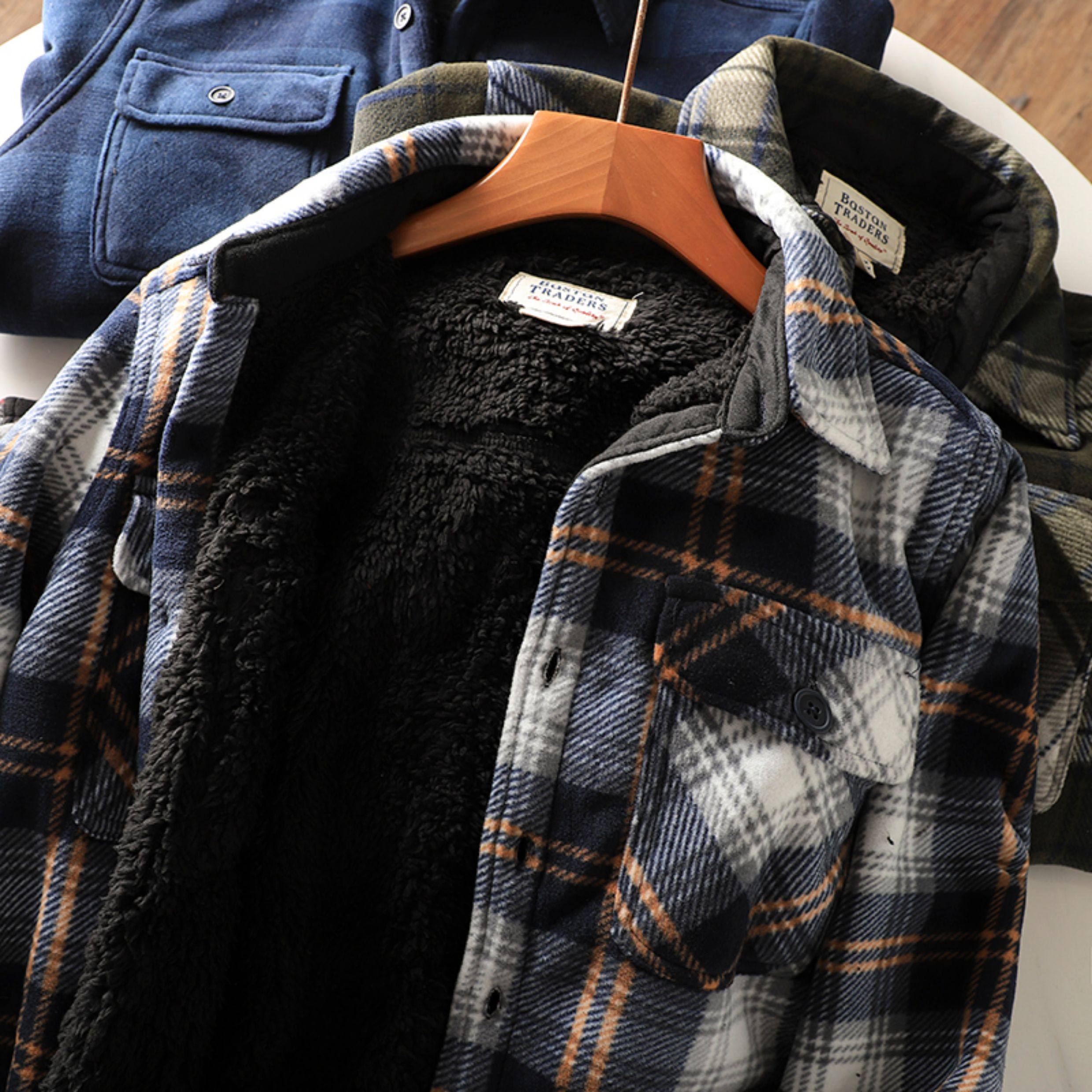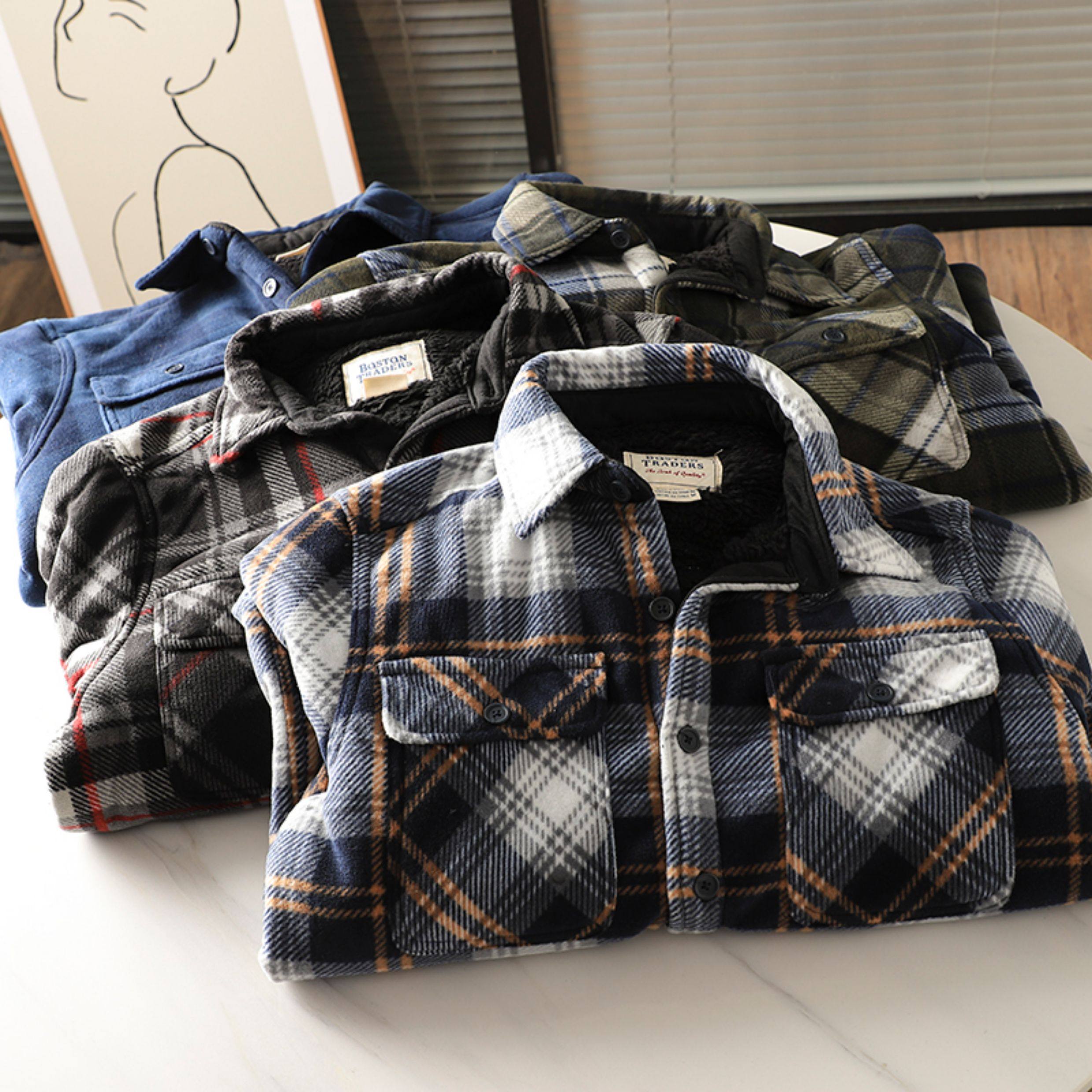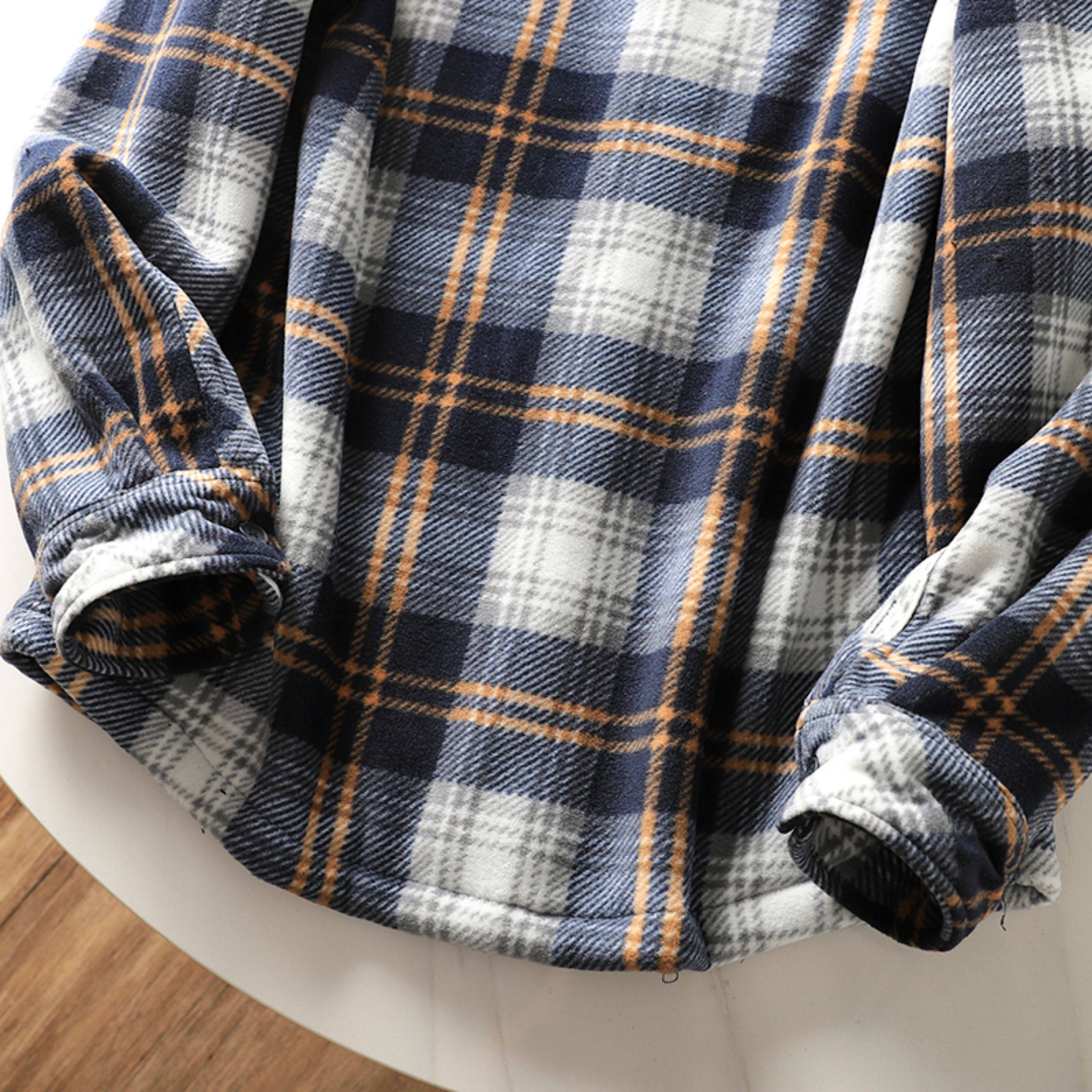 老美單~可做棉衣~秋冬男士加絨加厚保暖寬鬆羊羔毛法蘭絨格子襯衫