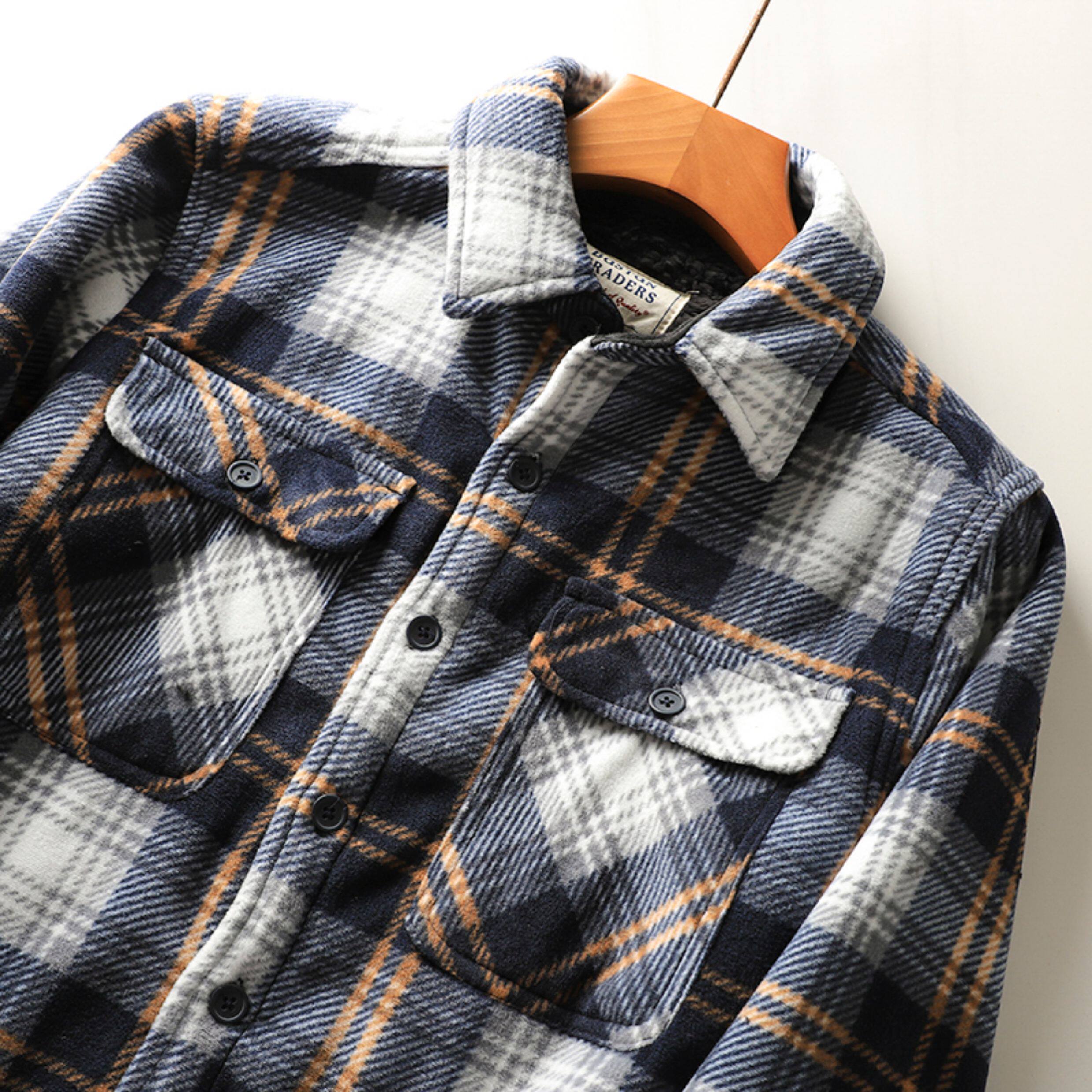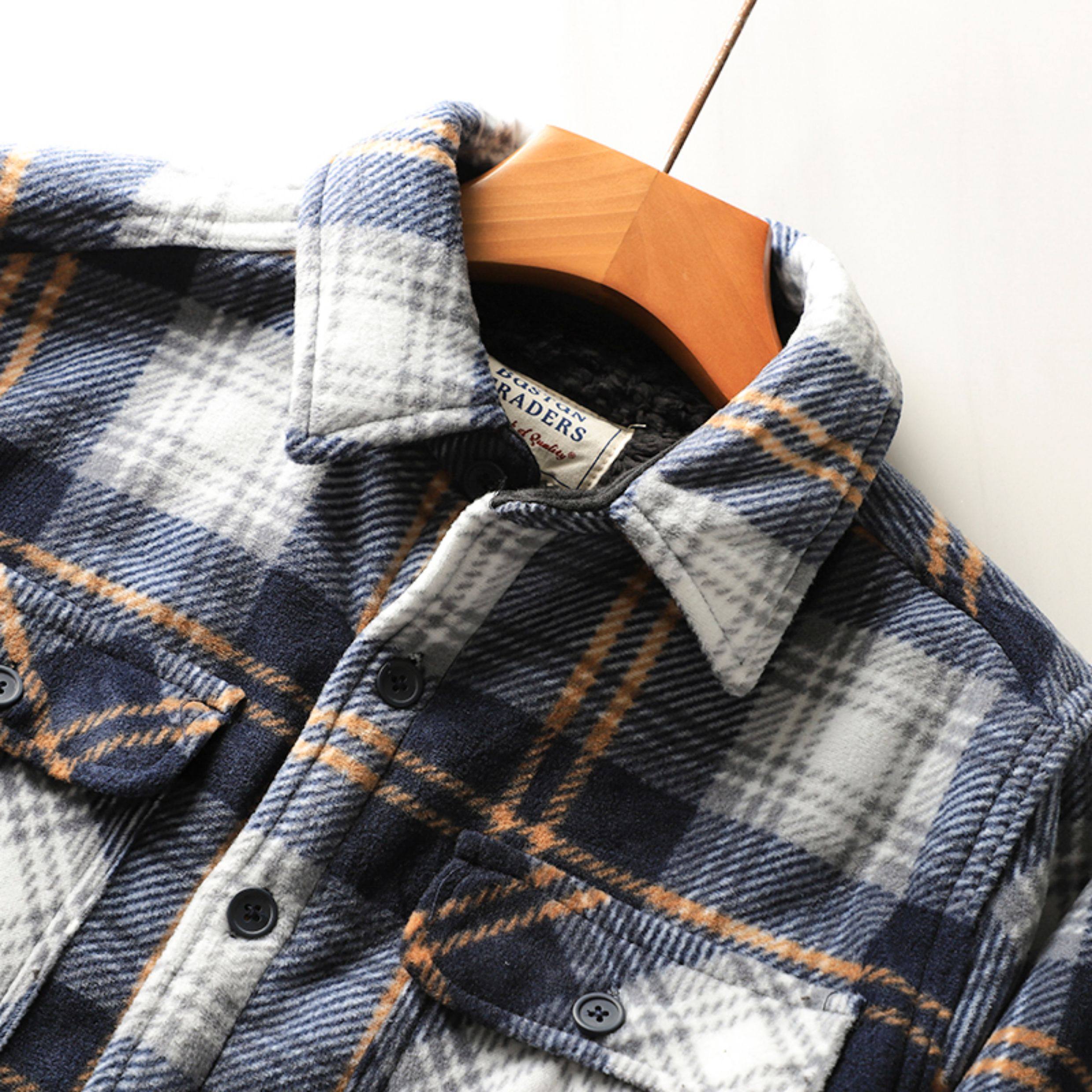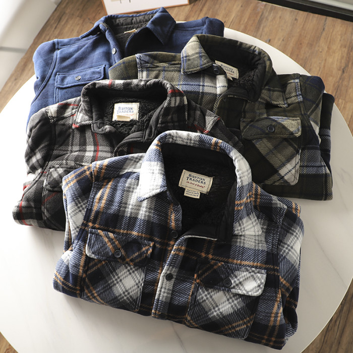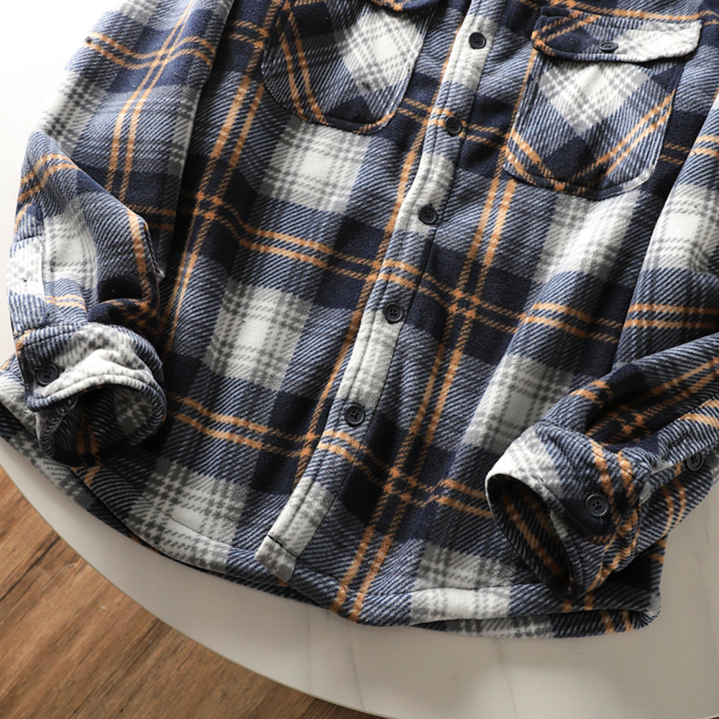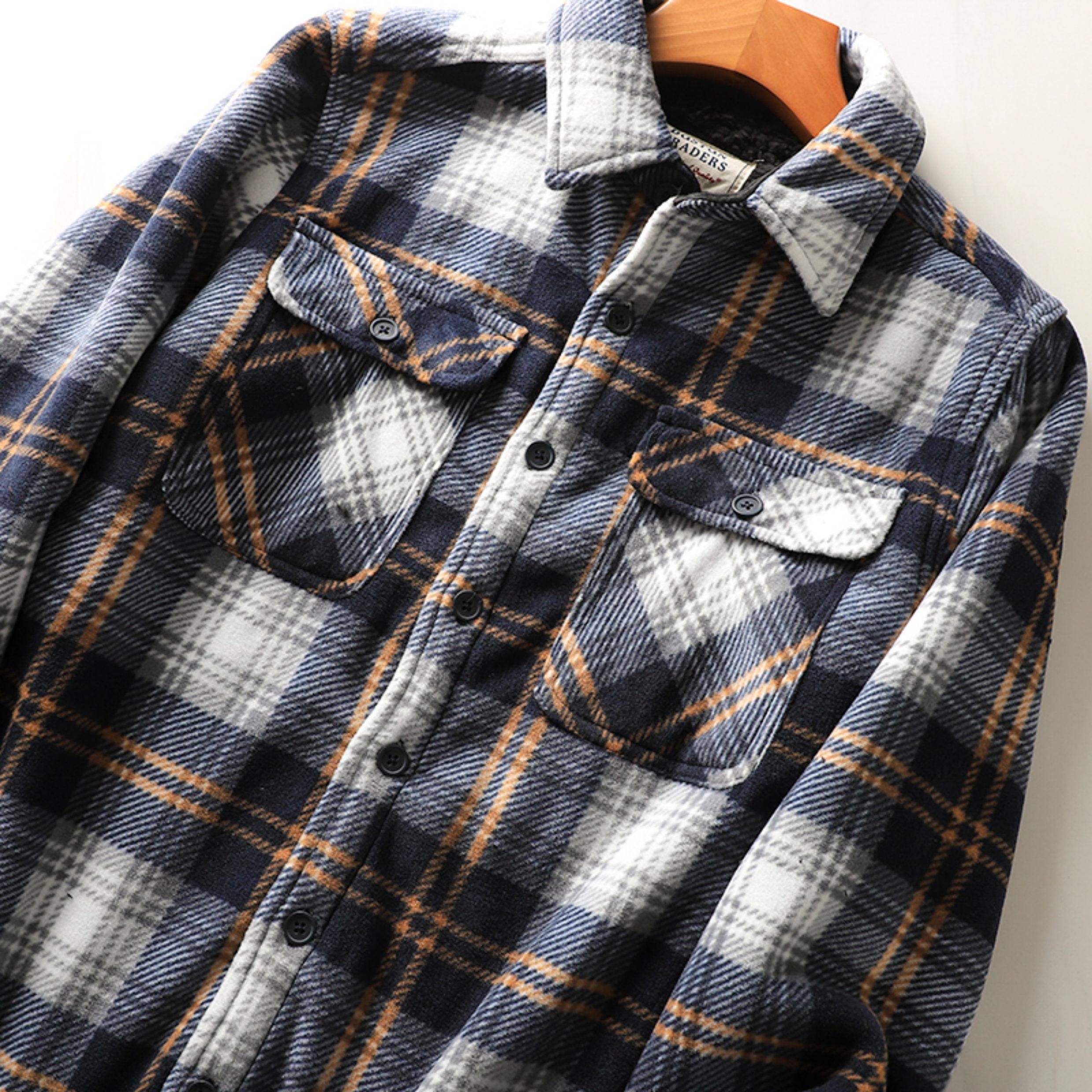 老美單~可做棉衣~秋冬男士加絨加厚保暖寬鬆羊羔毛法蘭絨格子襯衫