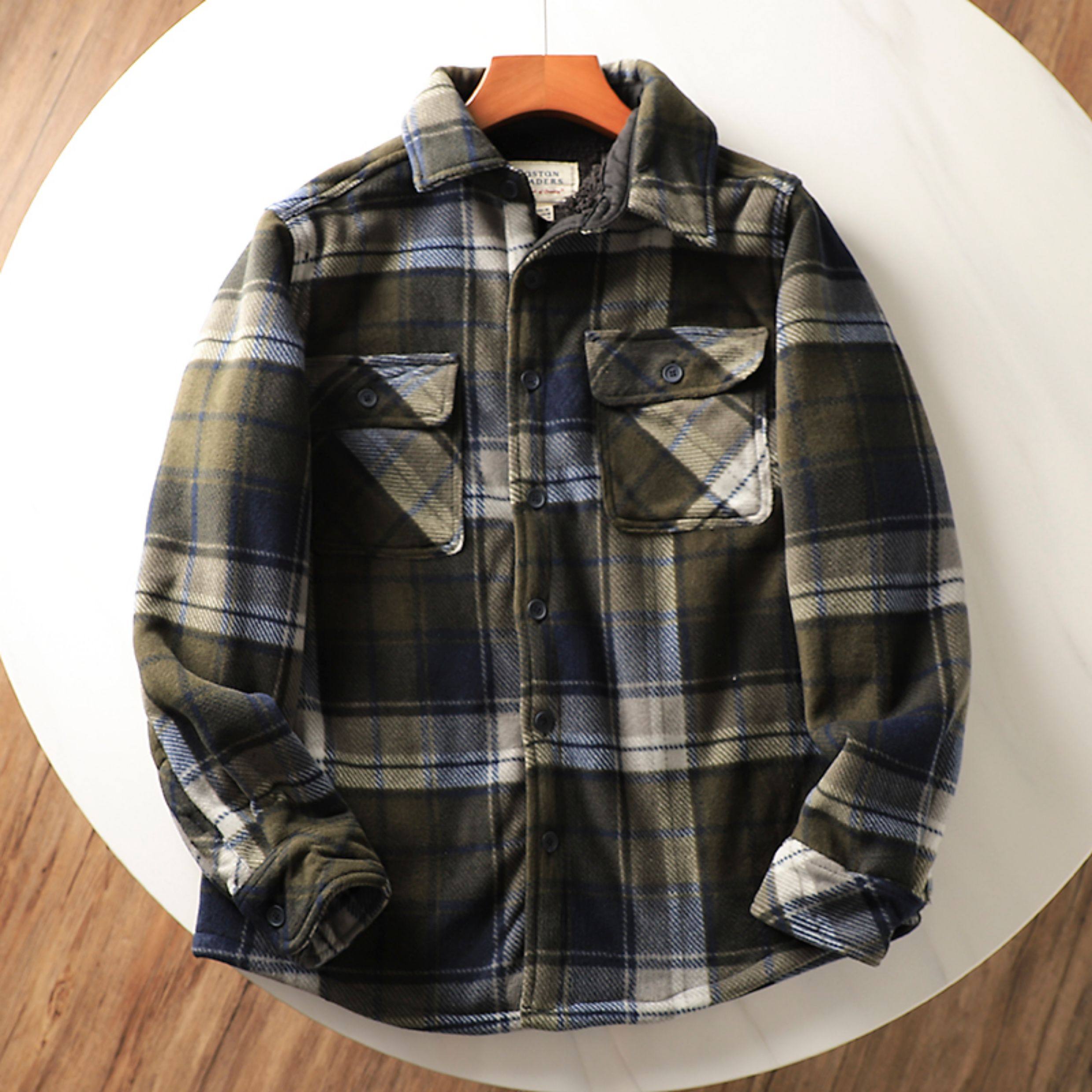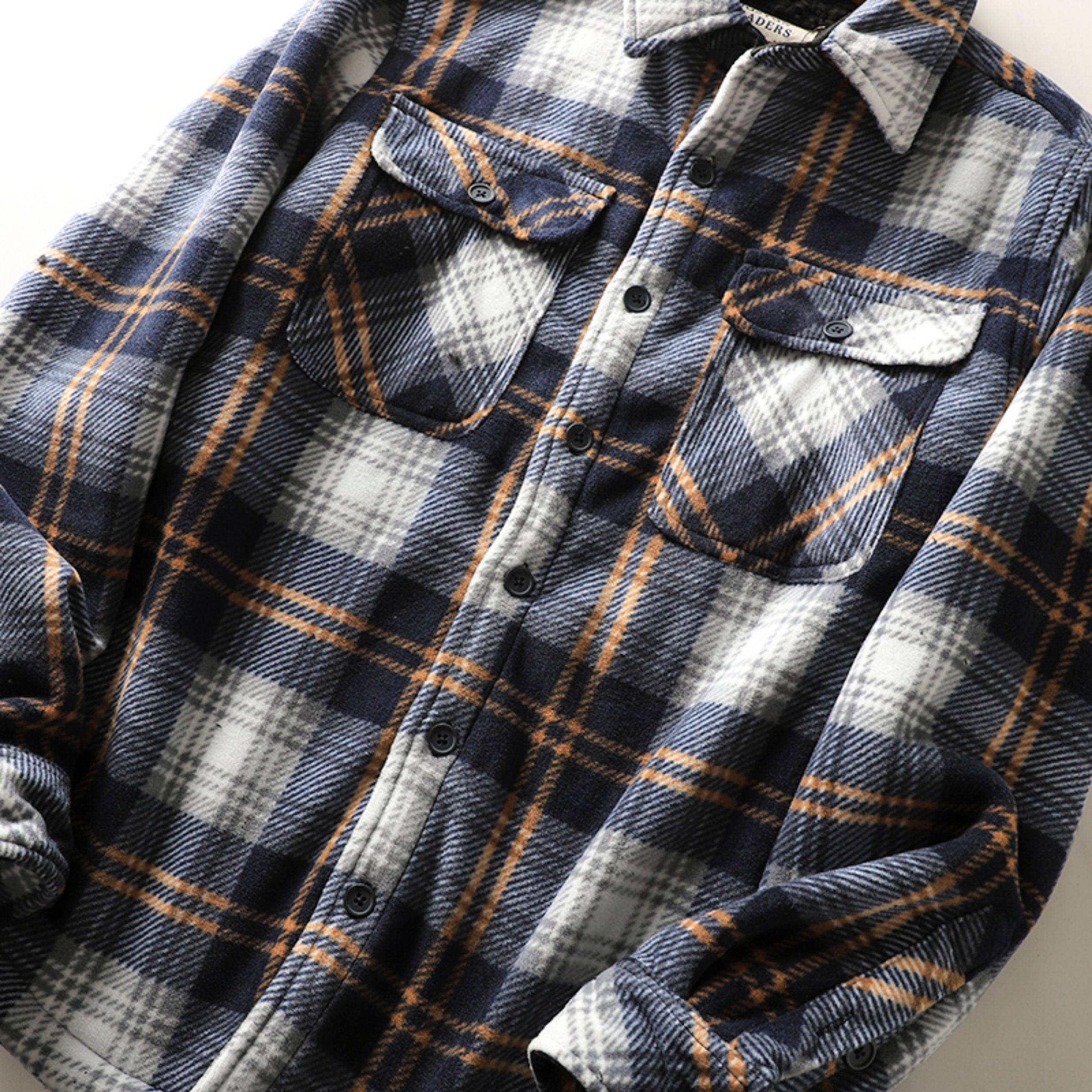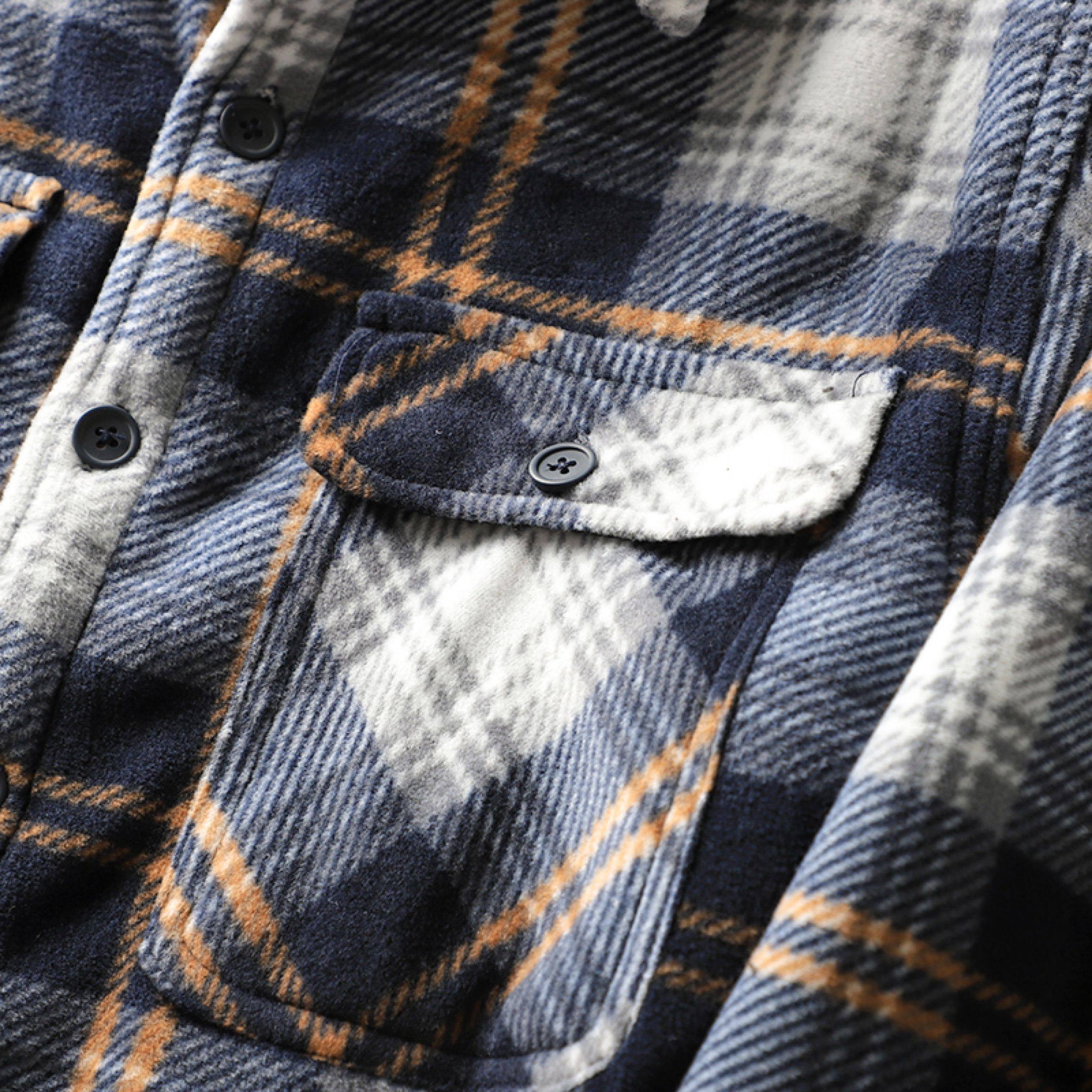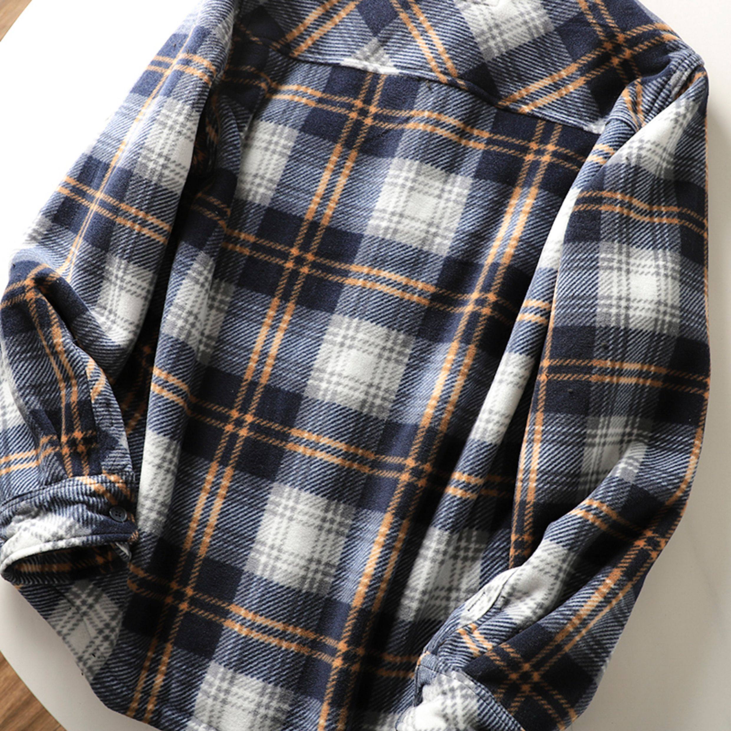 老美單~可做棉衣~秋冬男士加絨加厚保暖寬鬆羊羔毛法蘭絨格子襯衫