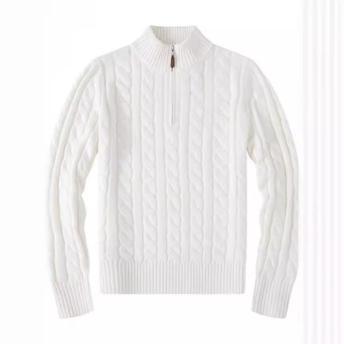 小刺綉男款毛衣半高拉鍊針織衫商務Polo打底衫麻花