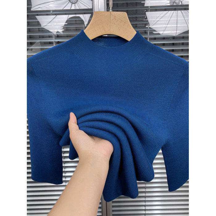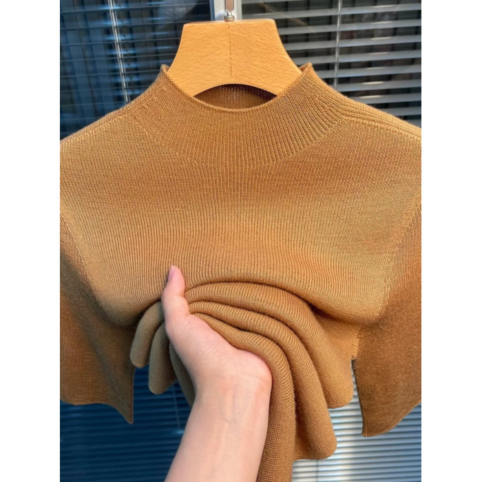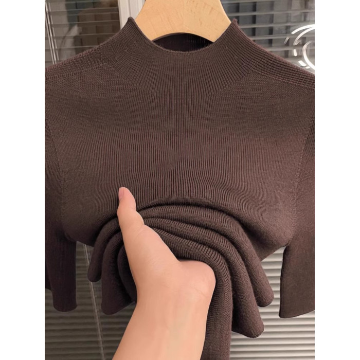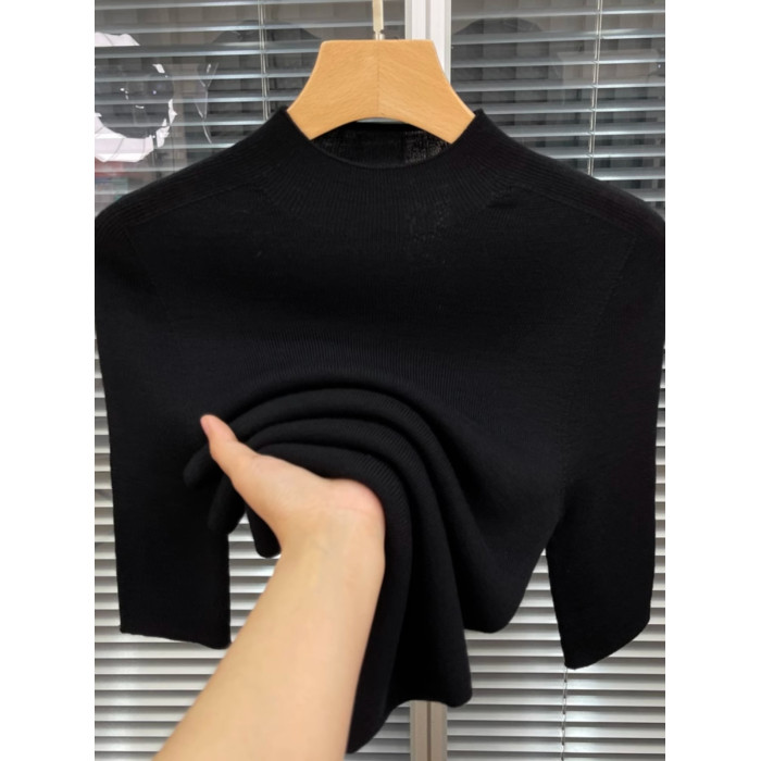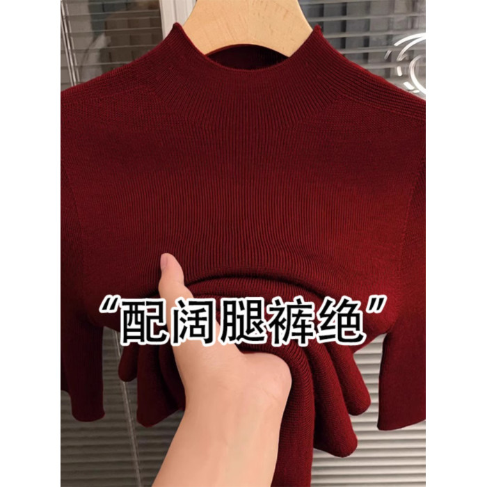 安可拉紅半高領針織打底衫女2025新款秋季穿搭修身內搭五分袖上衣