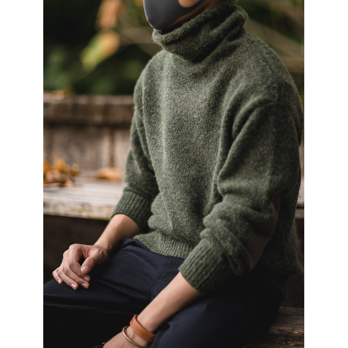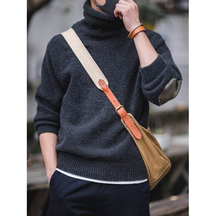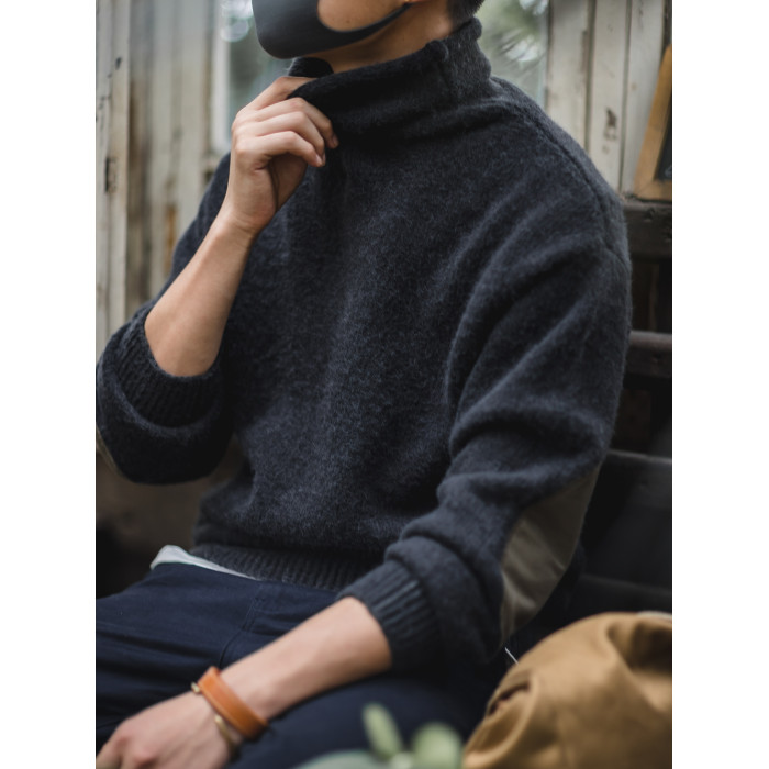 馬登工裝美式復古加厚針織馬海毛毛衣高領春黑色內搭打底衫男絨