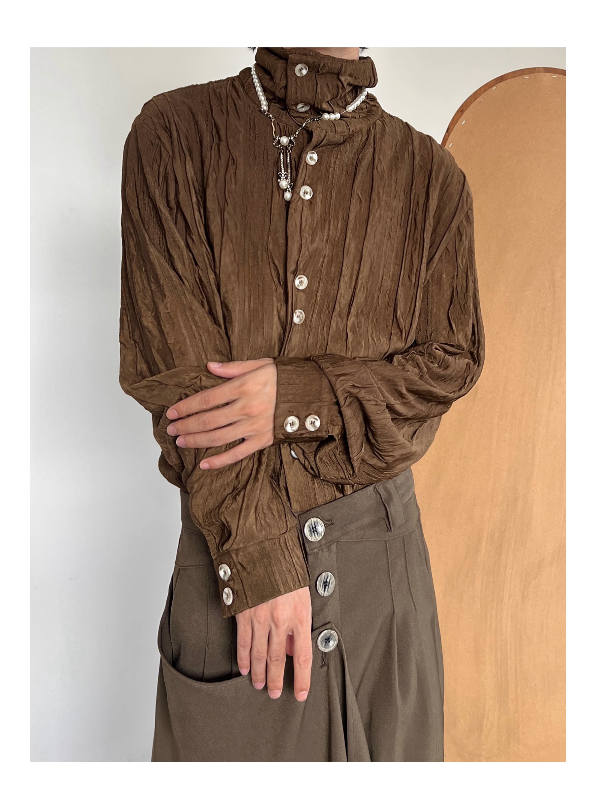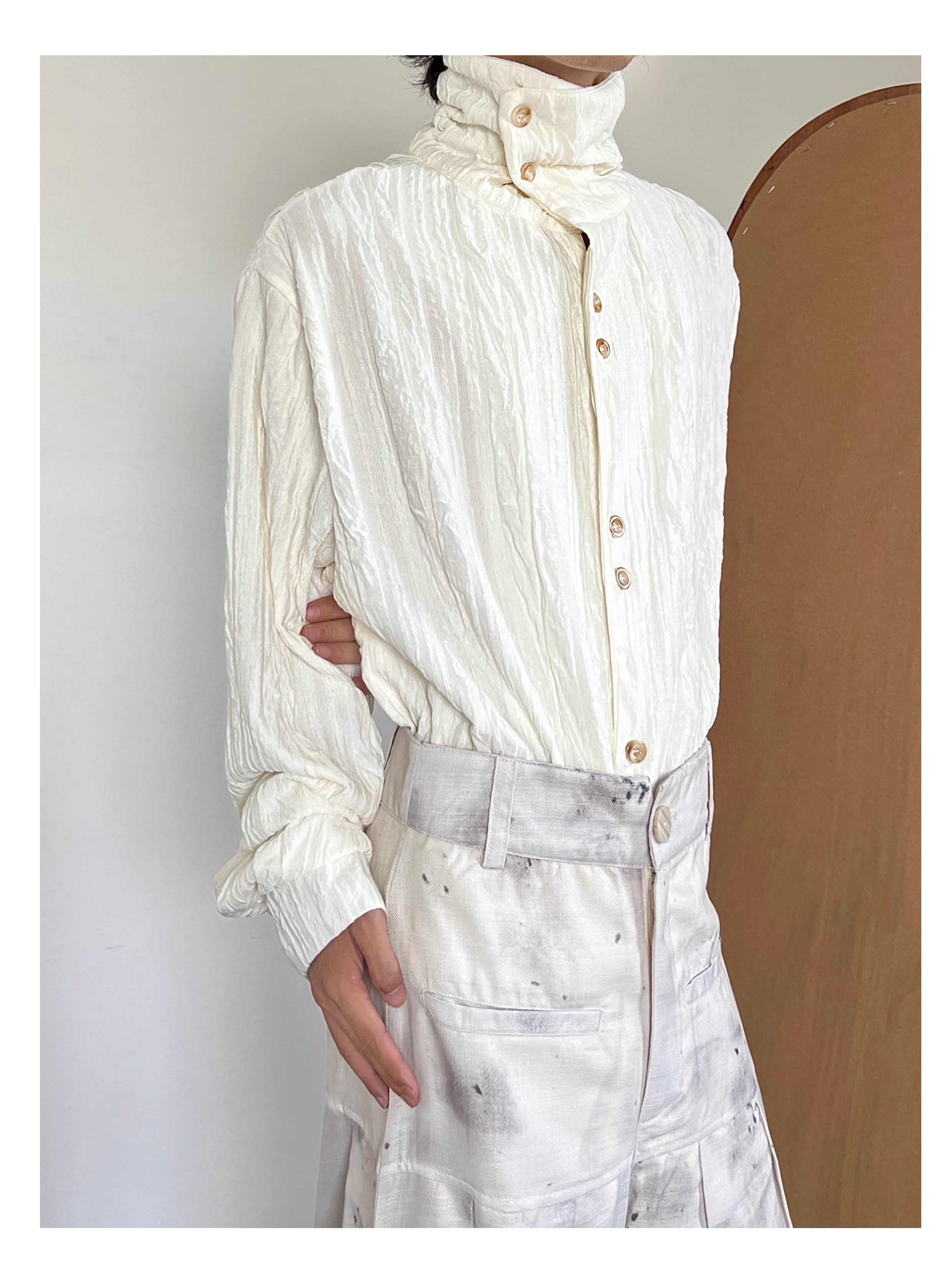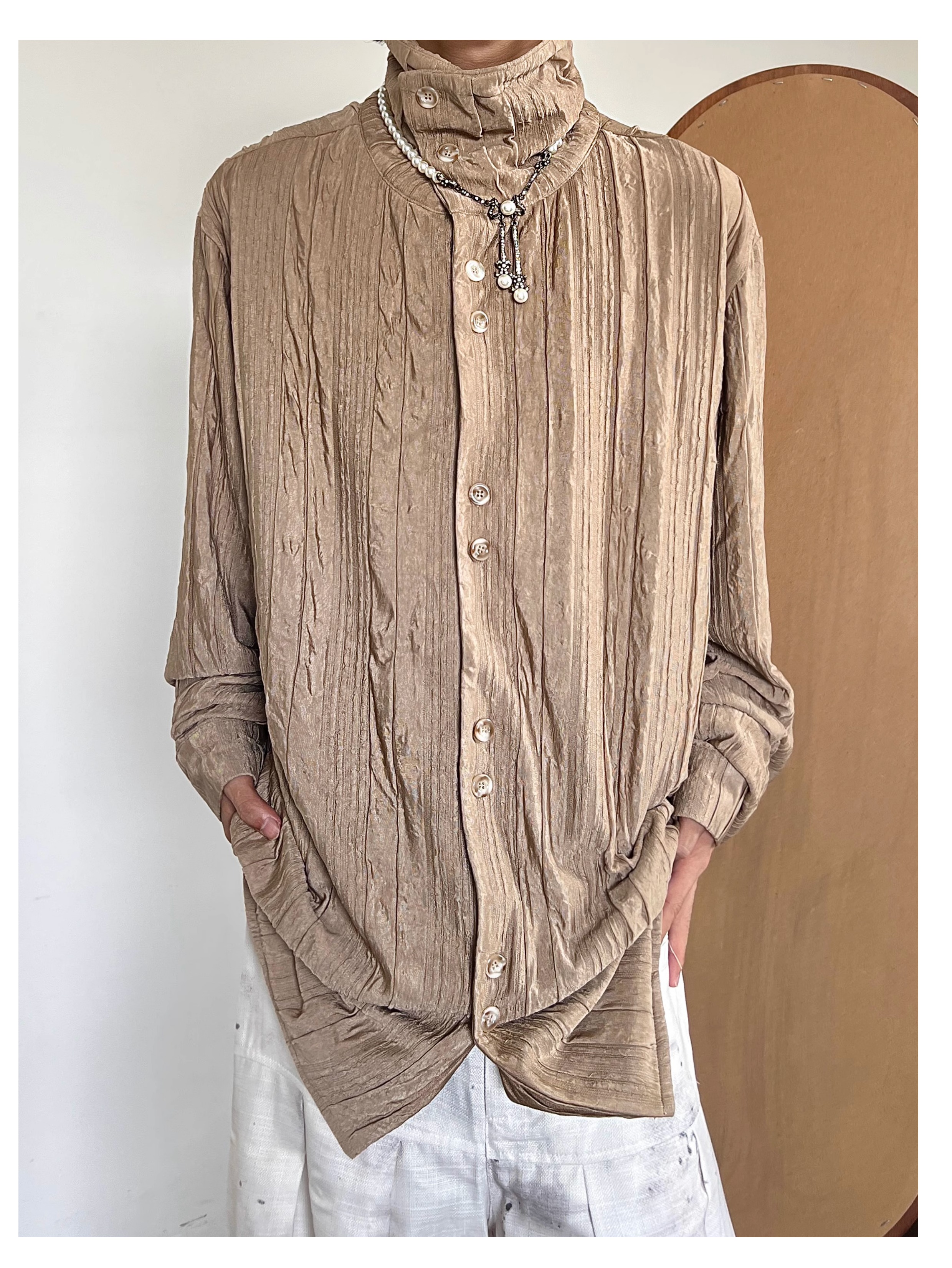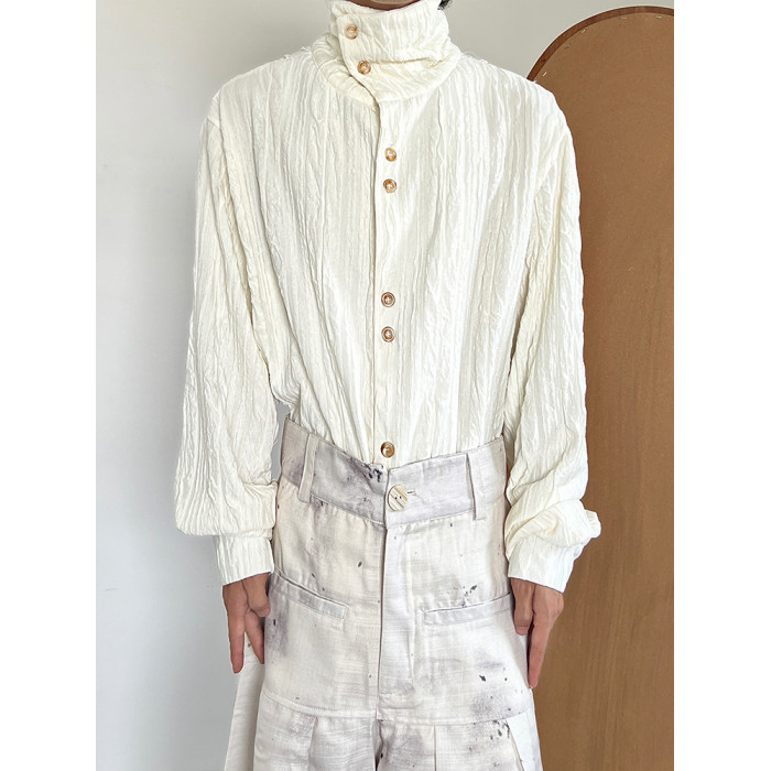 14GSL秋冬高領打底衫法式復古肌理感褶皺翻領襯衫高級感立領長袖