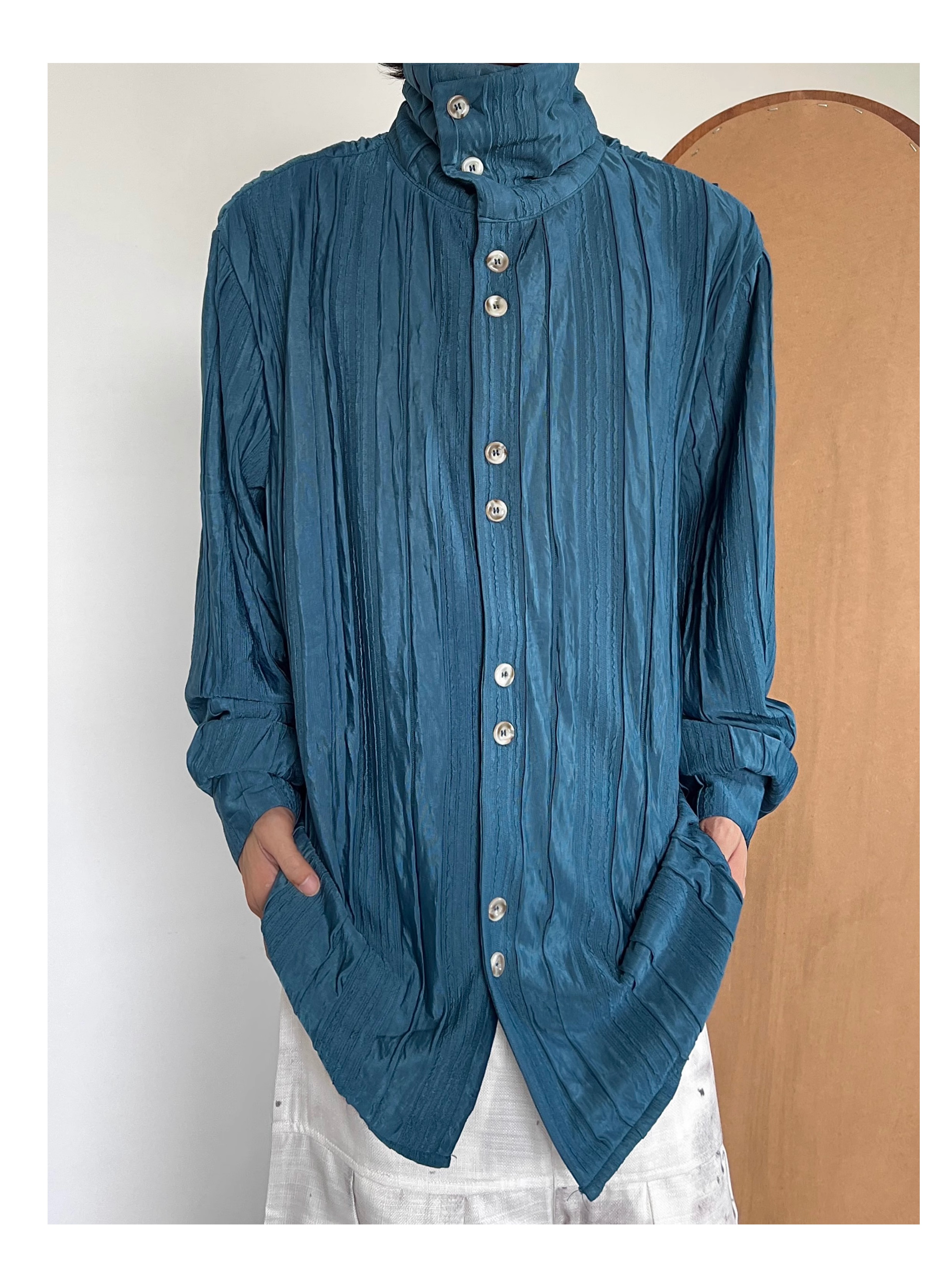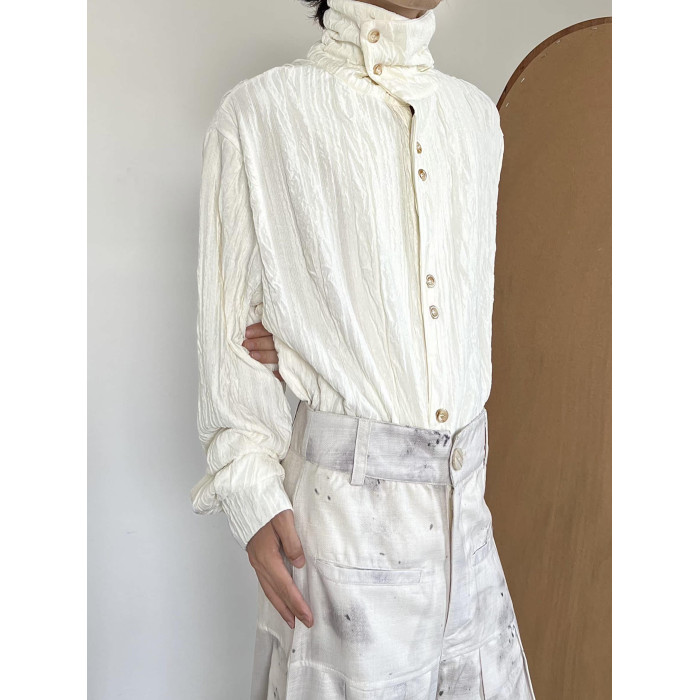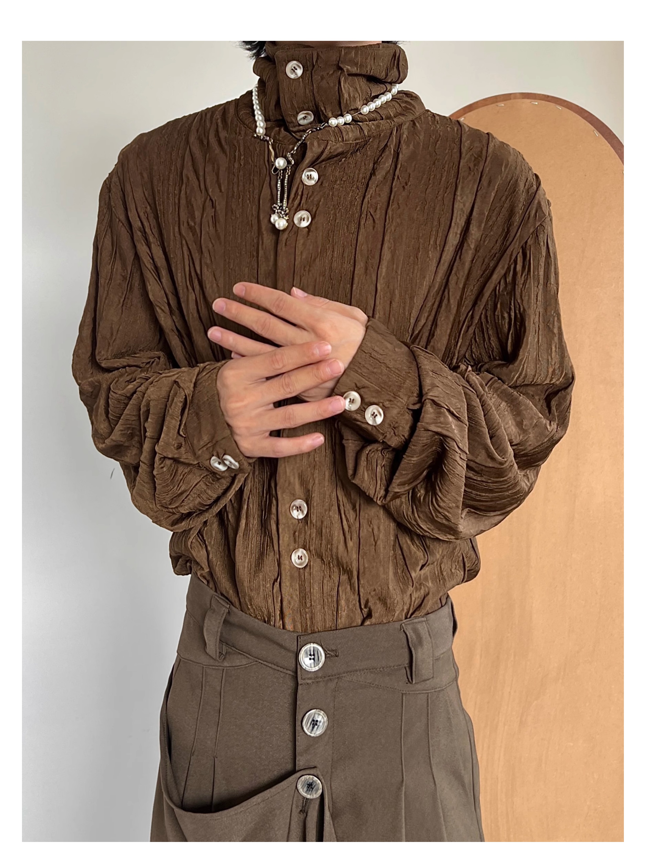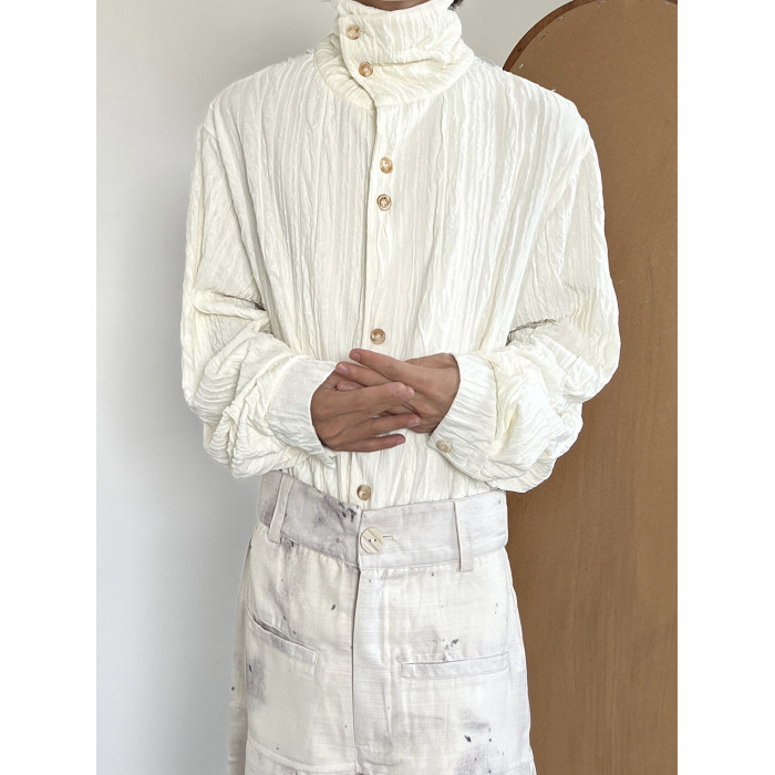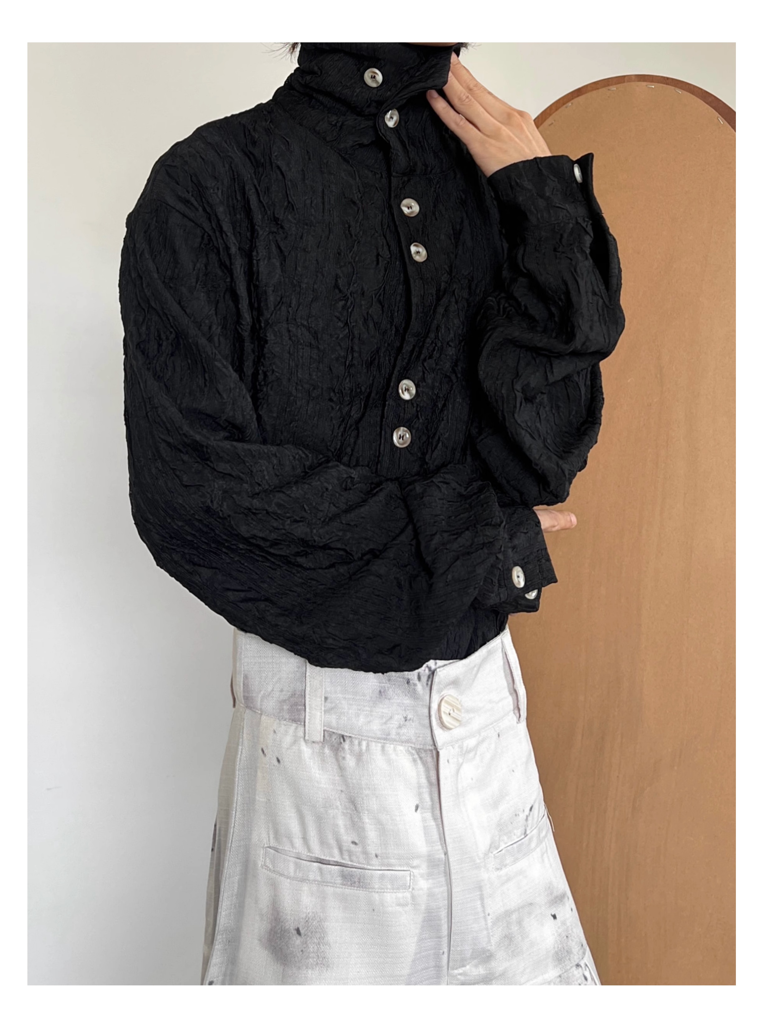 14GSL秋冬高領打底衫法式復古肌理感褶皺翻領襯衫高級感立領長袖
