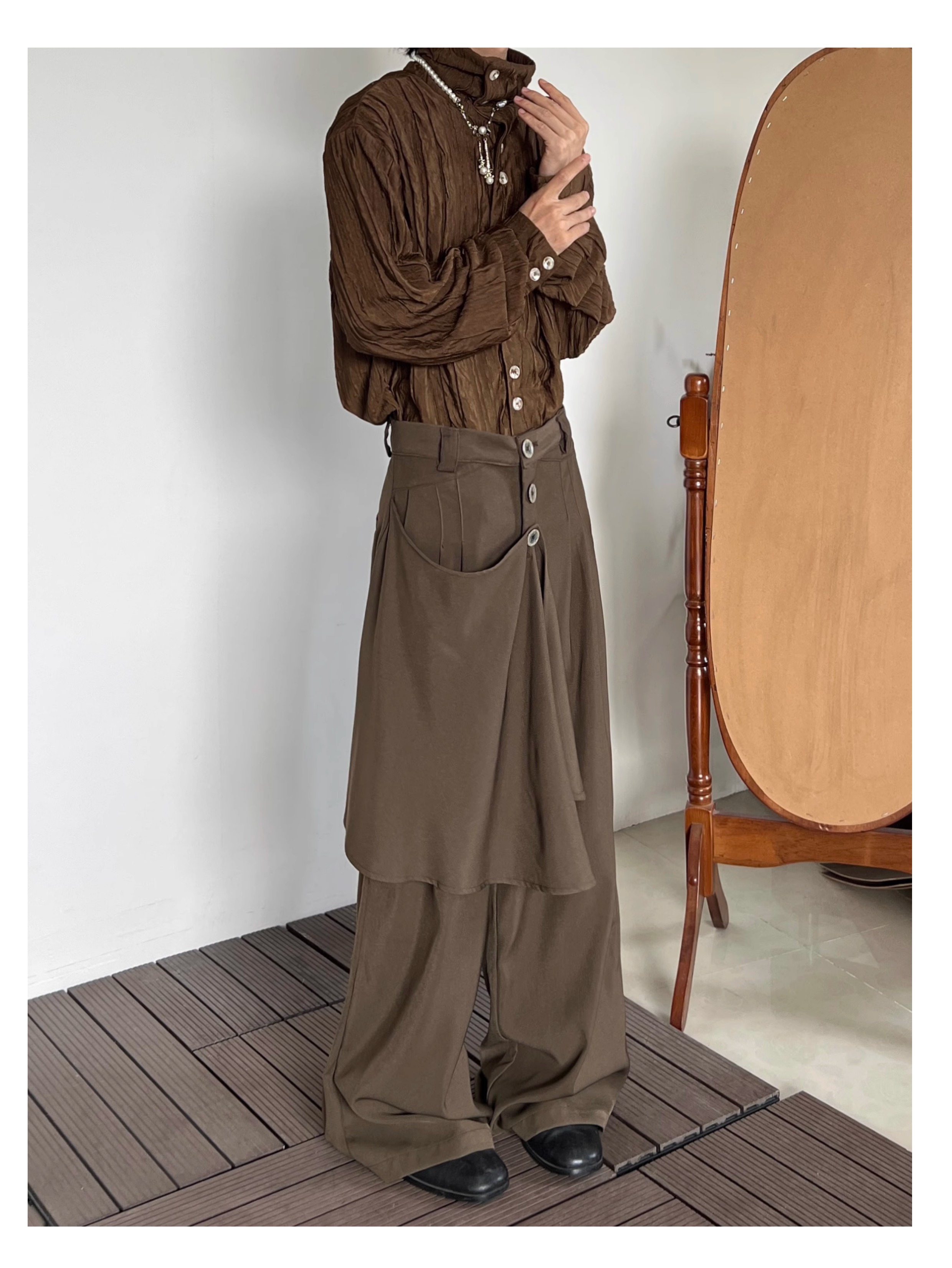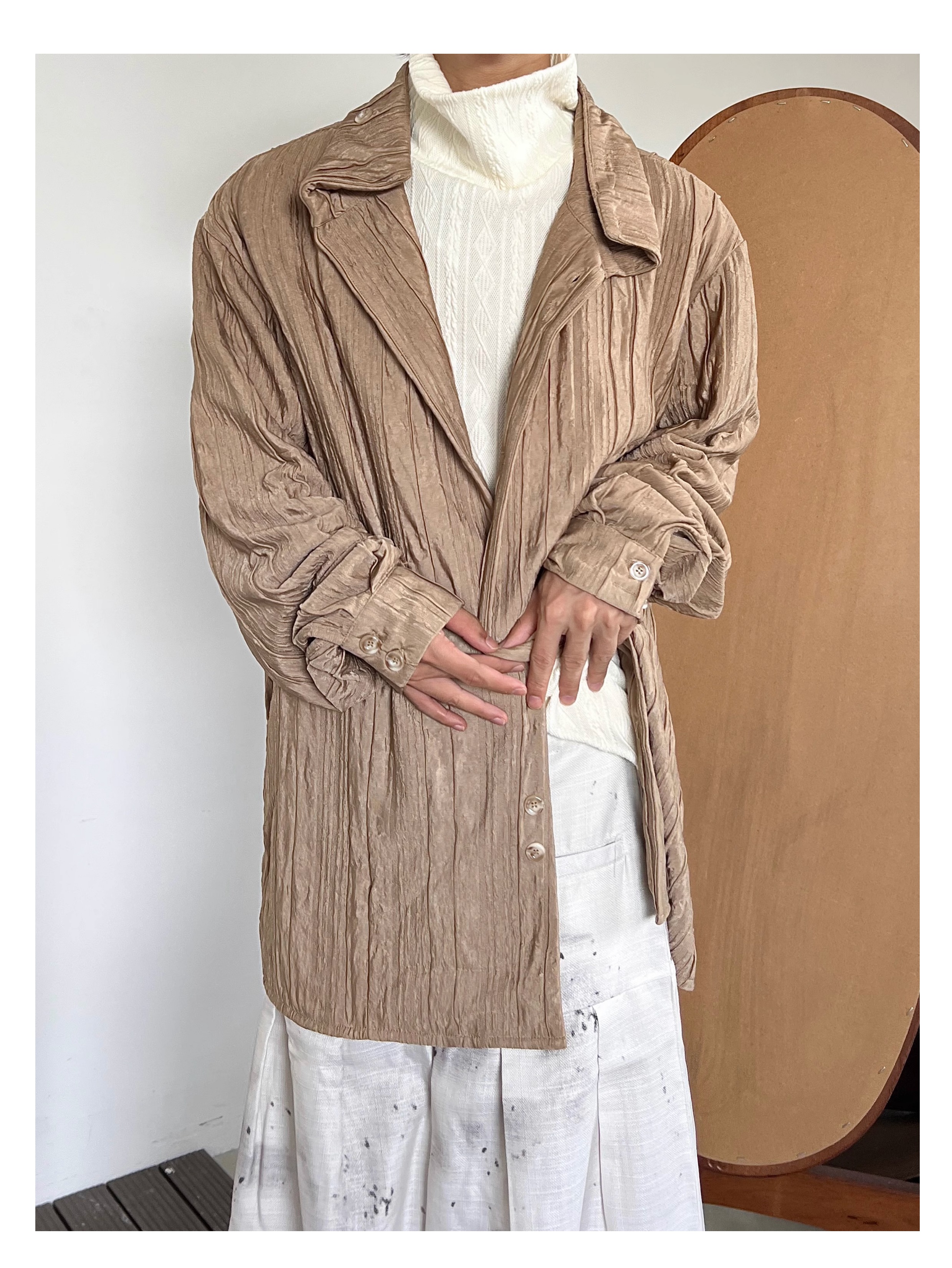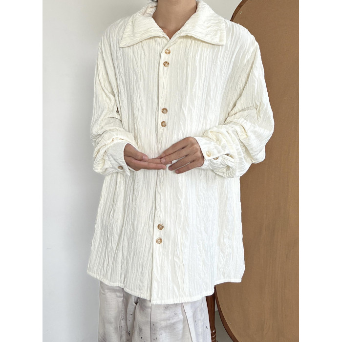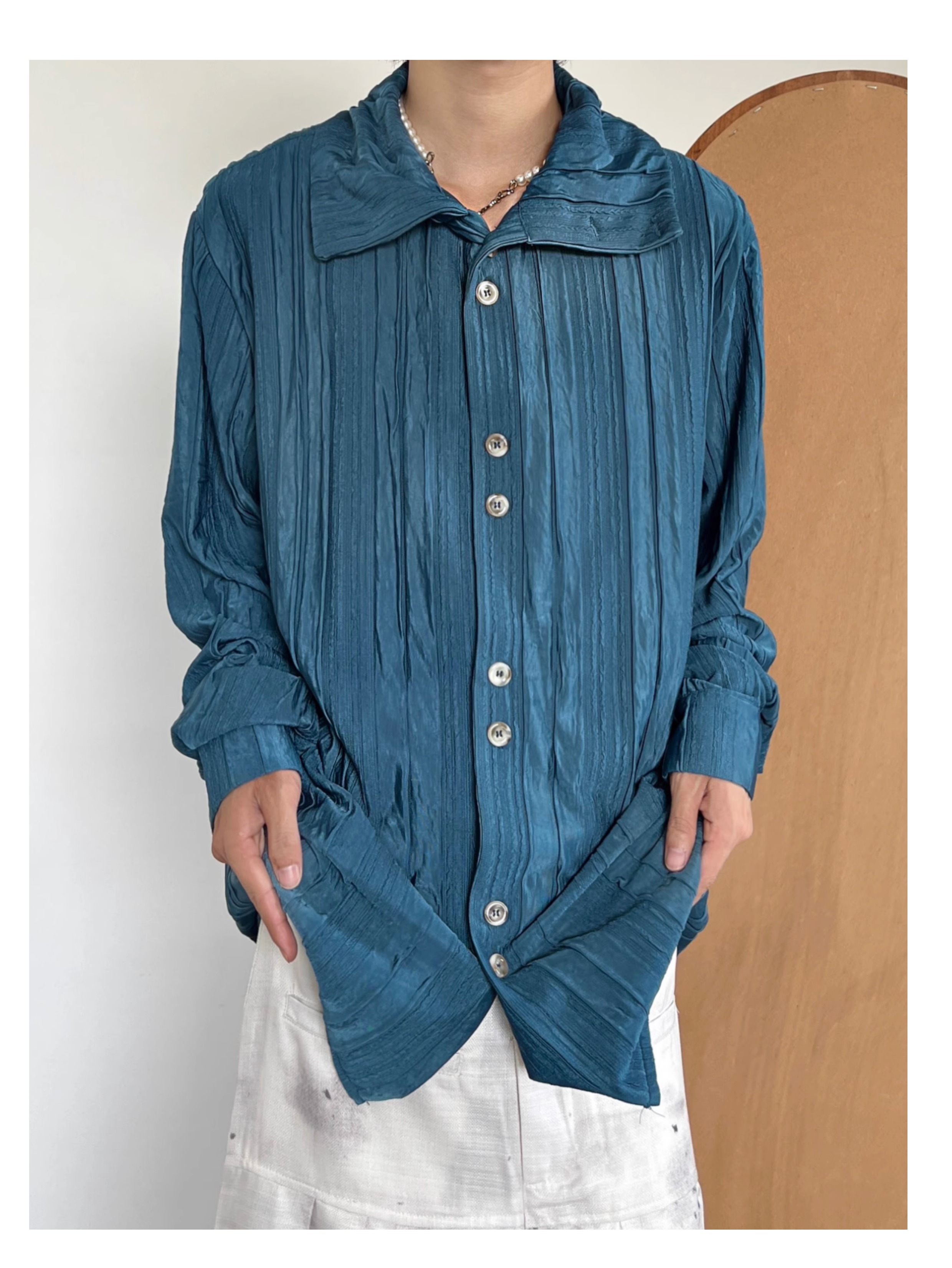 14GSL秋冬高領打底衫法式復古肌理感褶皺翻領襯衫高級感立領長袖