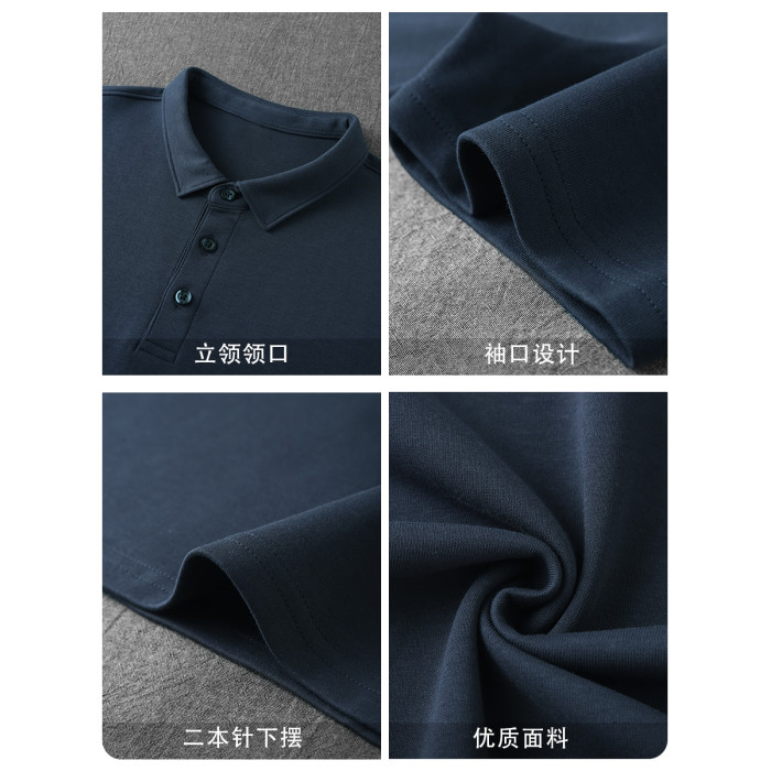 日系復古穿搭!顯白藏藍色重磅翻領短袖Polo衫夏季休閒寬松打底衫