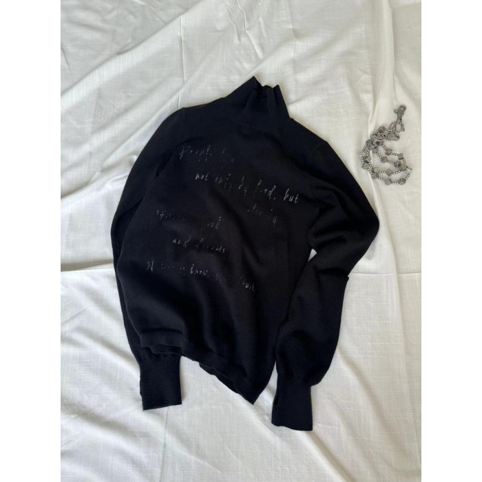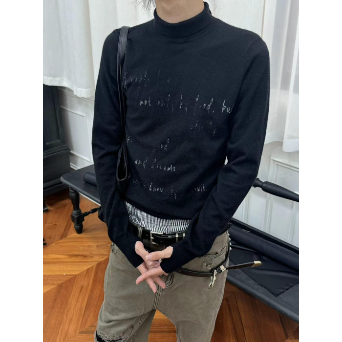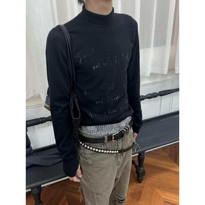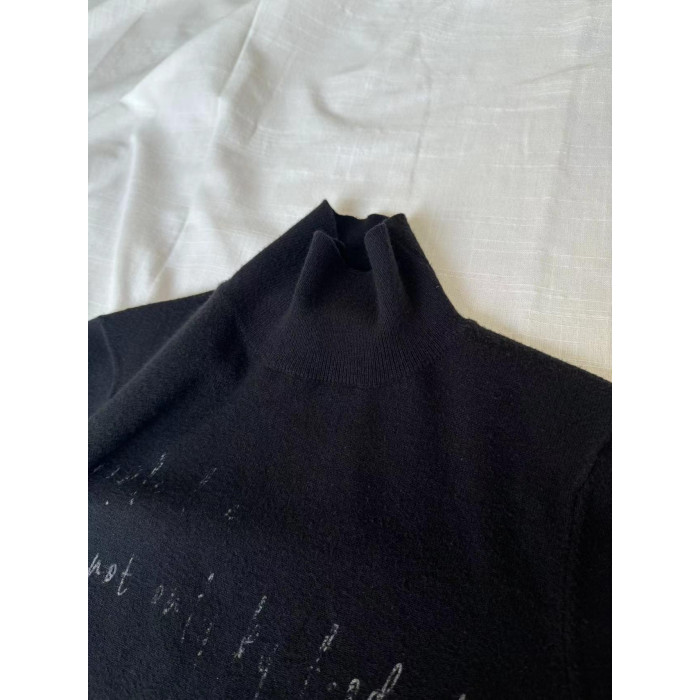 FDM 「wave」slogan標語羊毛高領 正肩合身長袖針織打底衫毛衣