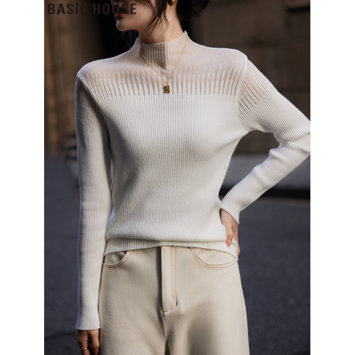 Basic House/百家好山茶白半高領大衣內搭蕾絲針織打底衫女春秋季