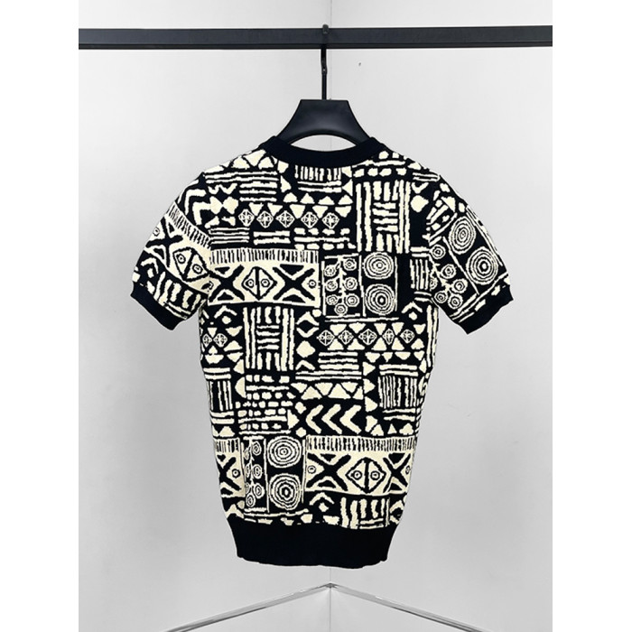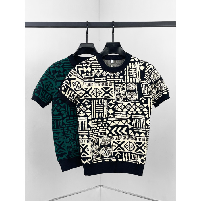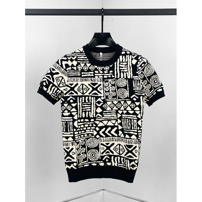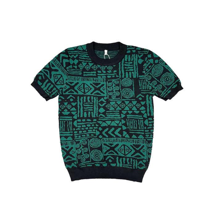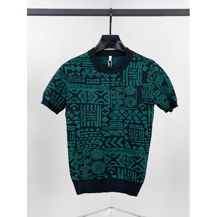 秋冬新款男士加厚毛衣短袖針織衫個性提花圓領修身韓版帥氣打底衫