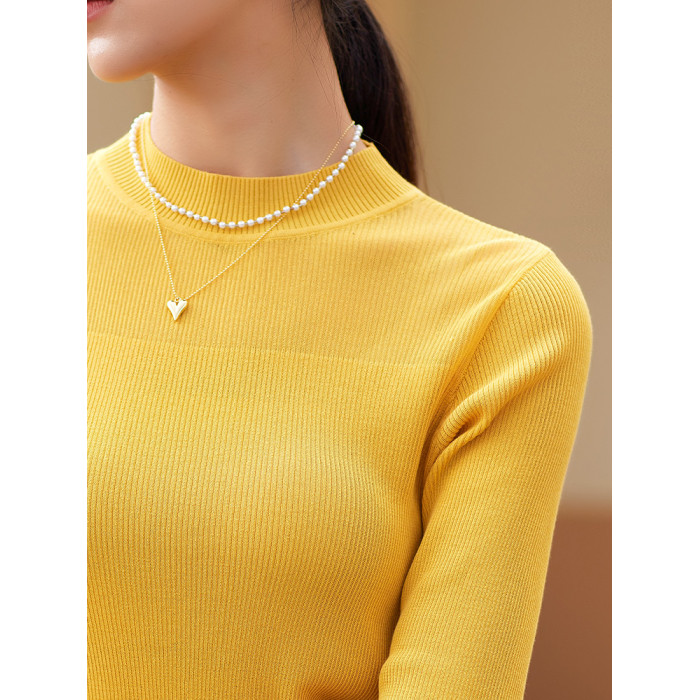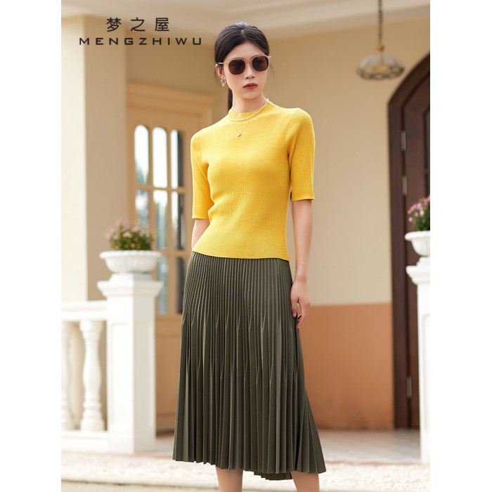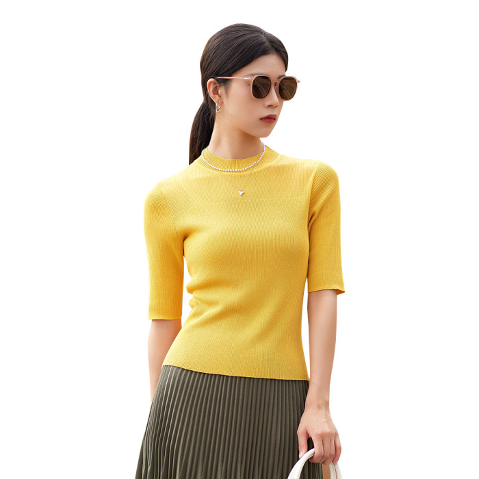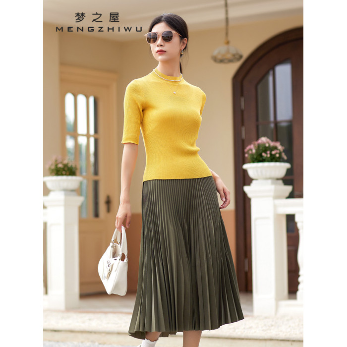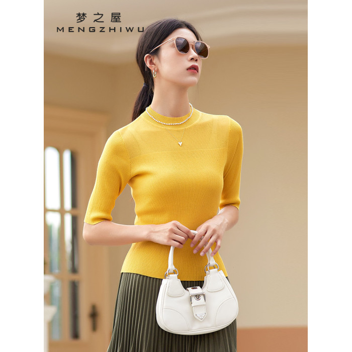 夢之屋2025春季新款圓領套頭百搭修身顯瘦中袖毛衣打底衫女M27606