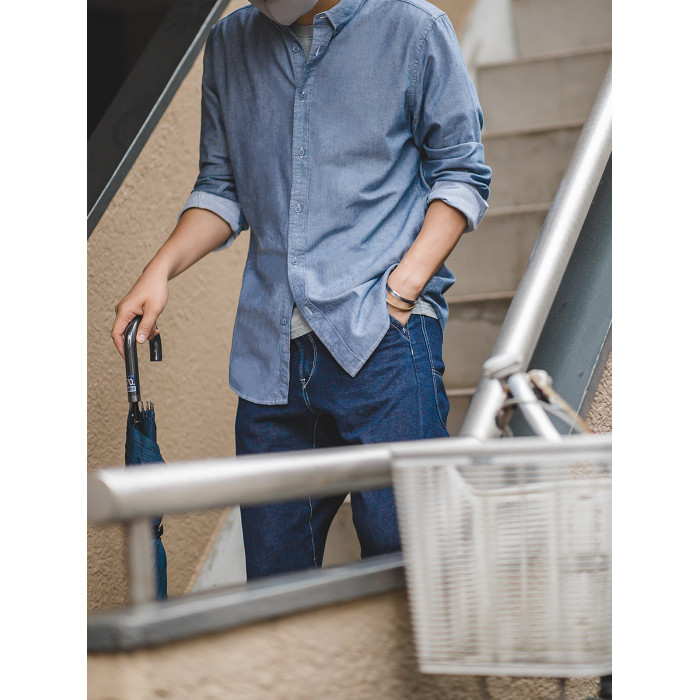 馬登工裝復古磨毛長袖薄襯衫牛津紡純棉休閒外穿襯衣打底衫男春