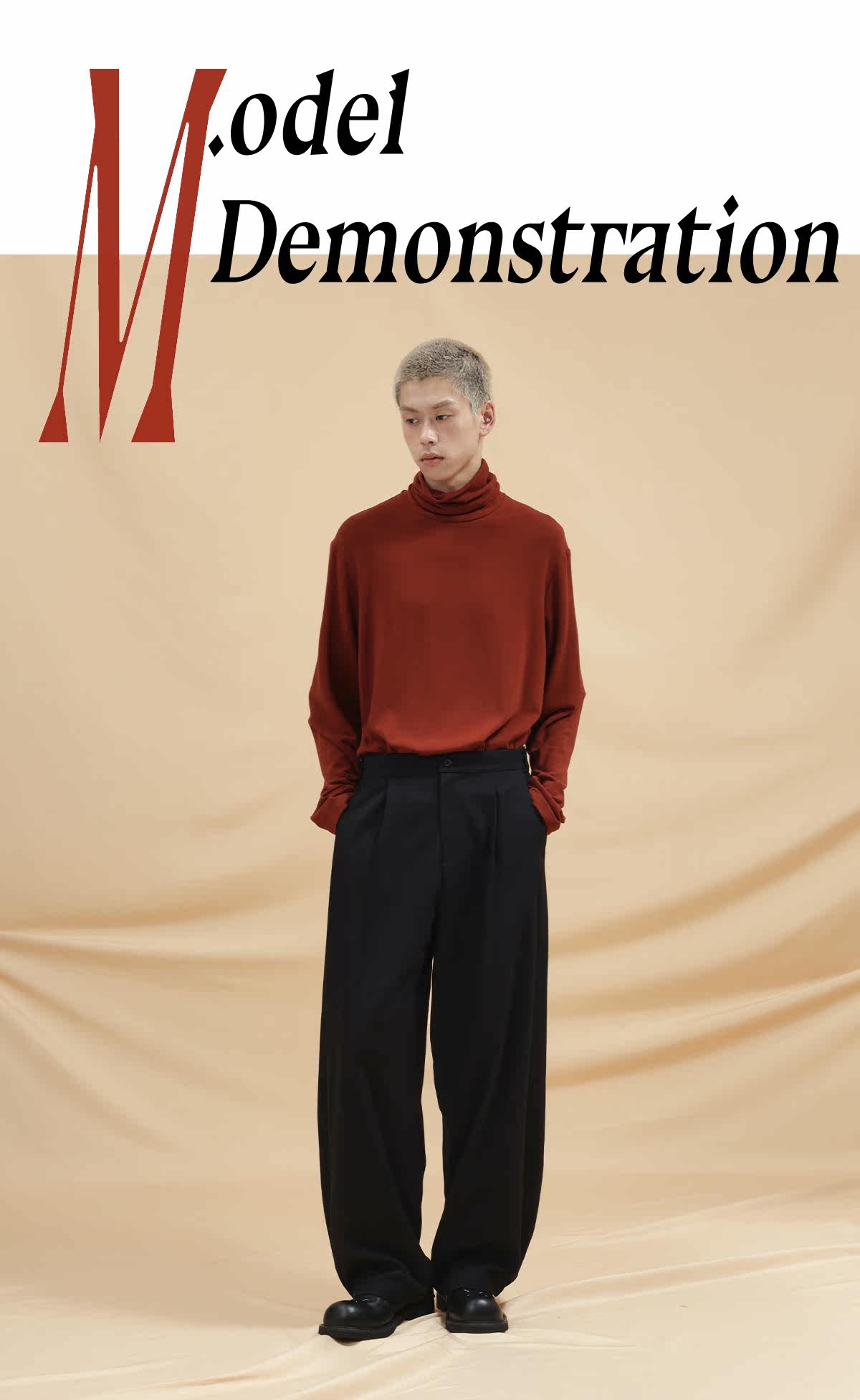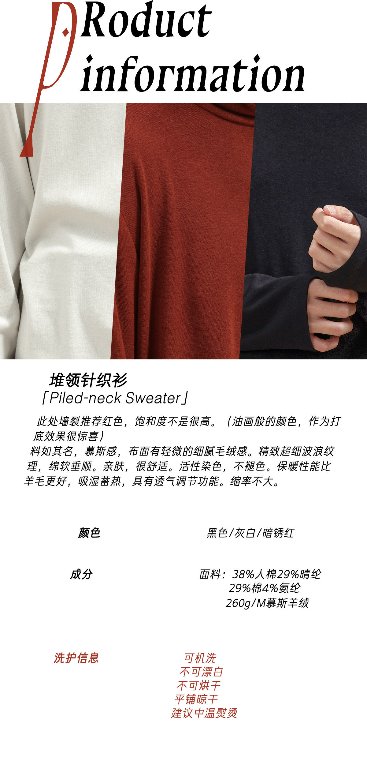 黑白紅可機洗慕斯羊絨堆堆領打底衫男純色套頭薄款柔軟保暖直筒