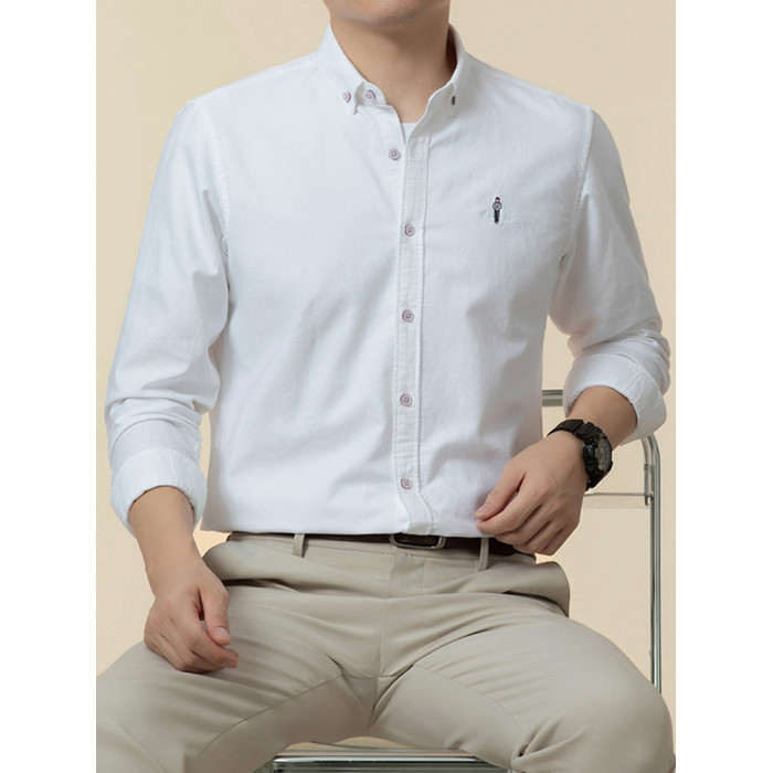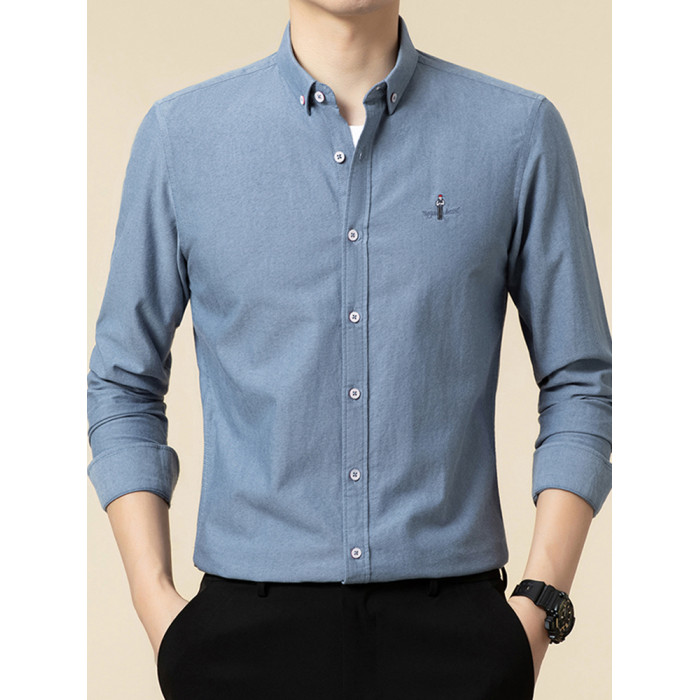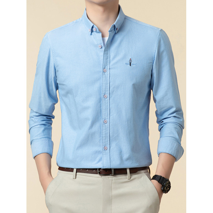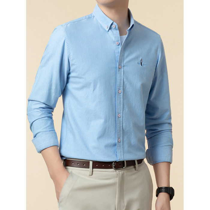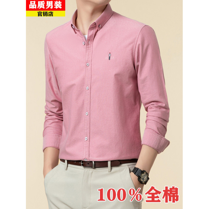 全棉長袖襯衫男士高級100%棉襯衣打底衫中青年商務刺綉粉色寸衫