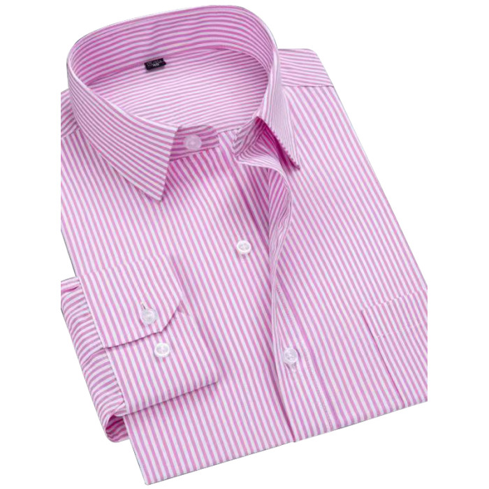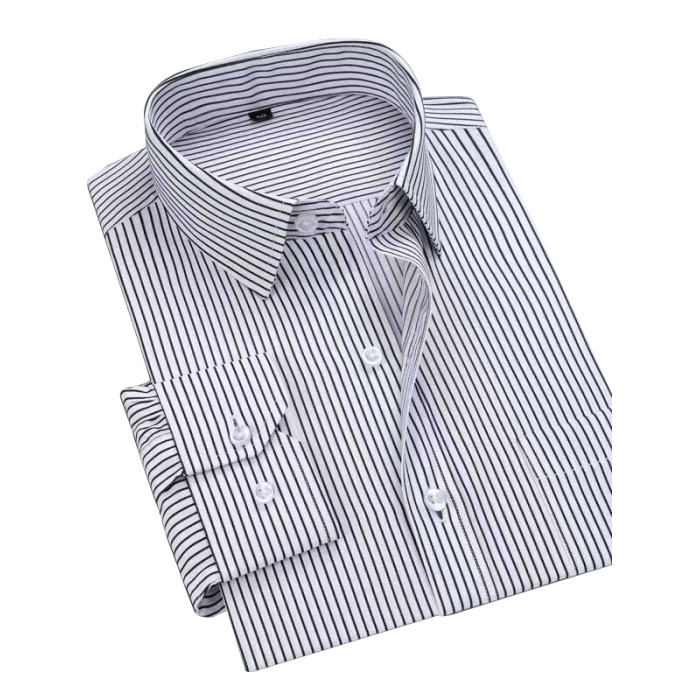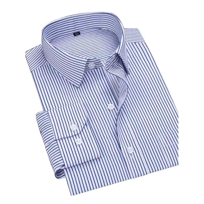 優鯊男士藍色條紋長袖襯衫商務休閒職業工裝免燙純色襯衣打底衫