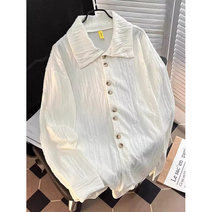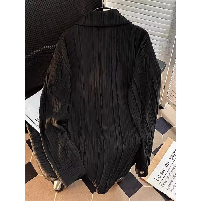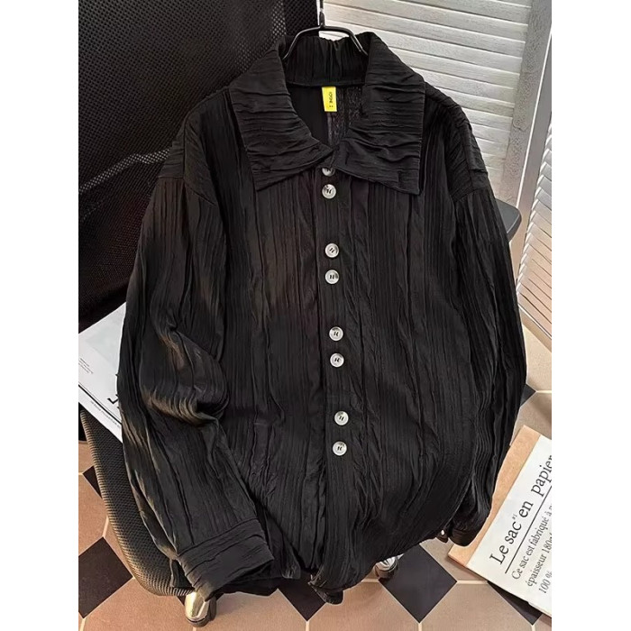 山本耀司風高級感日系打底衫男女春秋季肌理感立領中性風長袖襯衫