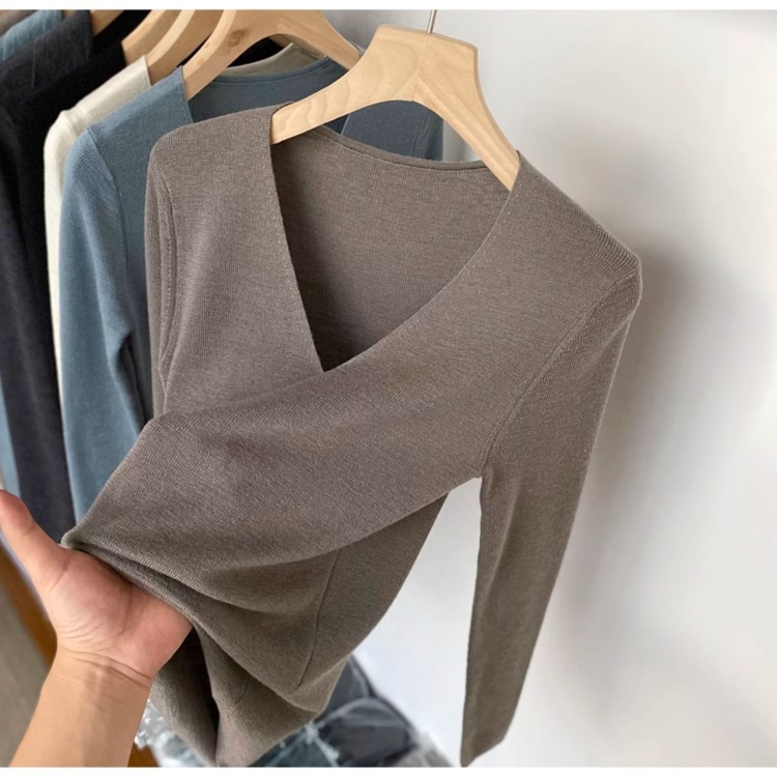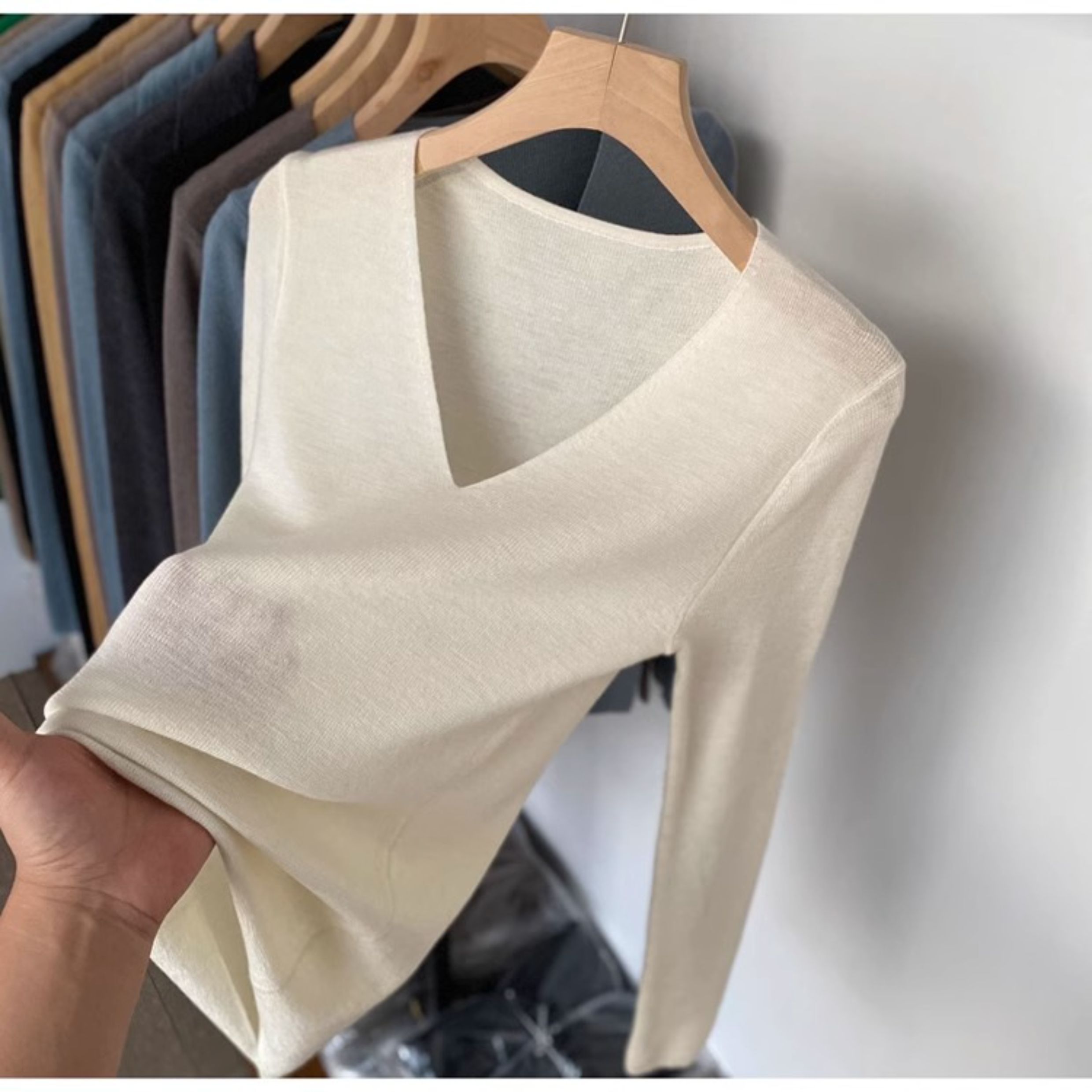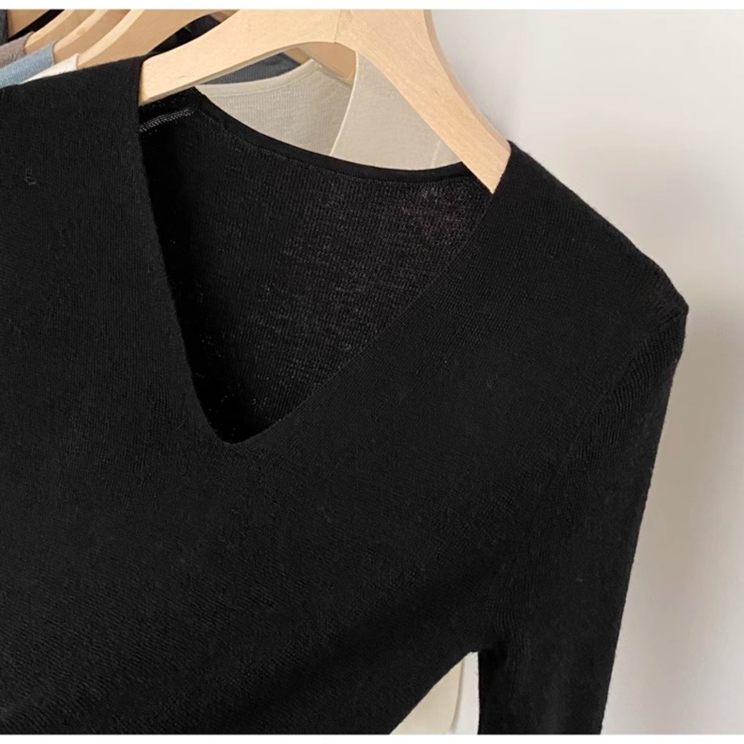 韓國V領羊毛針織衫女修身氣質早春打底衫長袖上衣高級感毛衣秋冬