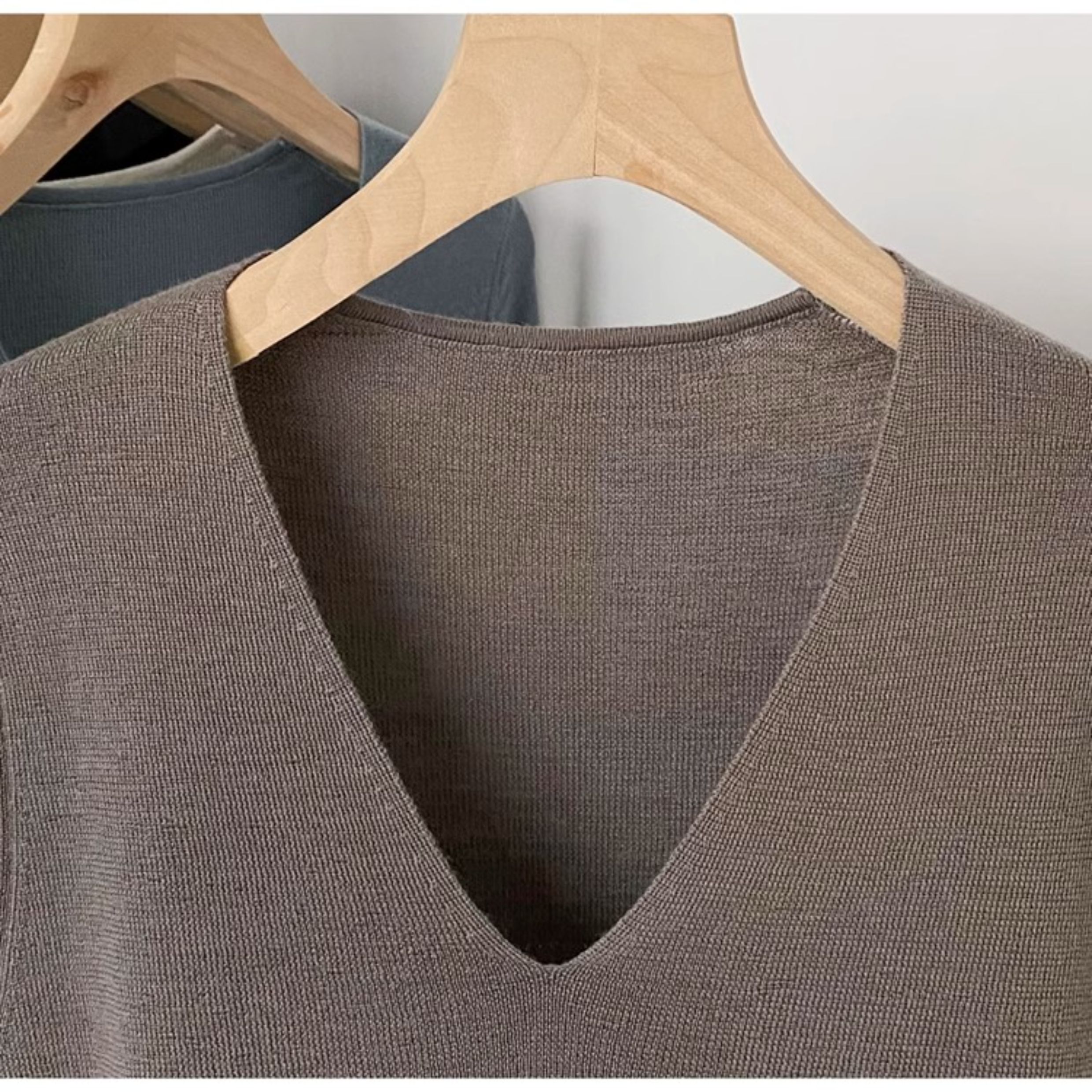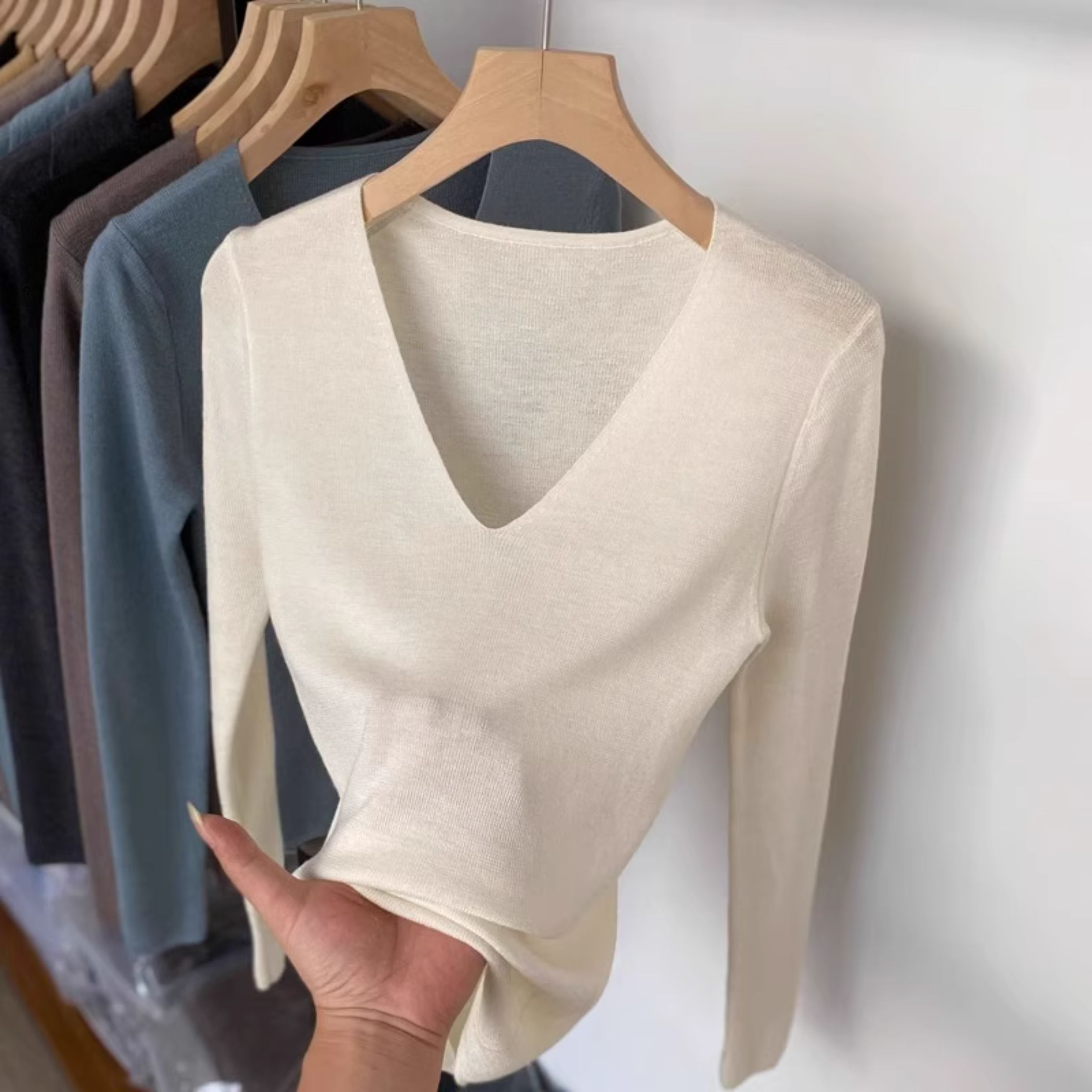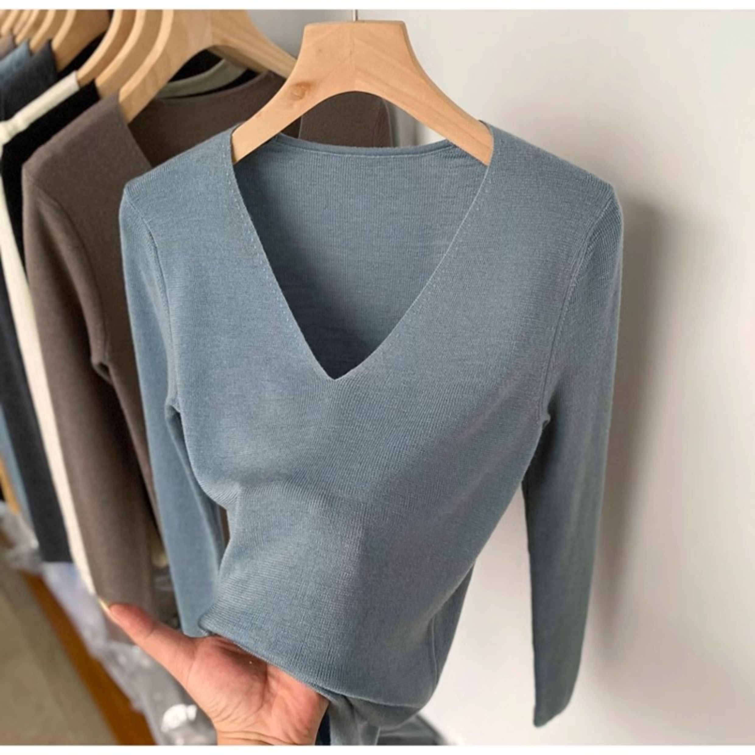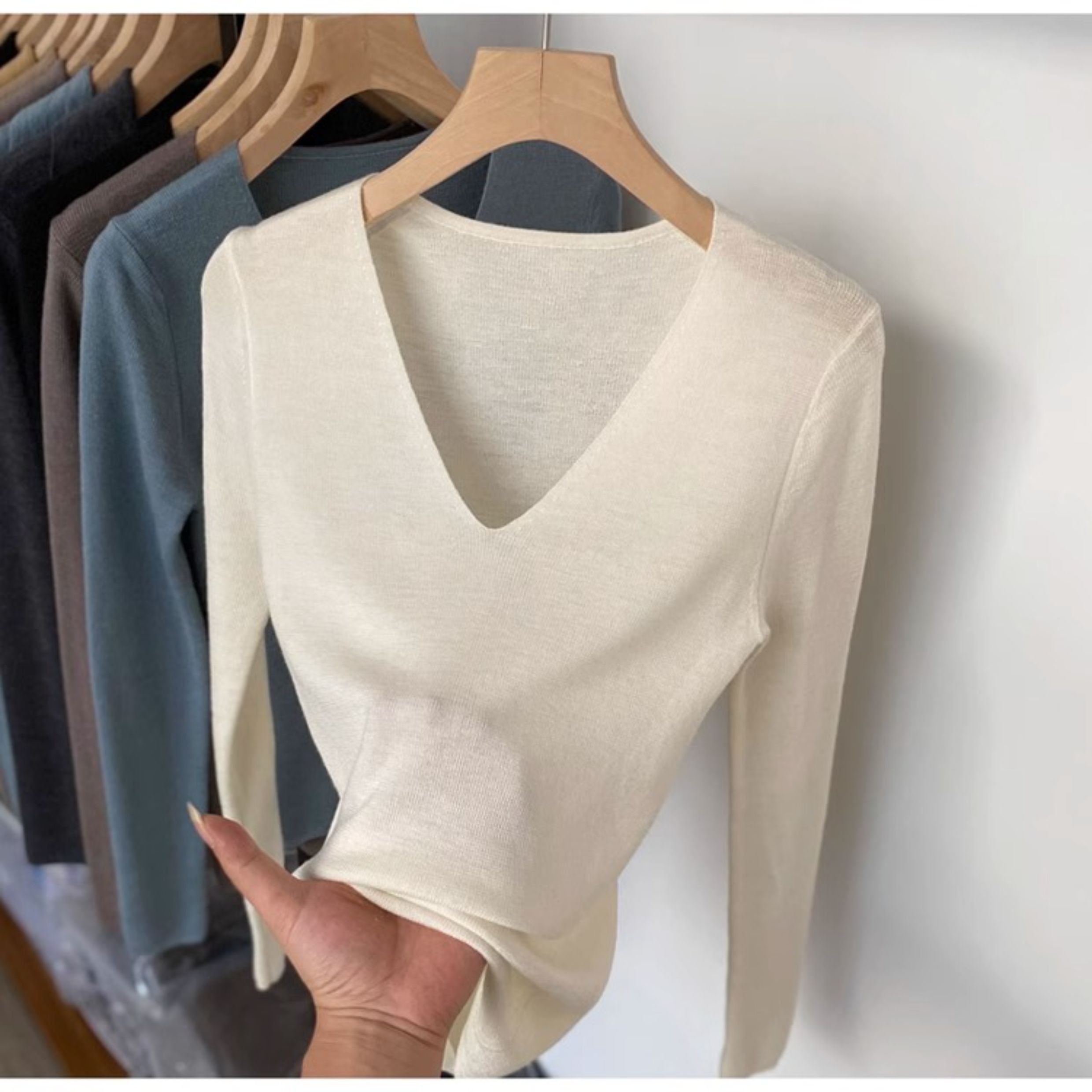 韓國V領羊毛針織衫女修身氣質早春打底衫長袖上衣高級感毛衣秋冬