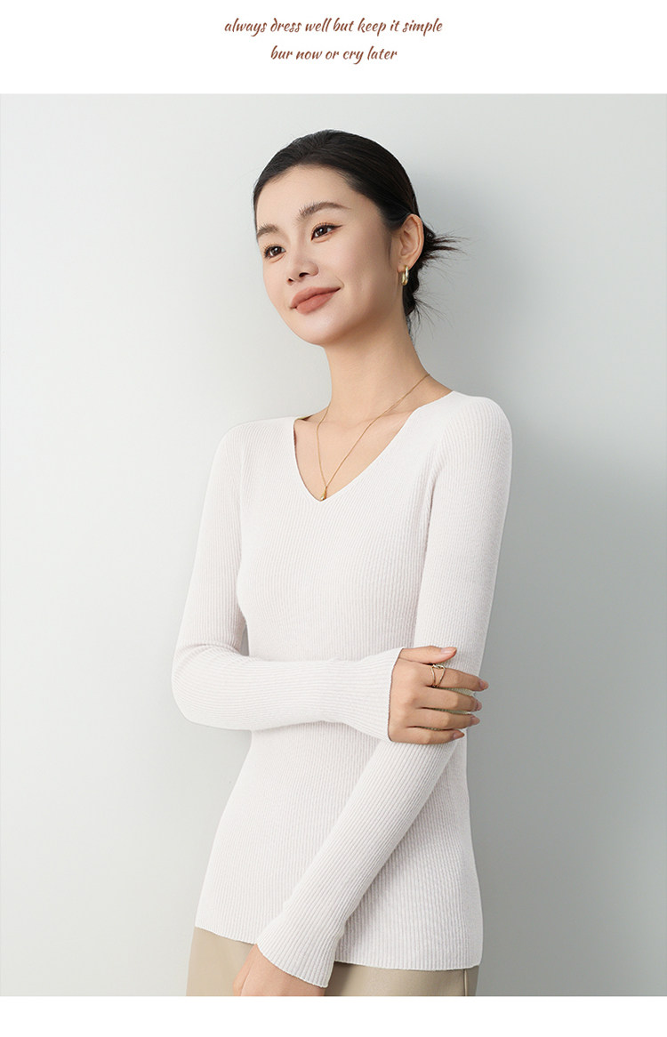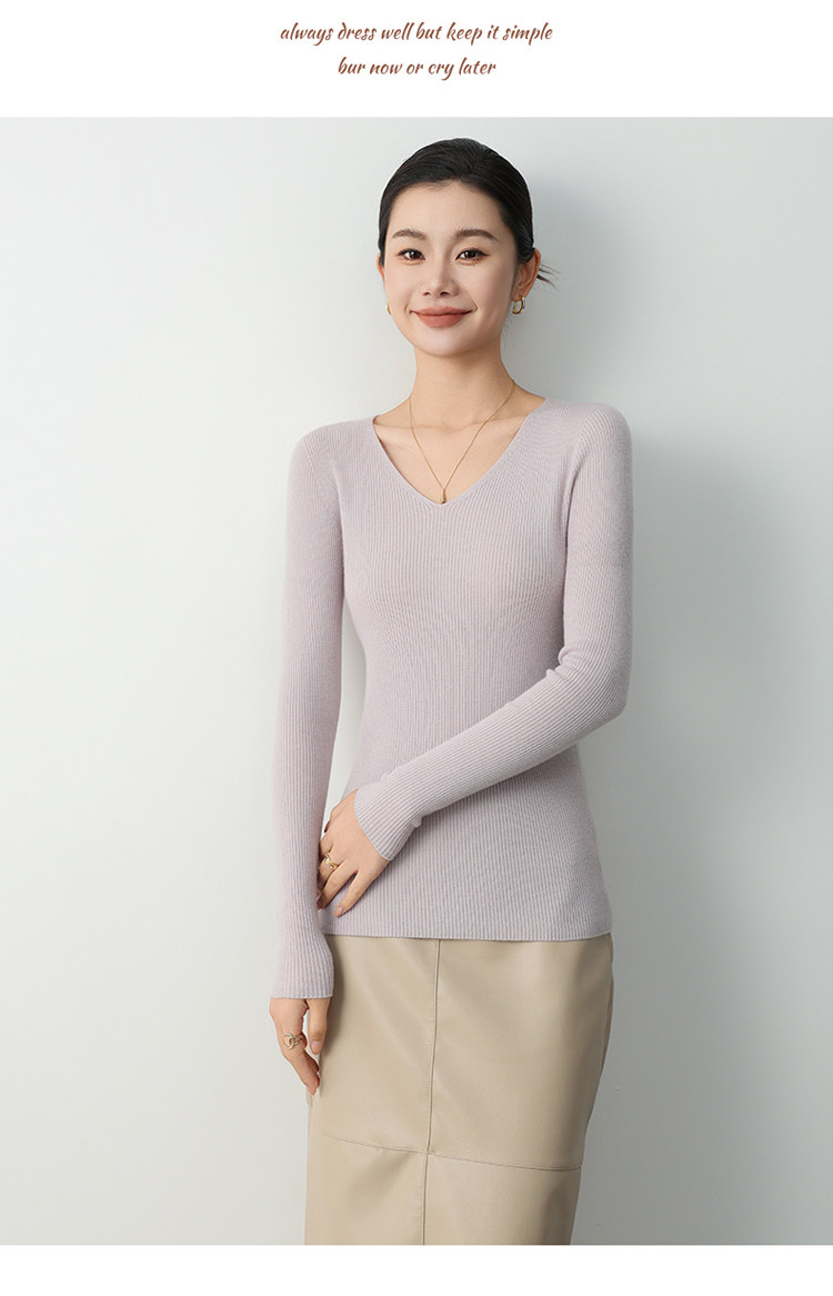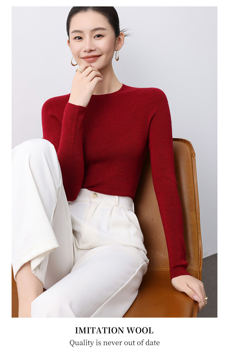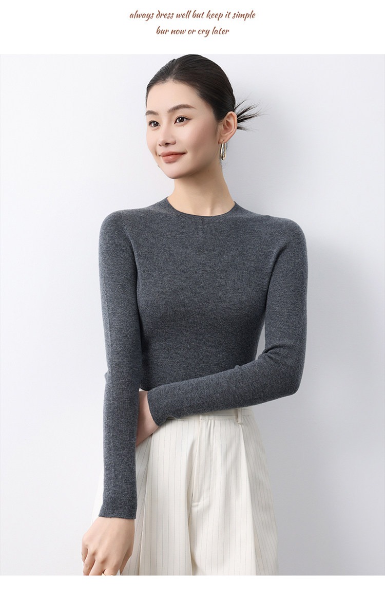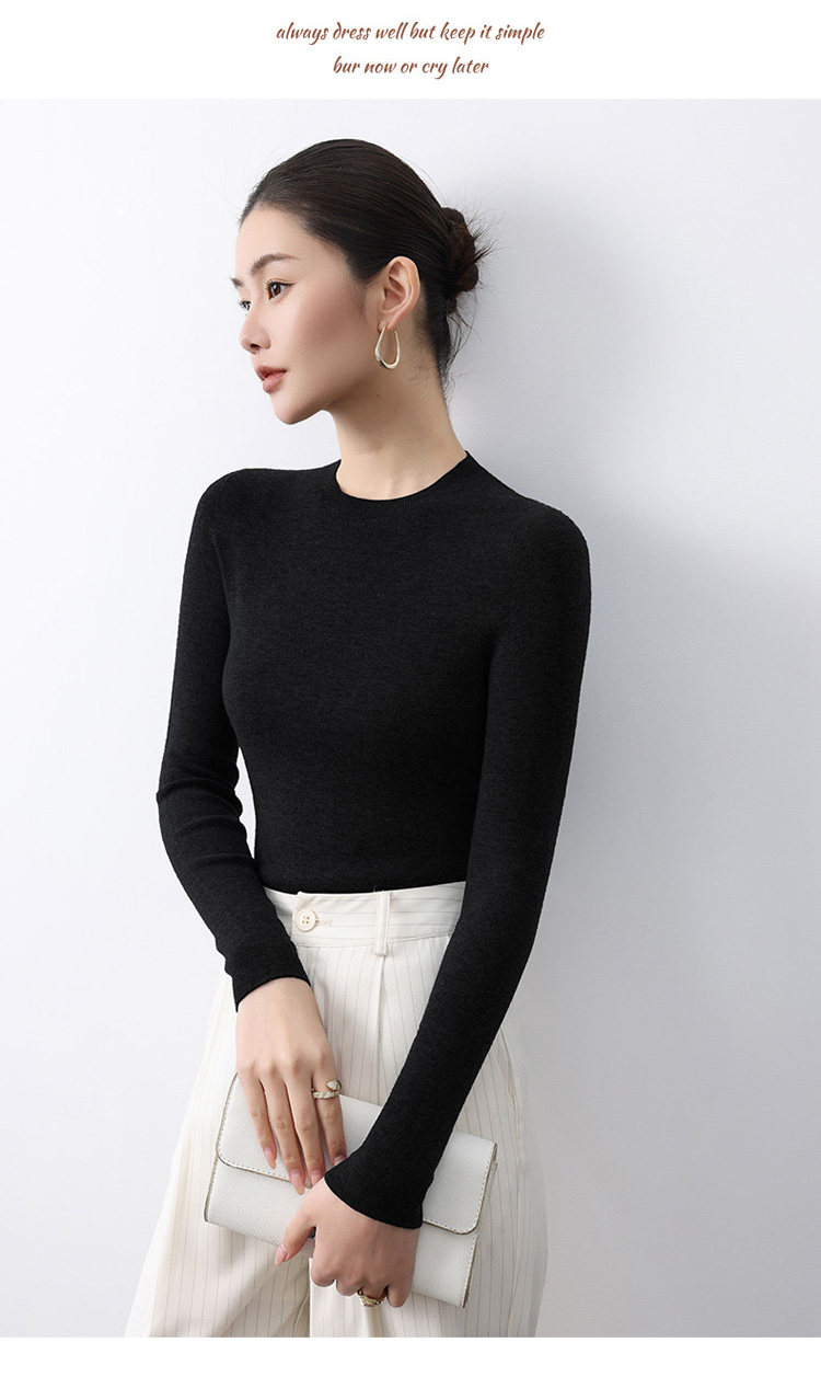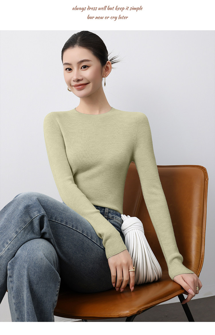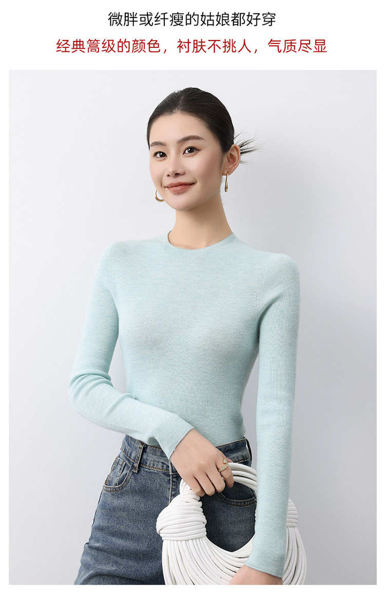 精紡美利奴V領羊毛衫女100純羊毛修身薄款 春秋季圓領打底衫毛衣