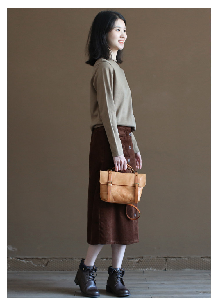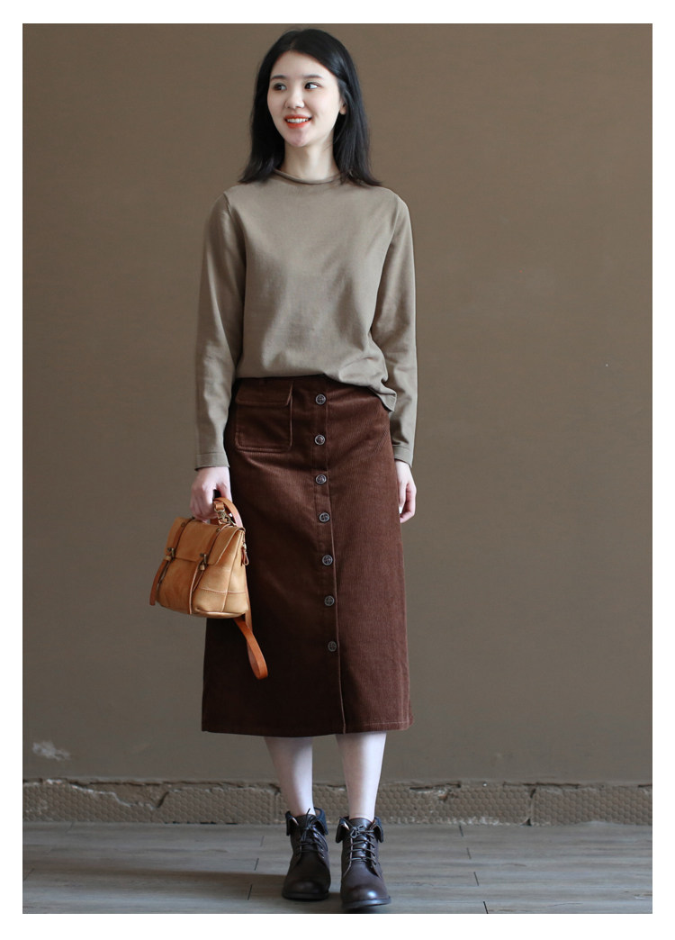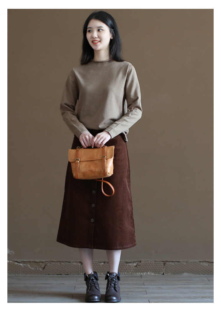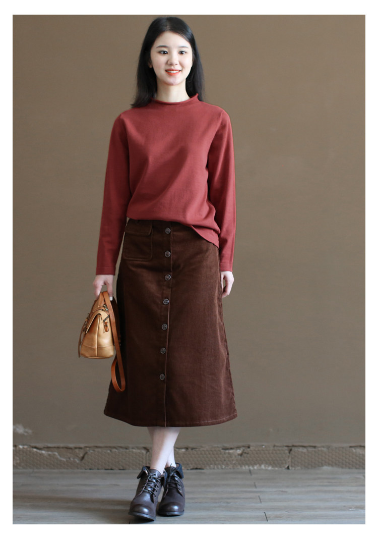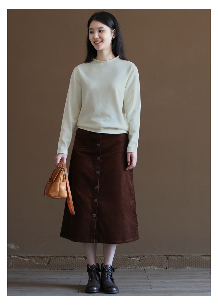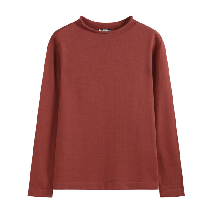 三五年Y480森系純棉線針織打底衫春秋純色圓領長袖打底套頭女上衣