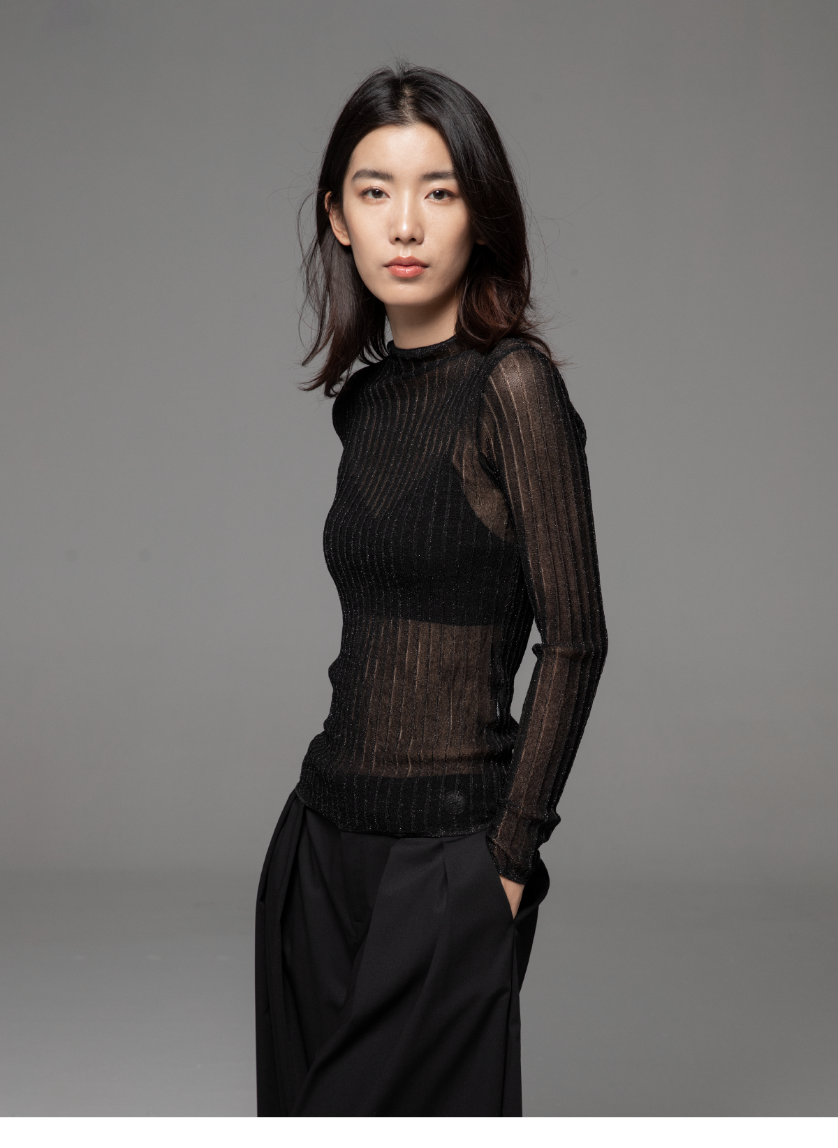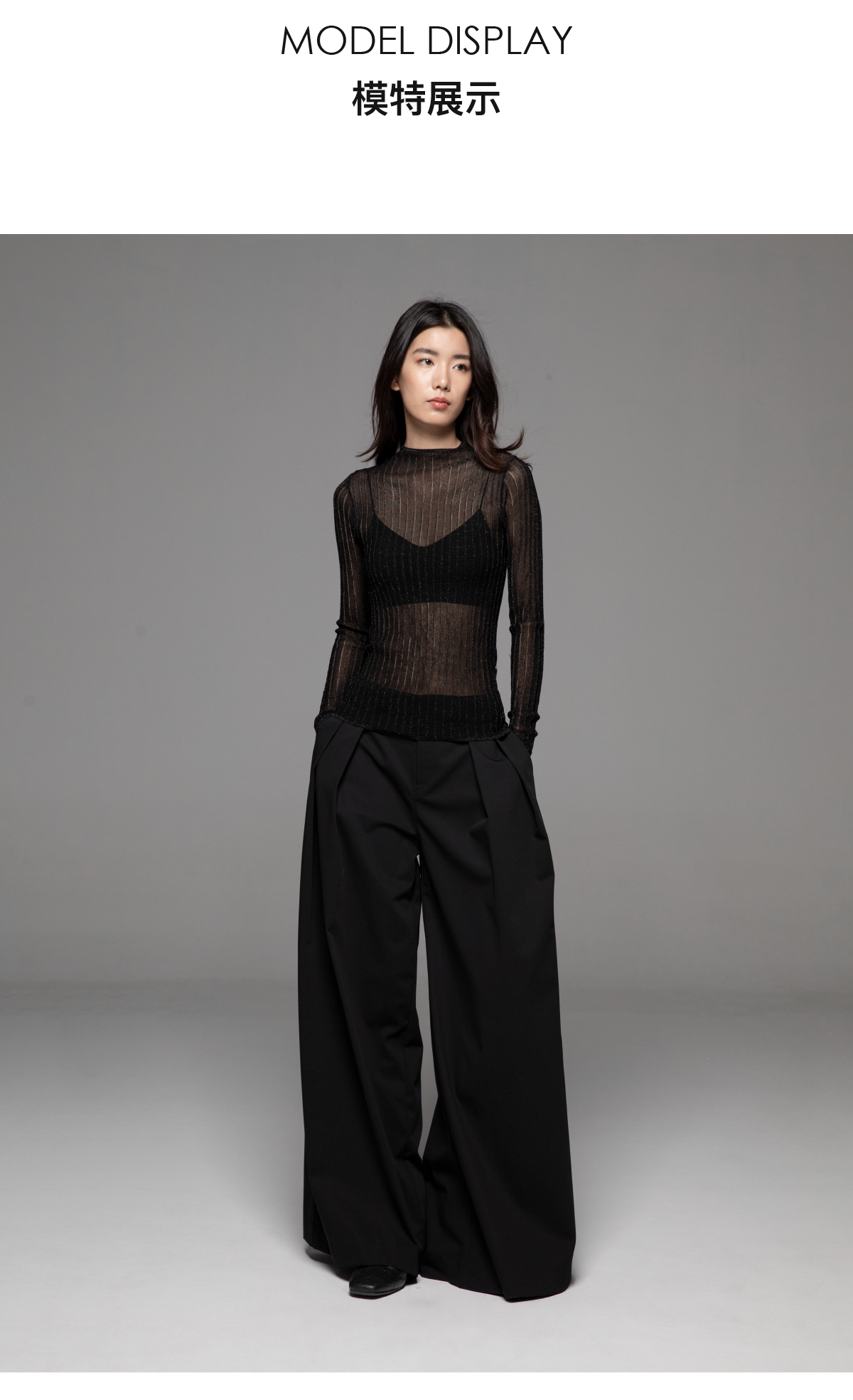 LIYIHAN2026春季黑色罩衫氣質法式上衣女透視針織衫圓領輕奢長袖