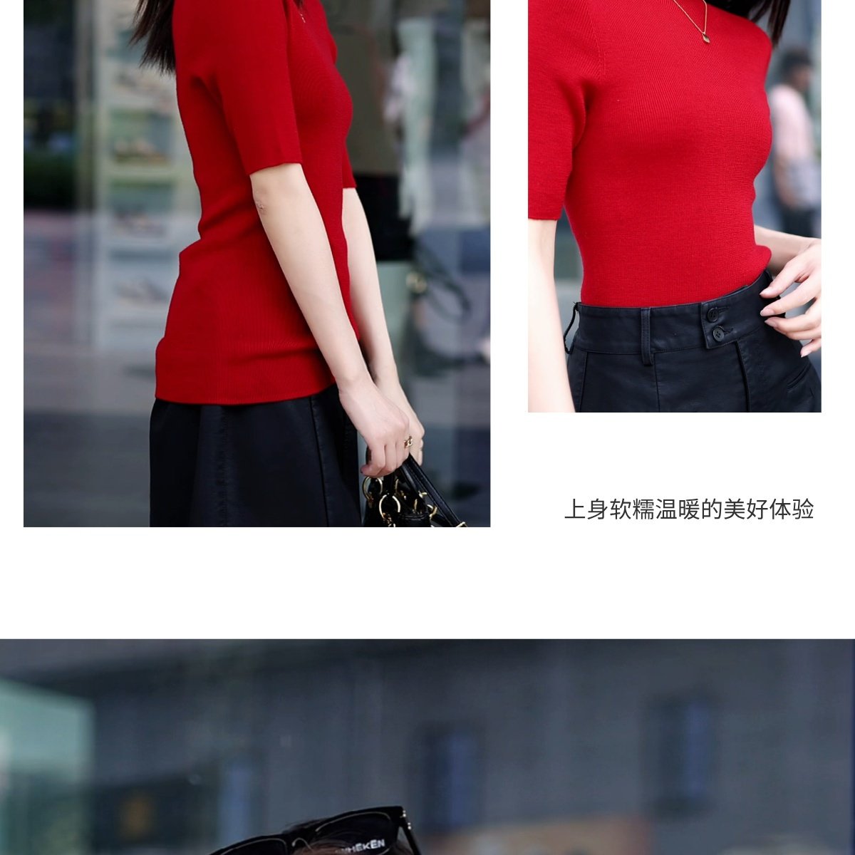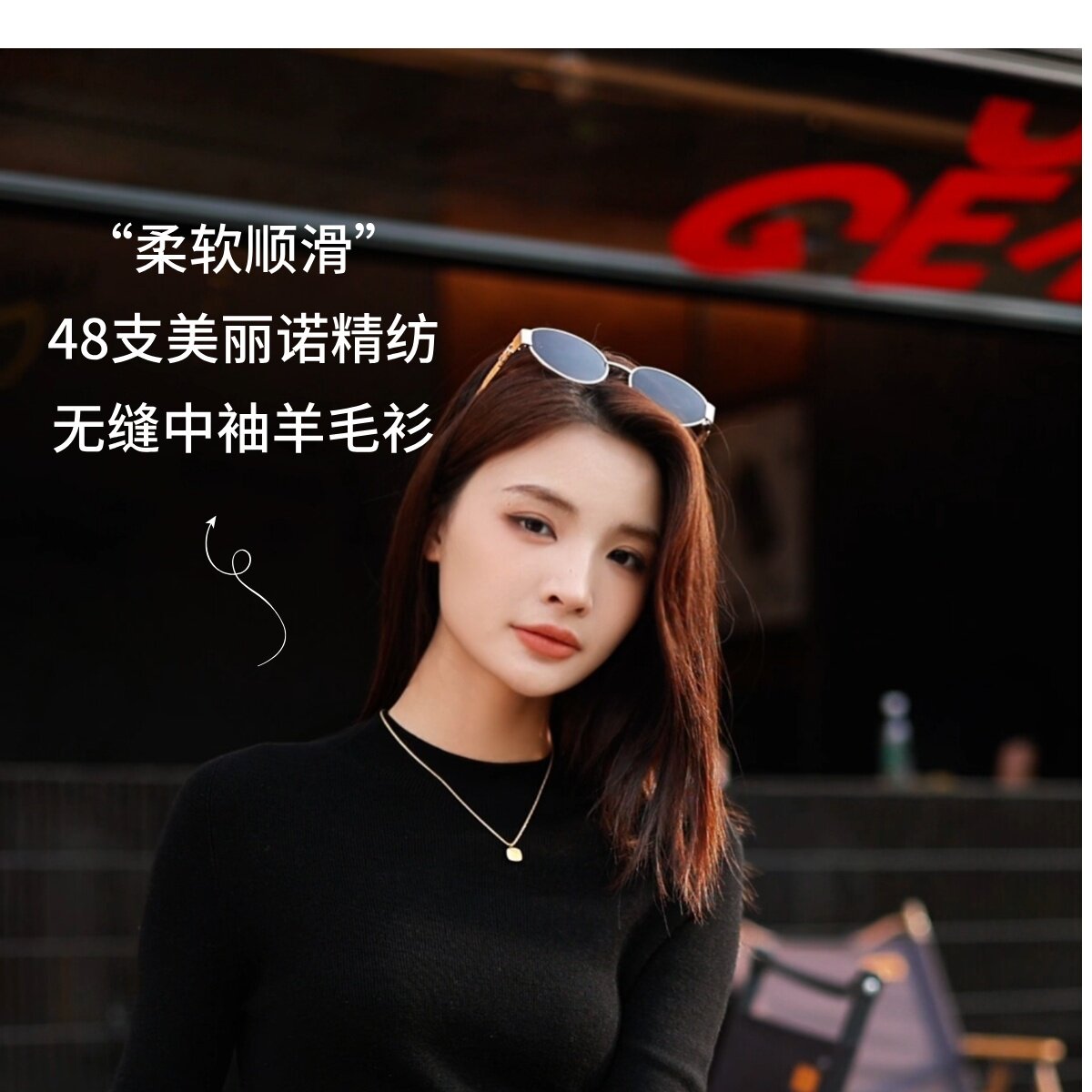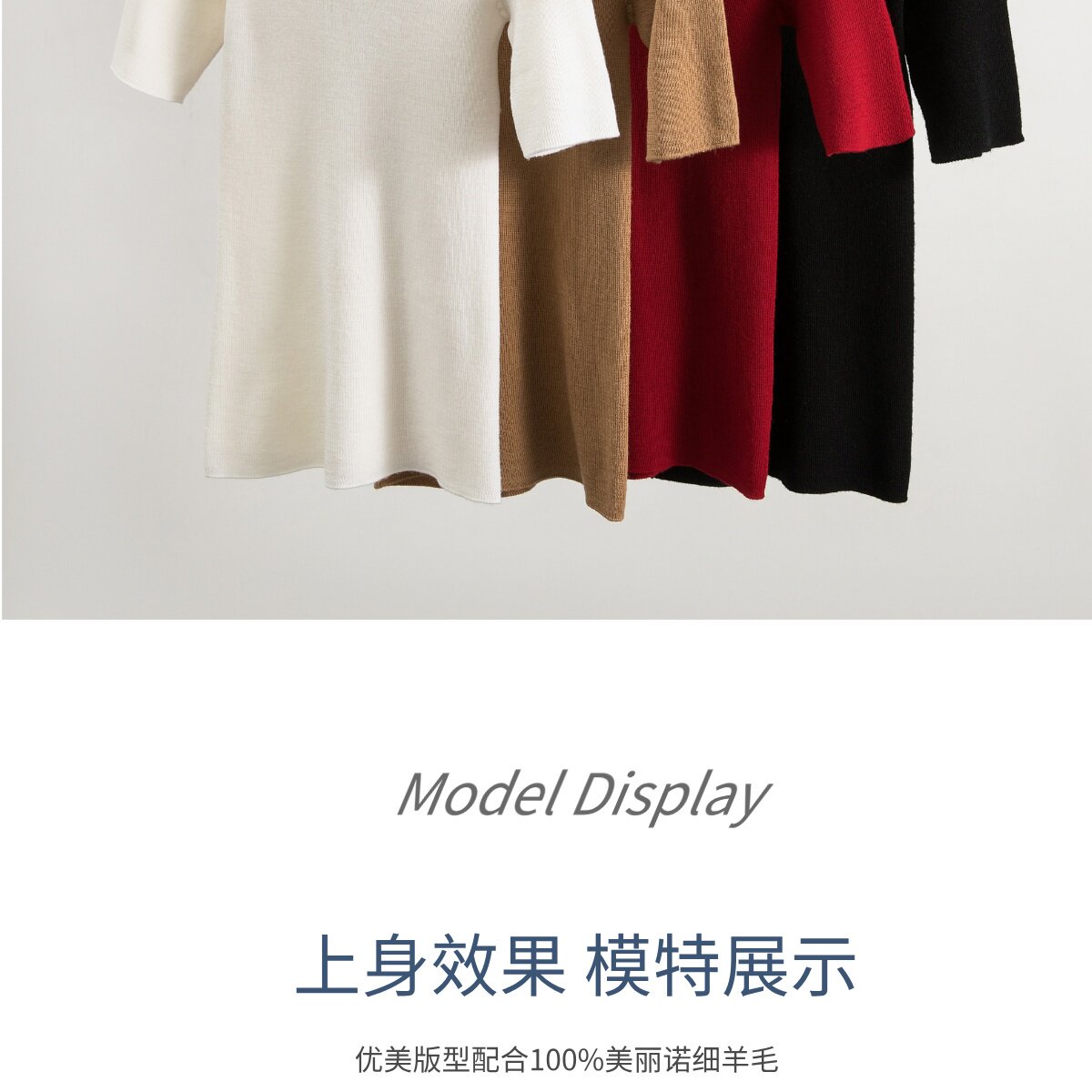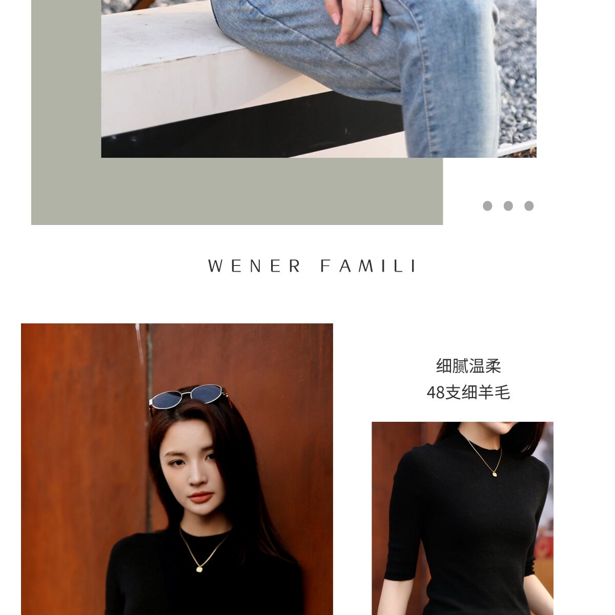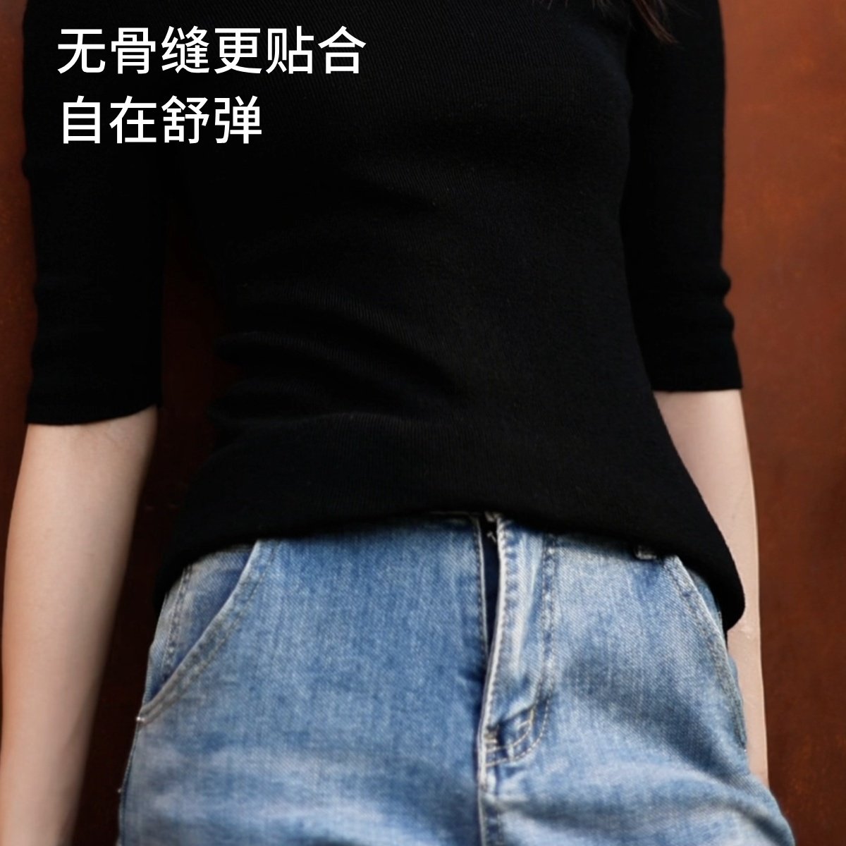 溫爾家 精紡48支美麗諾羊毛修身打底衫女半袖秋季無縫羊毛衫上衣