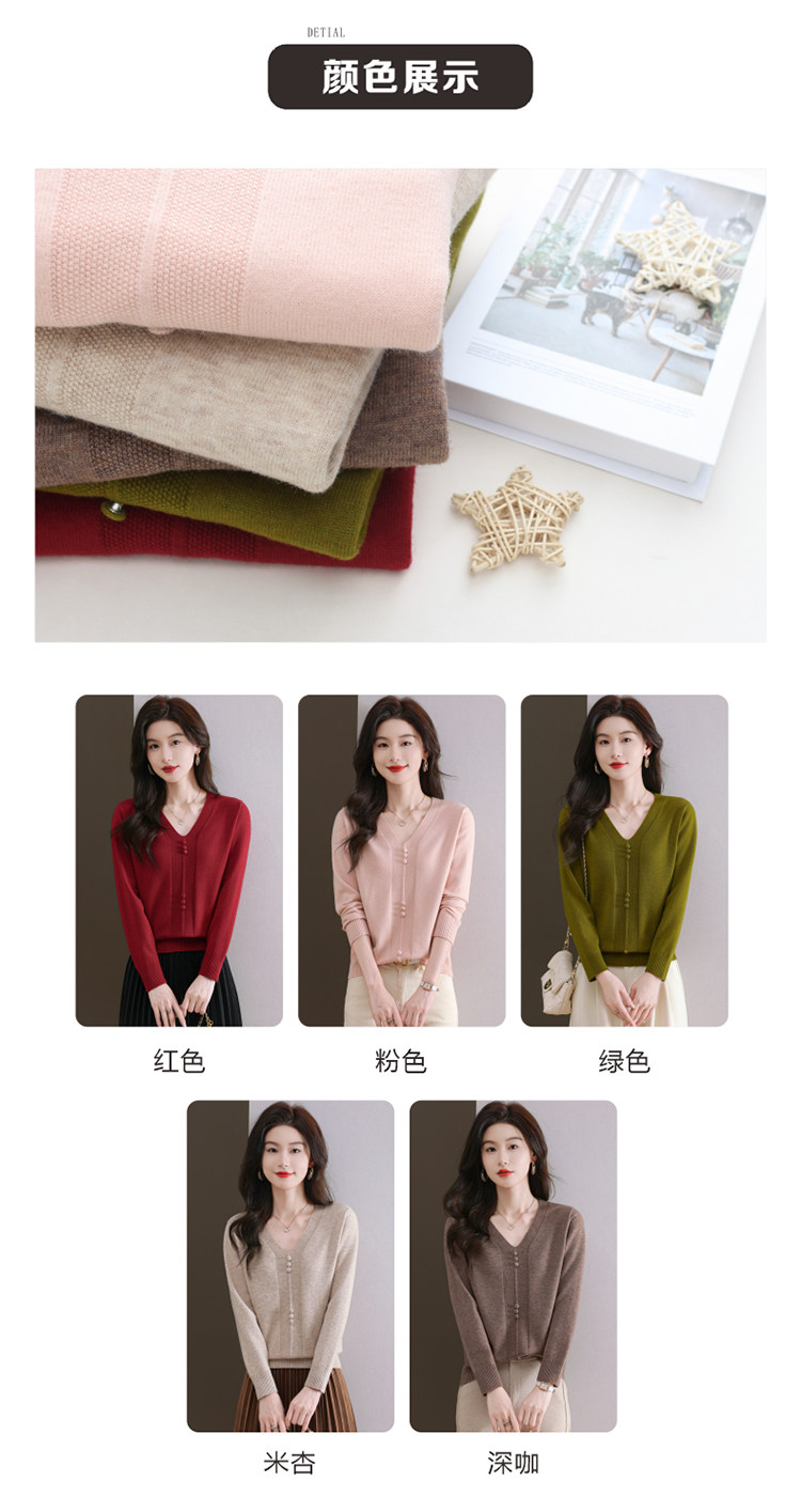 春竹世家羊毛衫女上衣春秋新款媽媽裝V領寬鬆毛衣針織內搭打底衫
