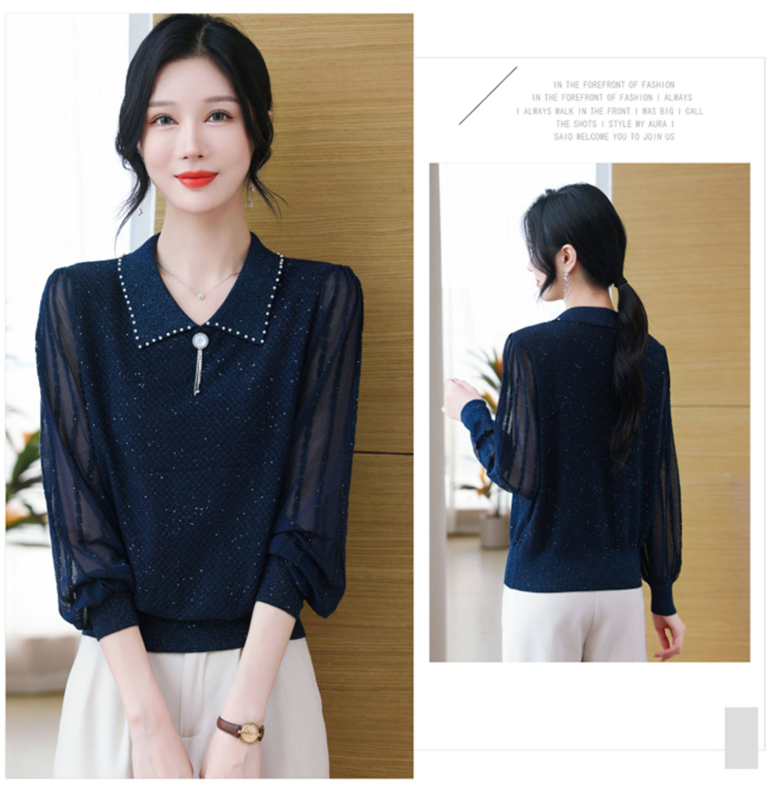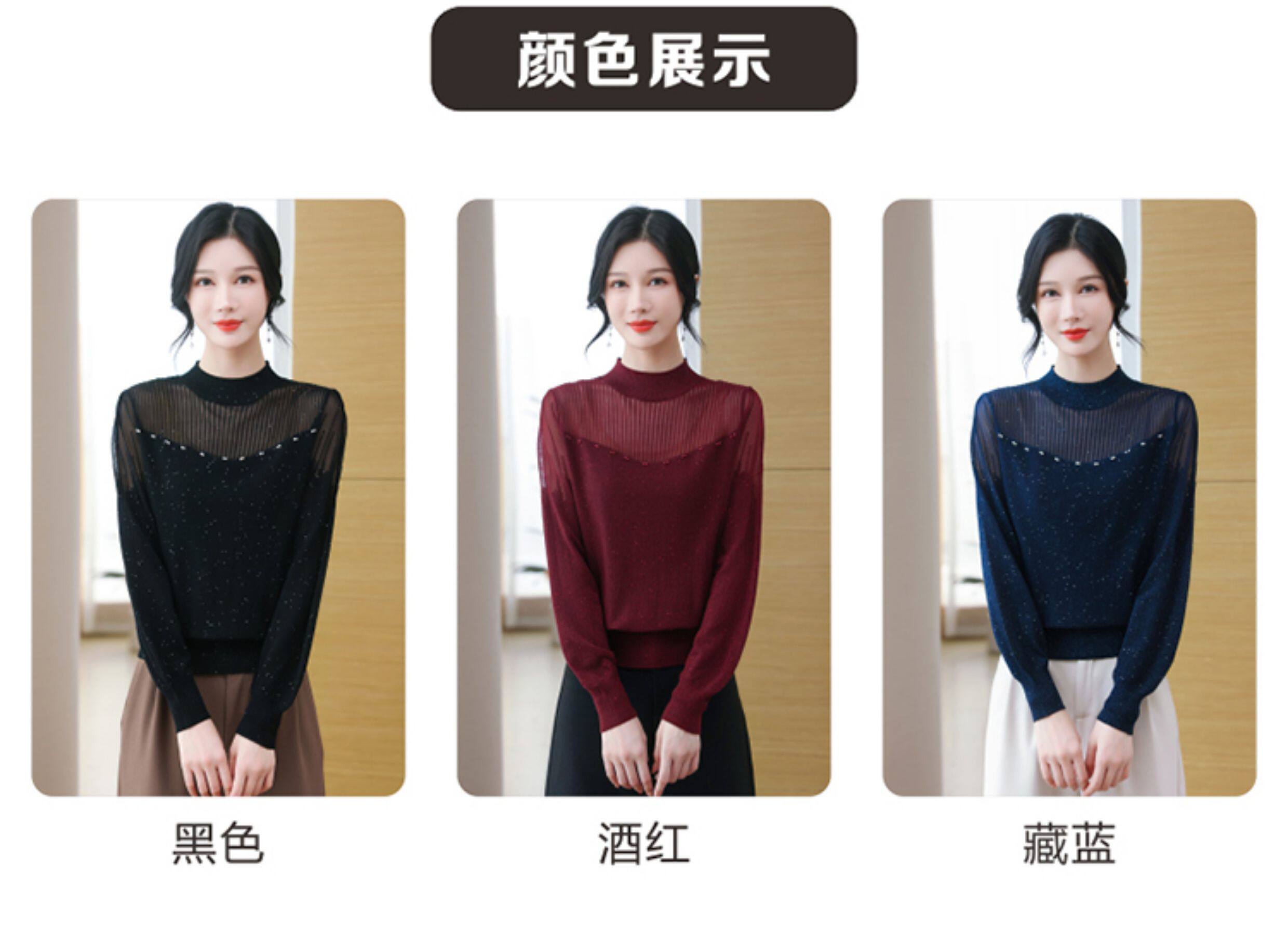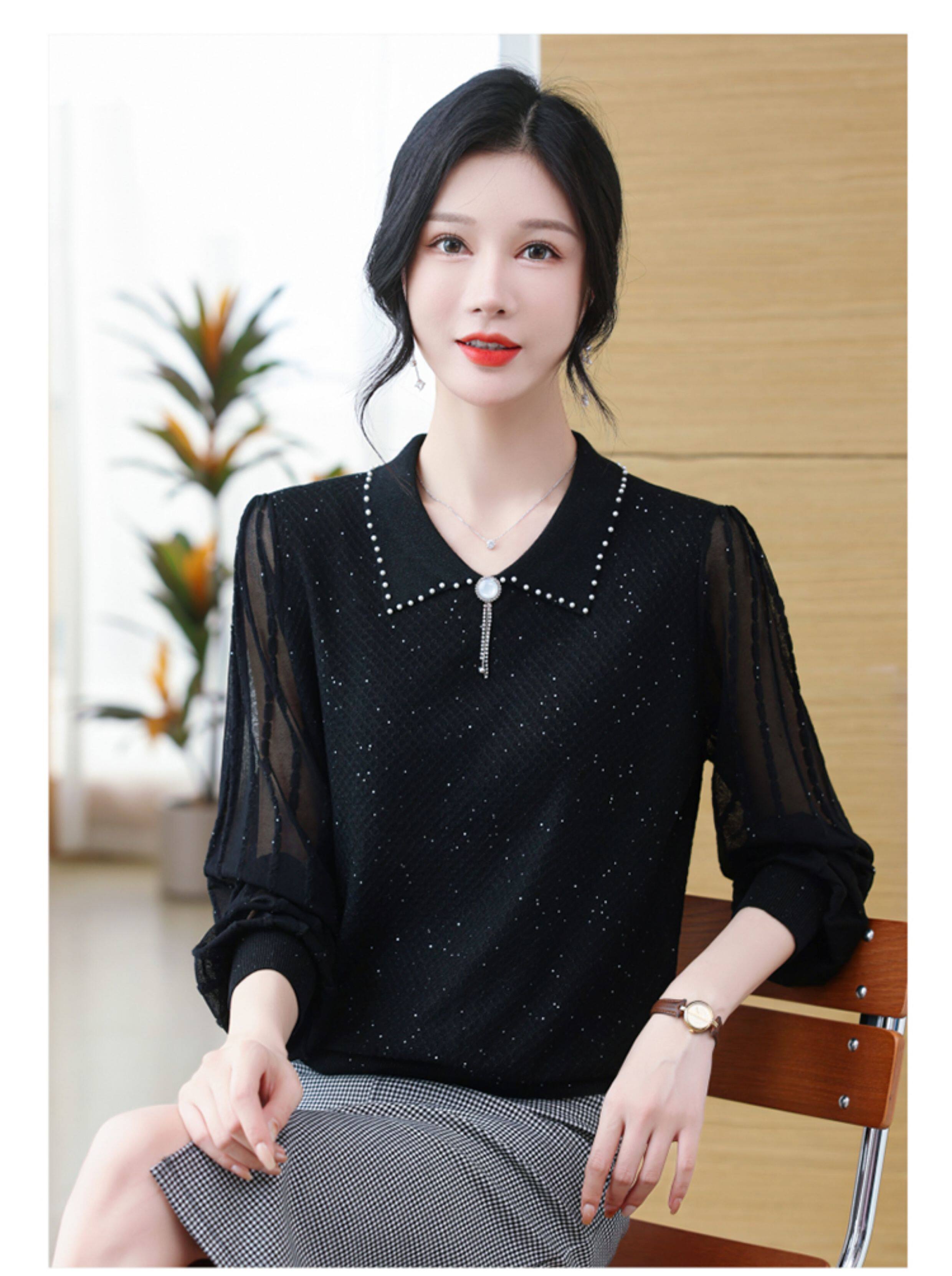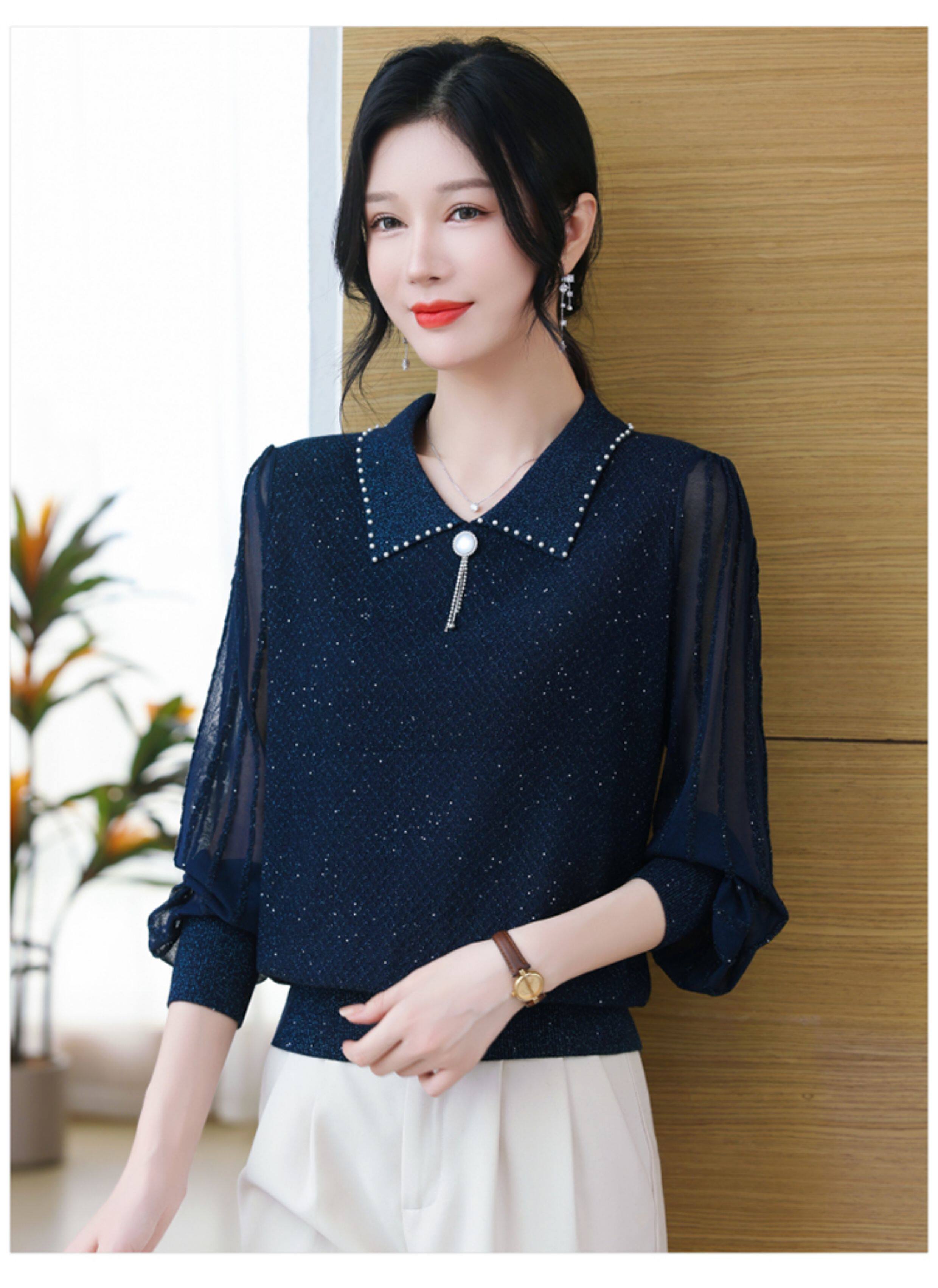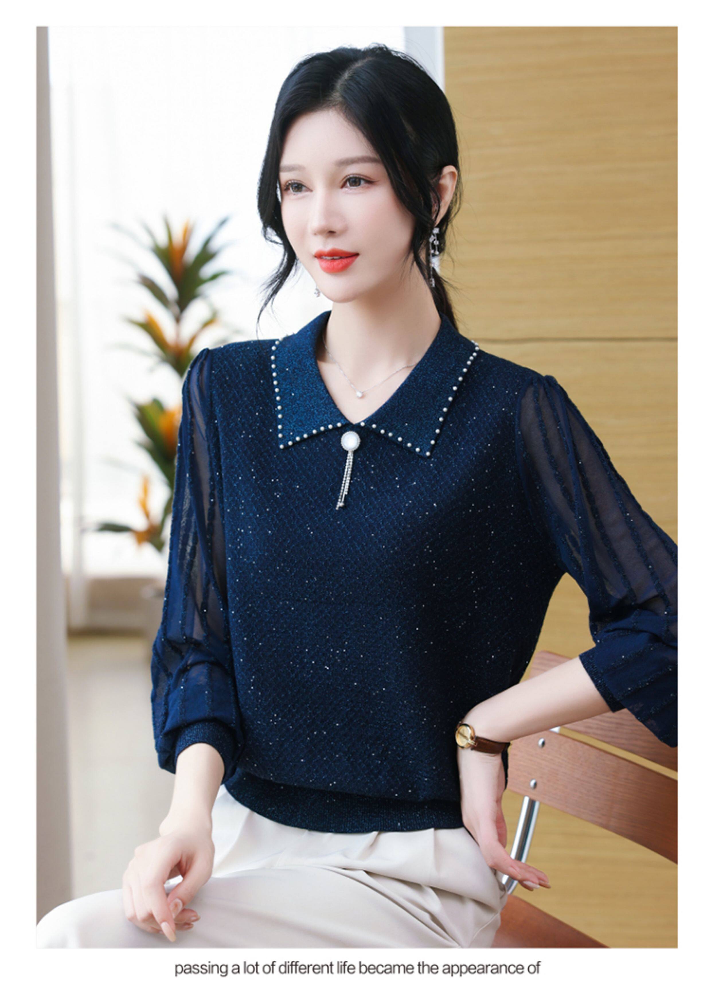繙領羊毛針織衫長袖上衣女春裝2026新款洋氣媽媽薄款紗袖打底小衫