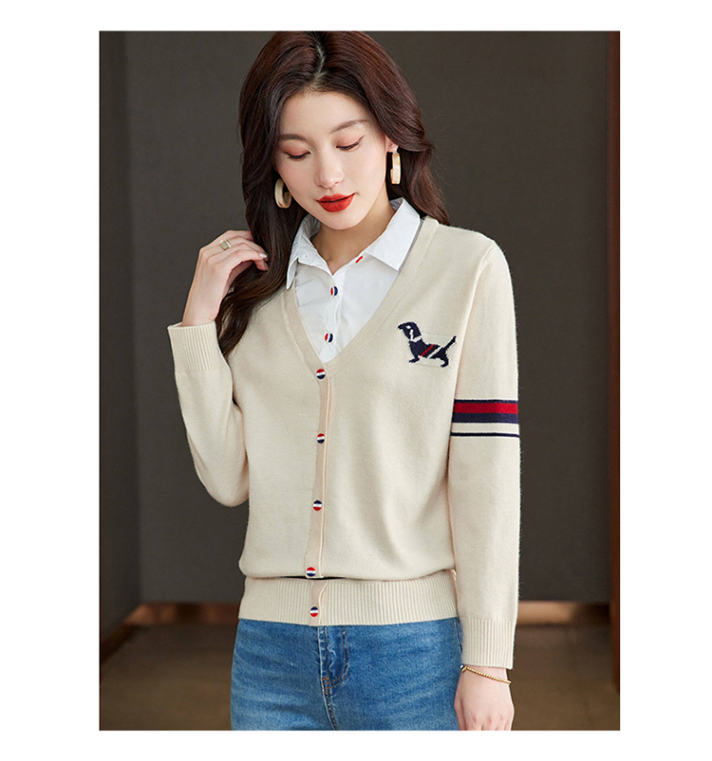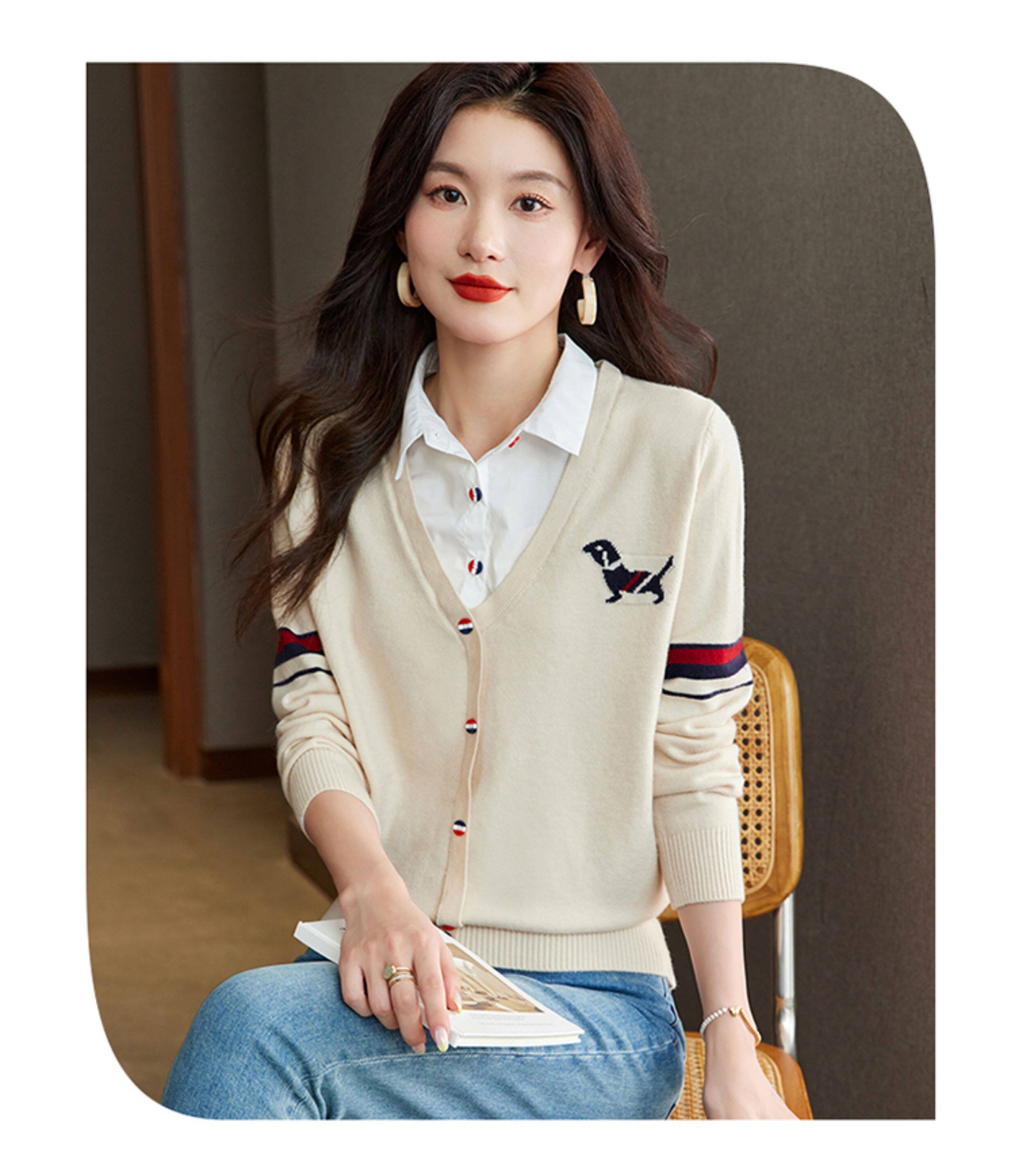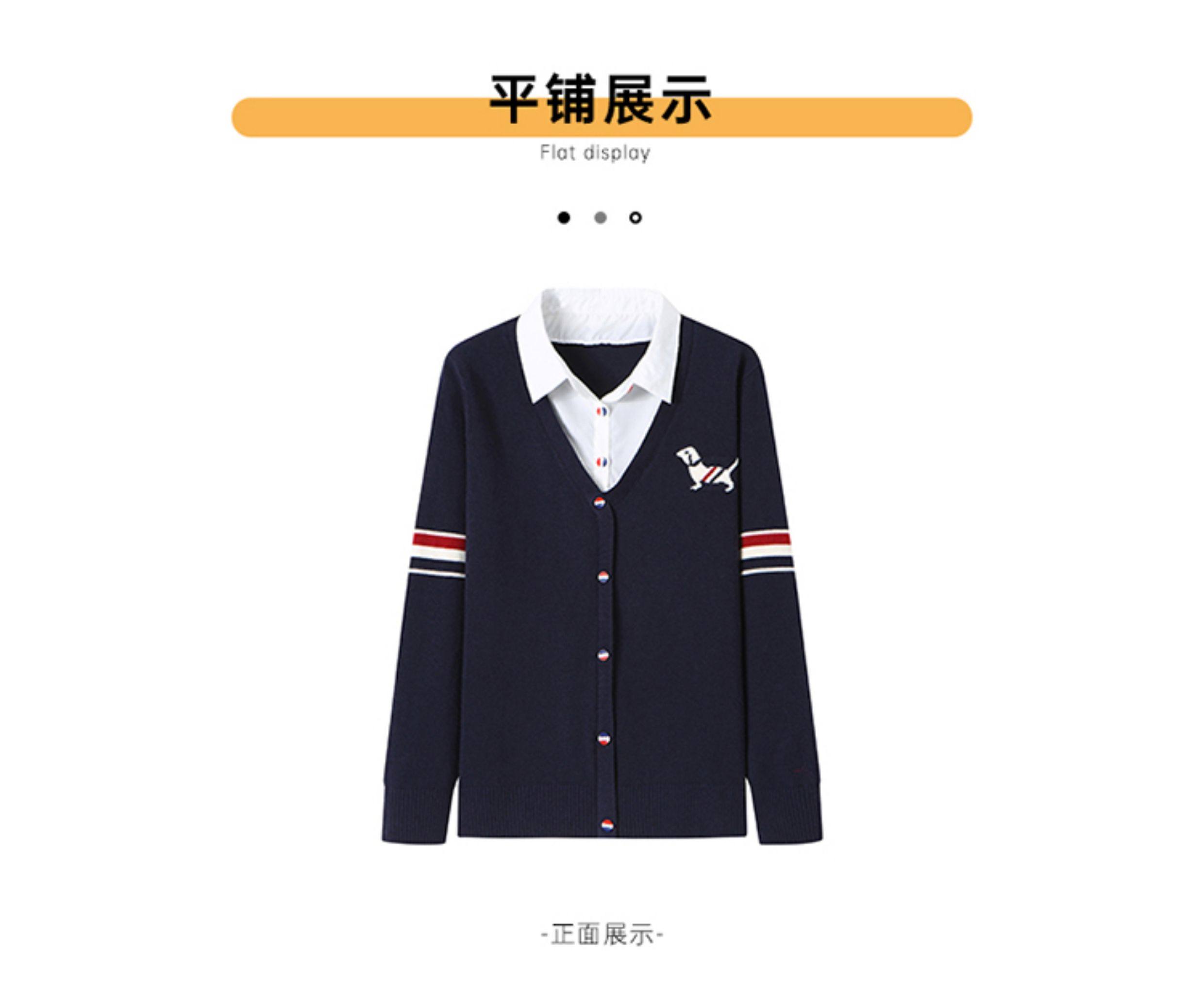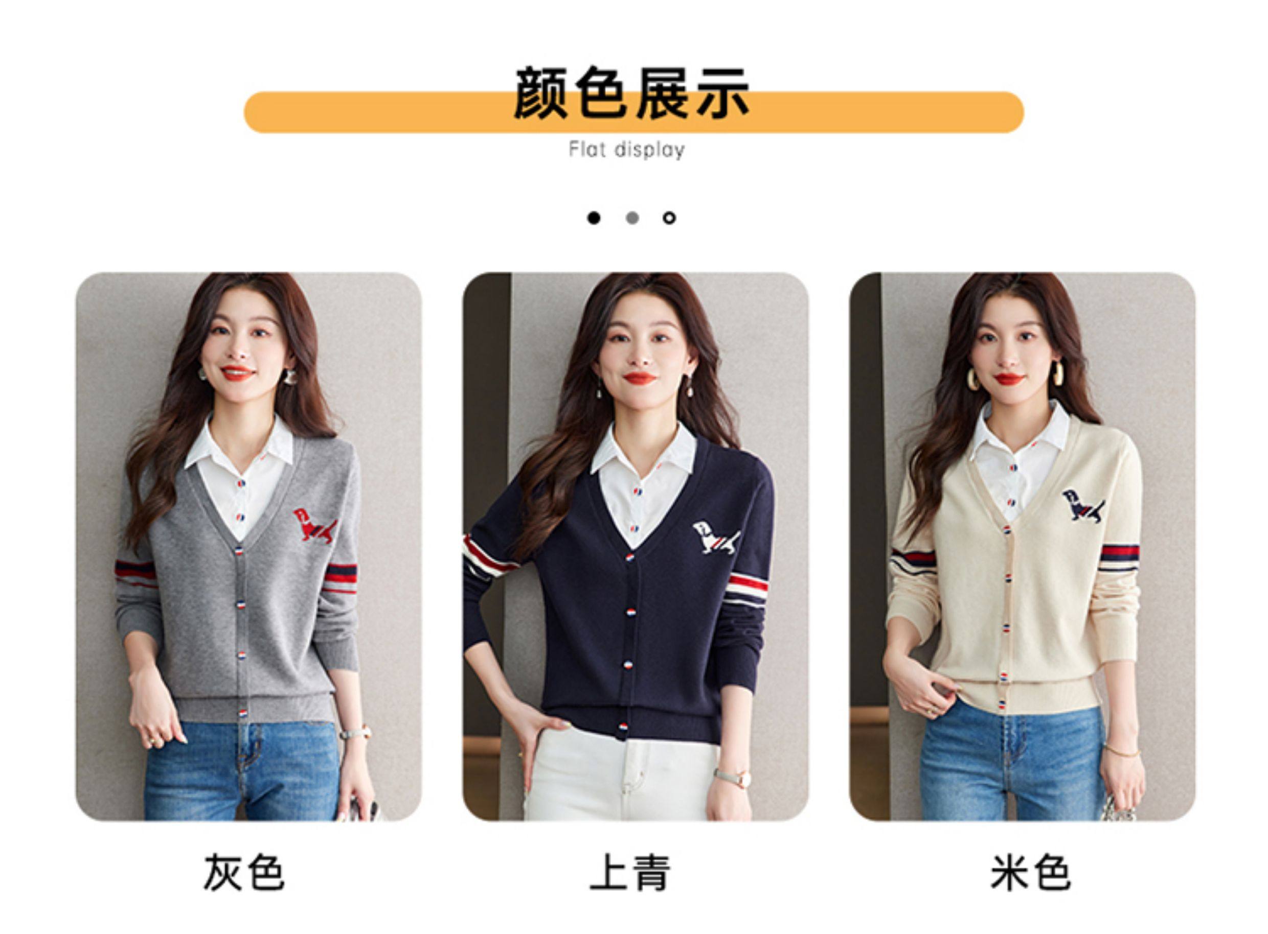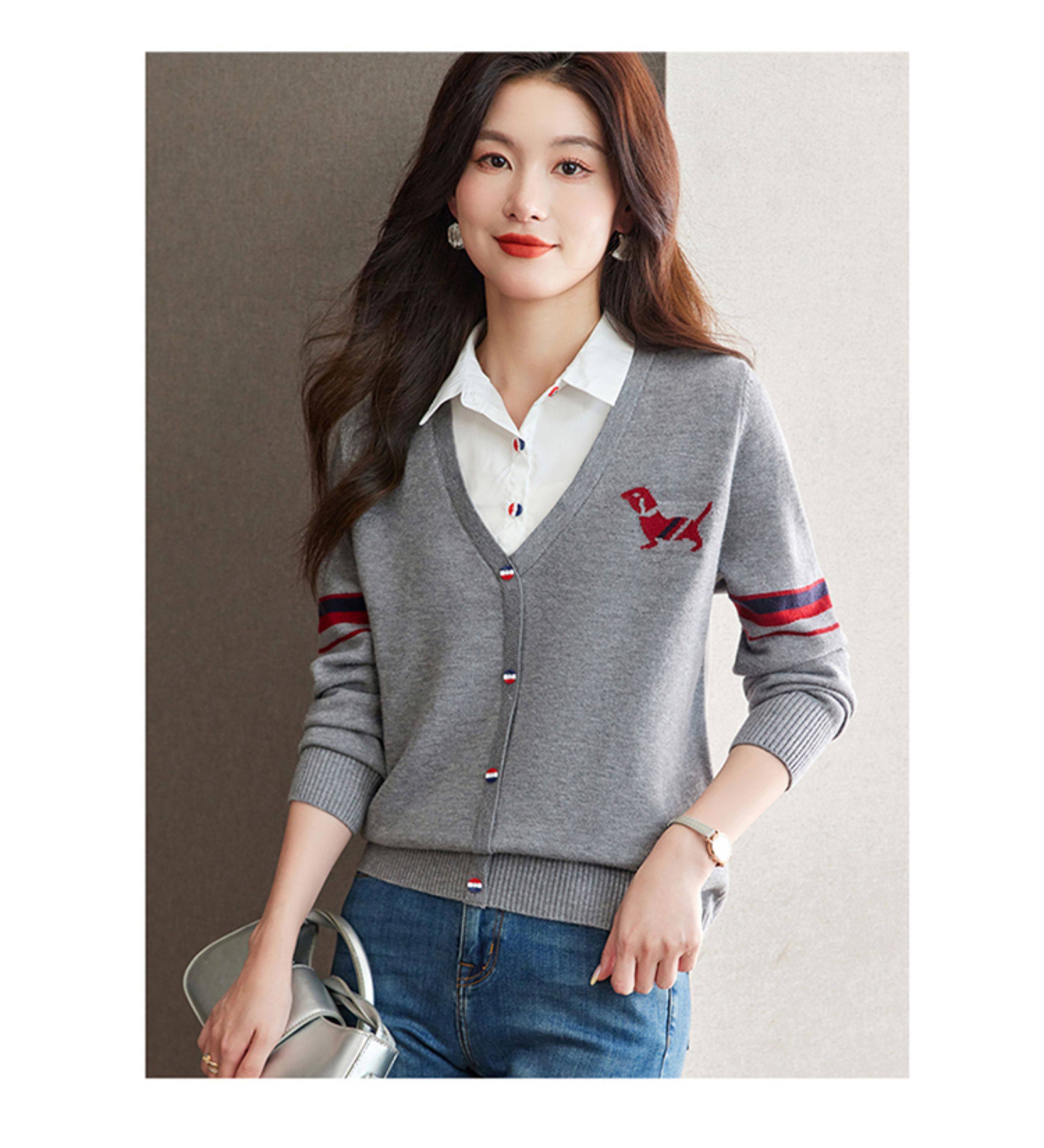 恒源祥彩羊假兩件羊毛衫女秋冬襯衫領毛衣條紋洋氣針織打底衫上衣