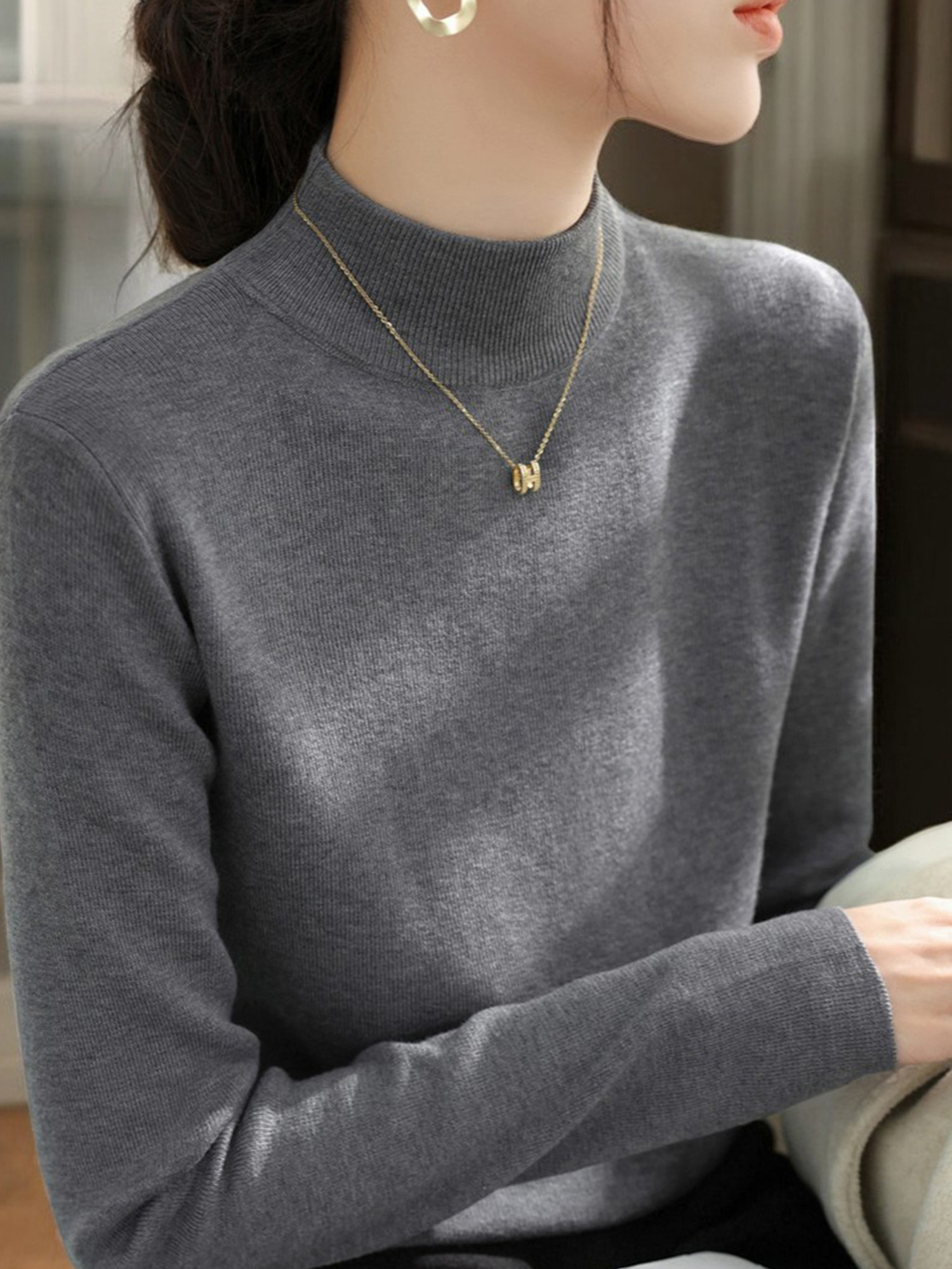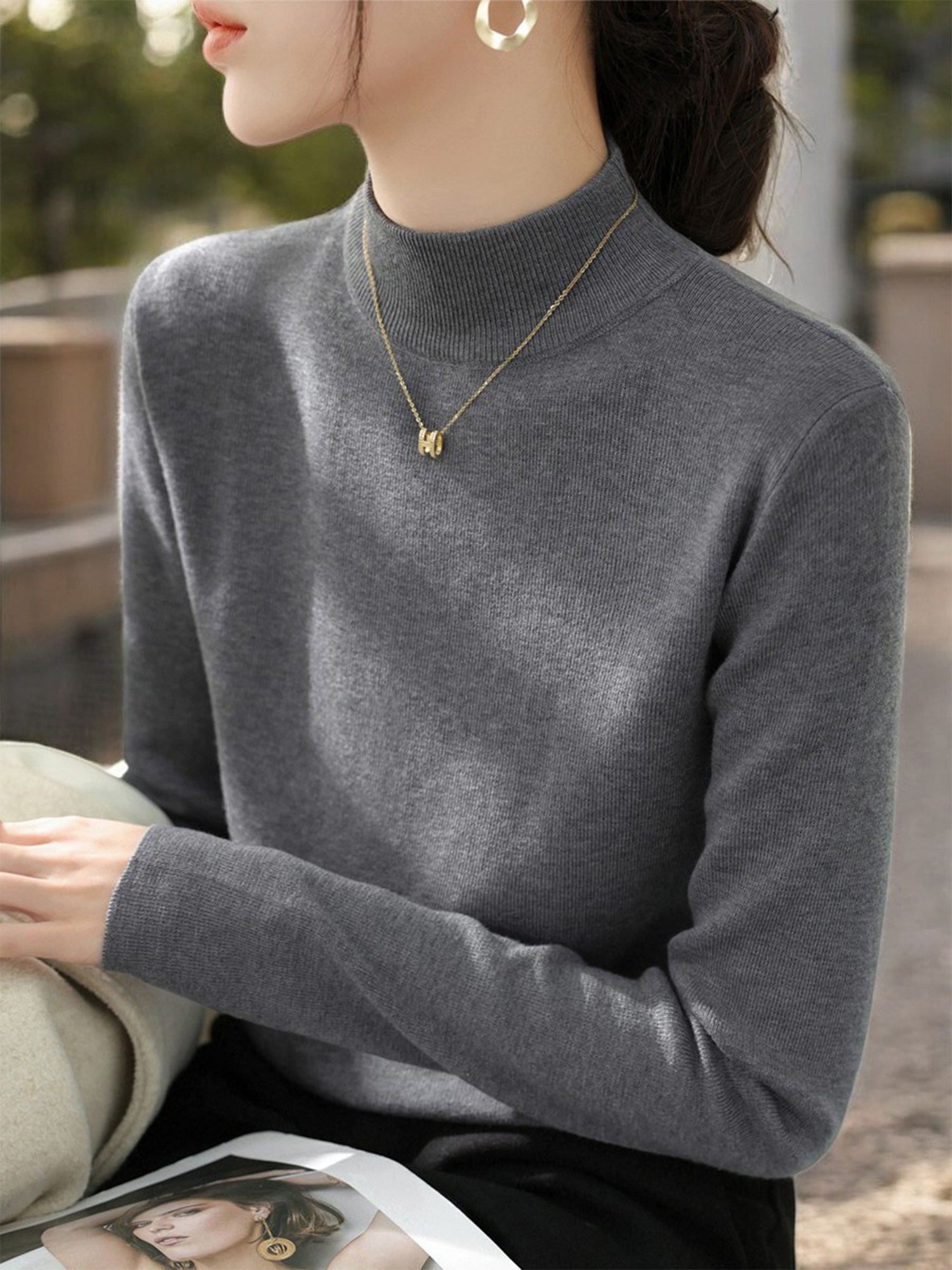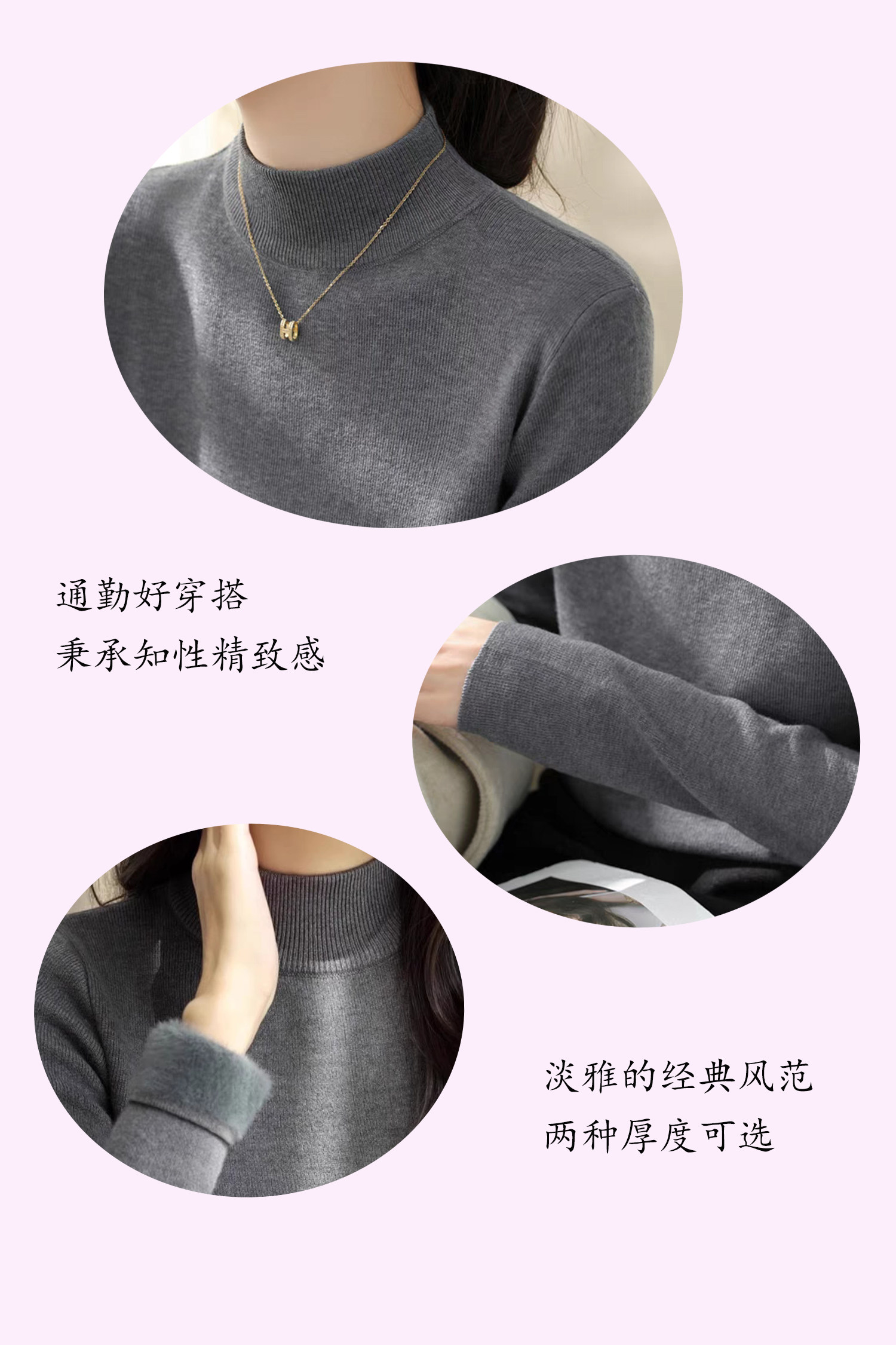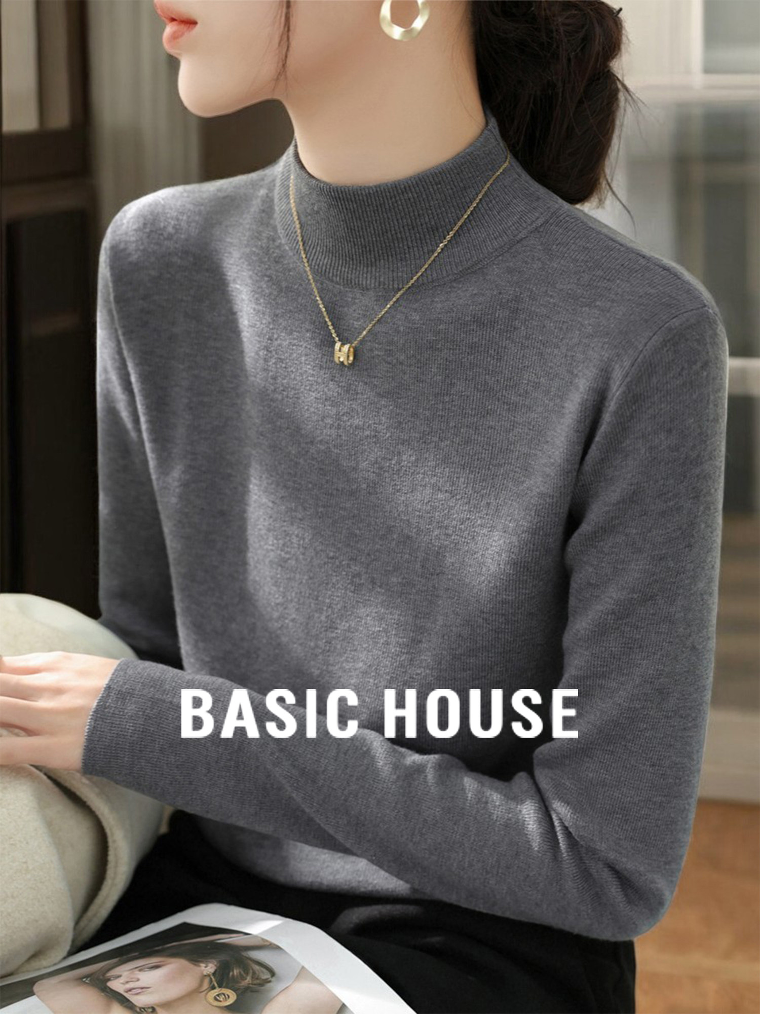 Basic House/百家好半高領針織打底衫女士秋季格雷系內搭灰色毛衣