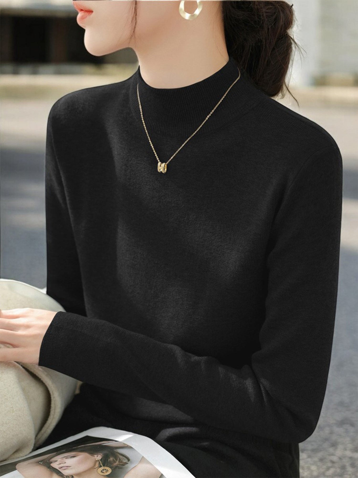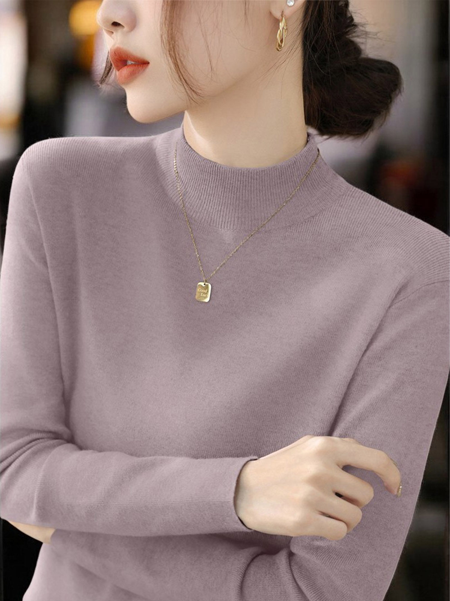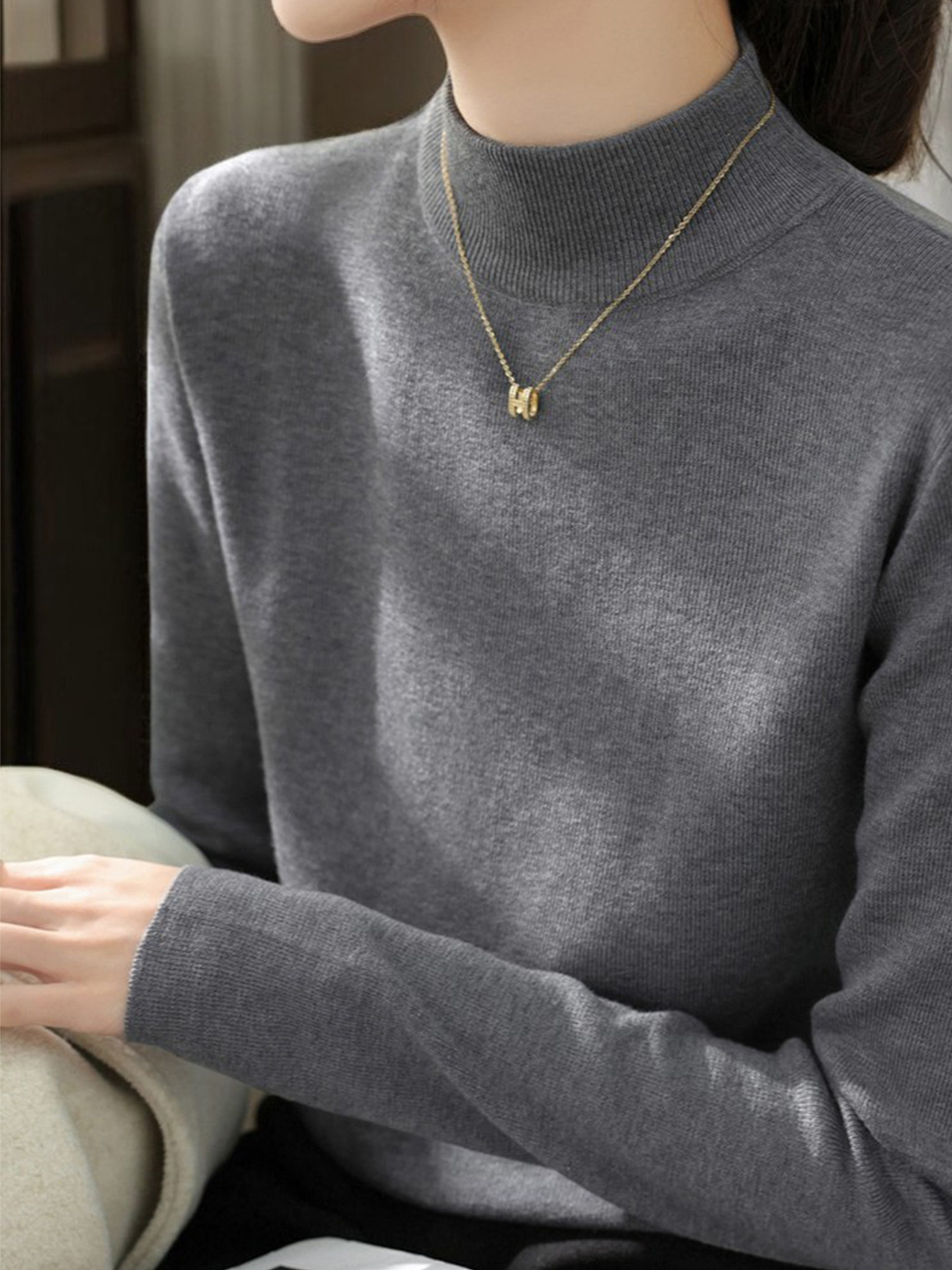 Basic House/百家好半高領針織打底衫女士秋季格雷系內搭灰色毛衣