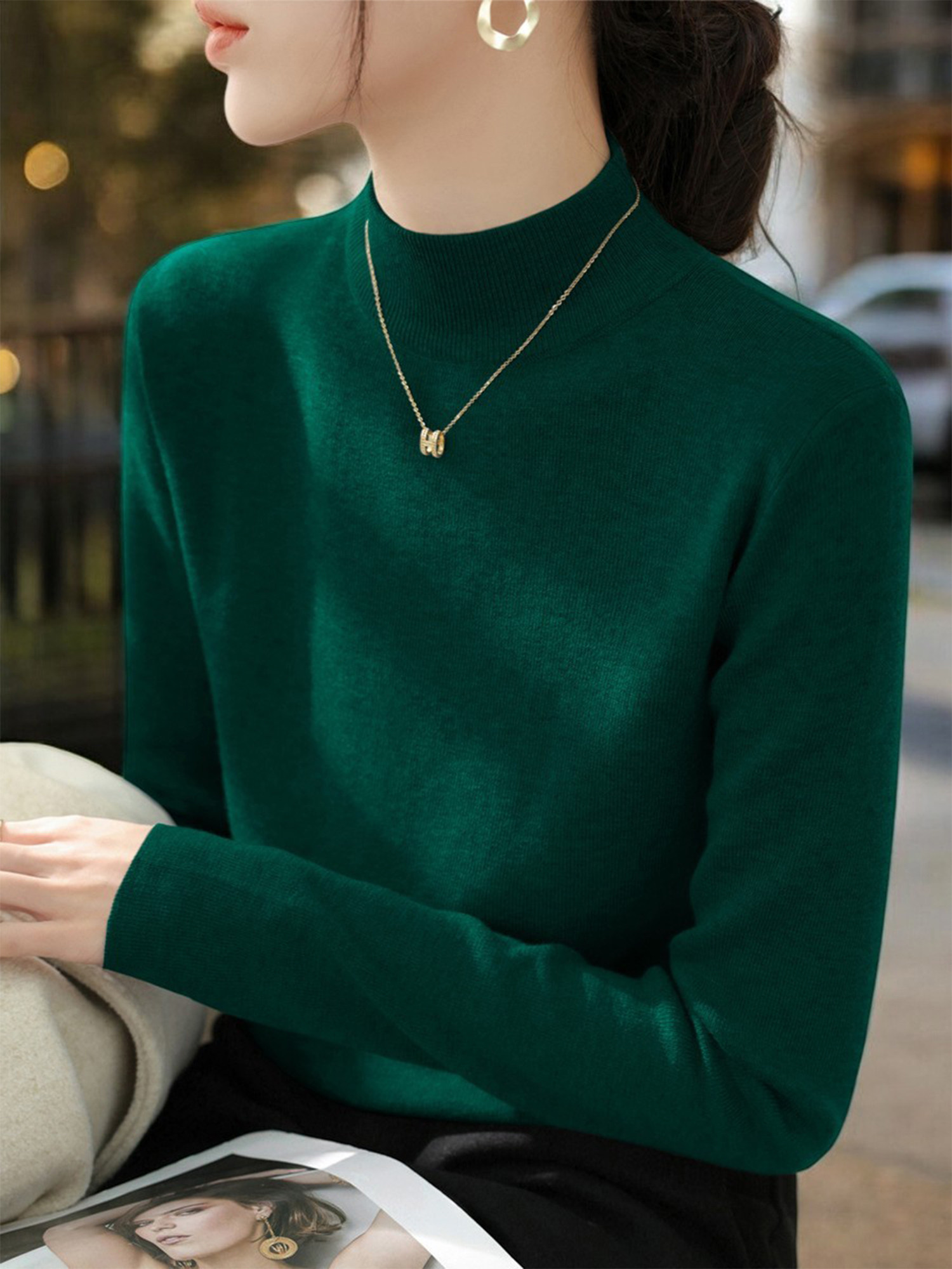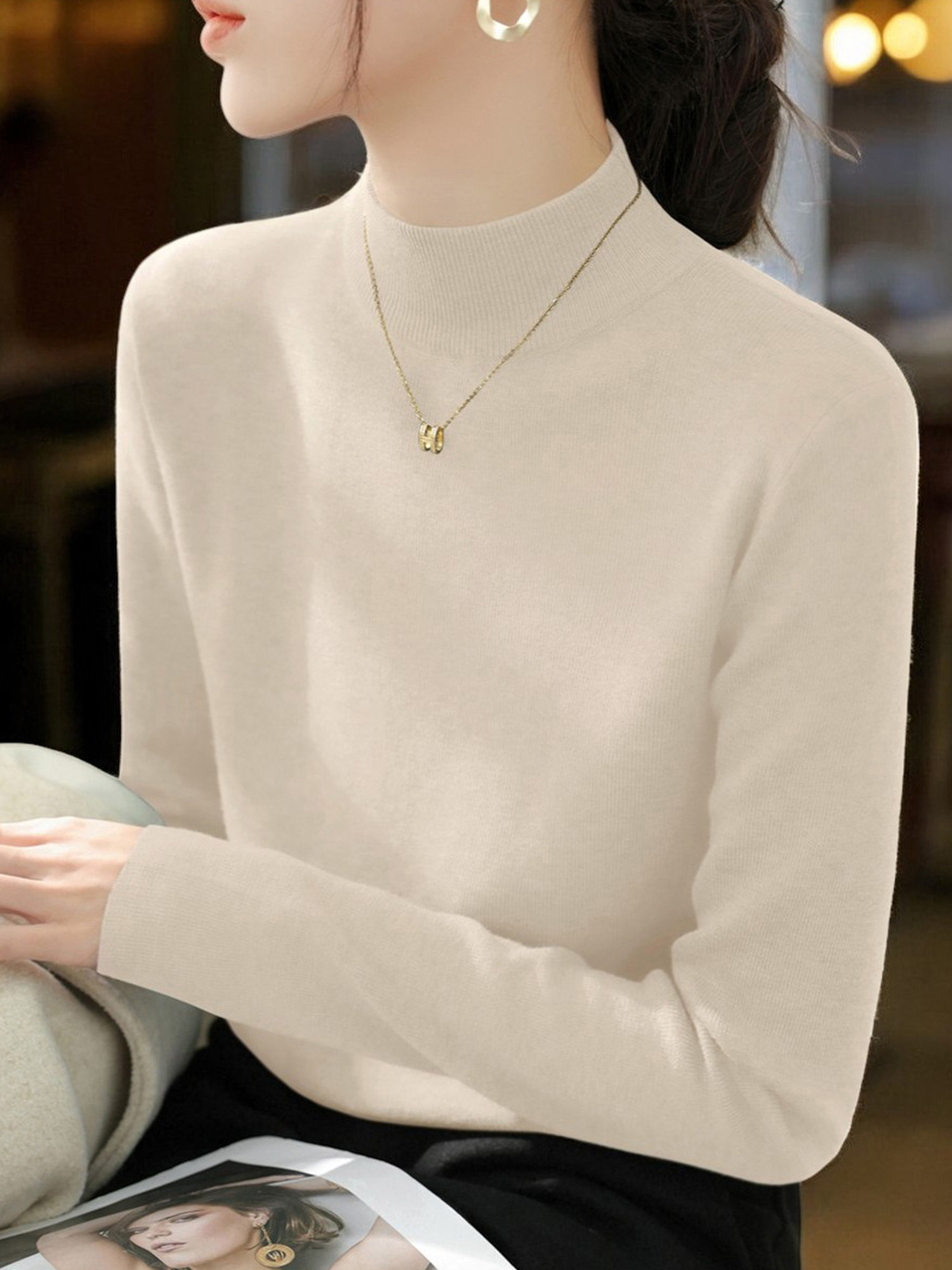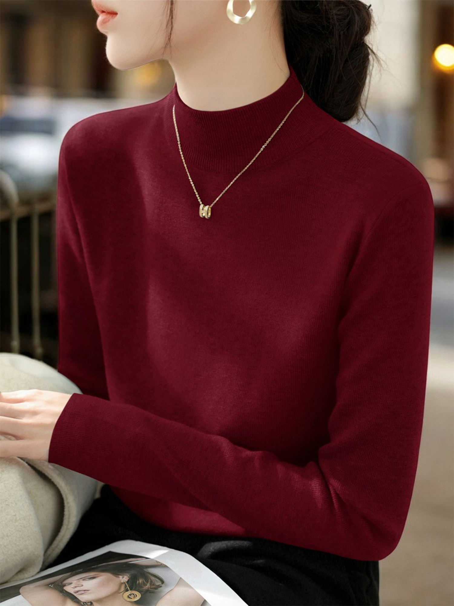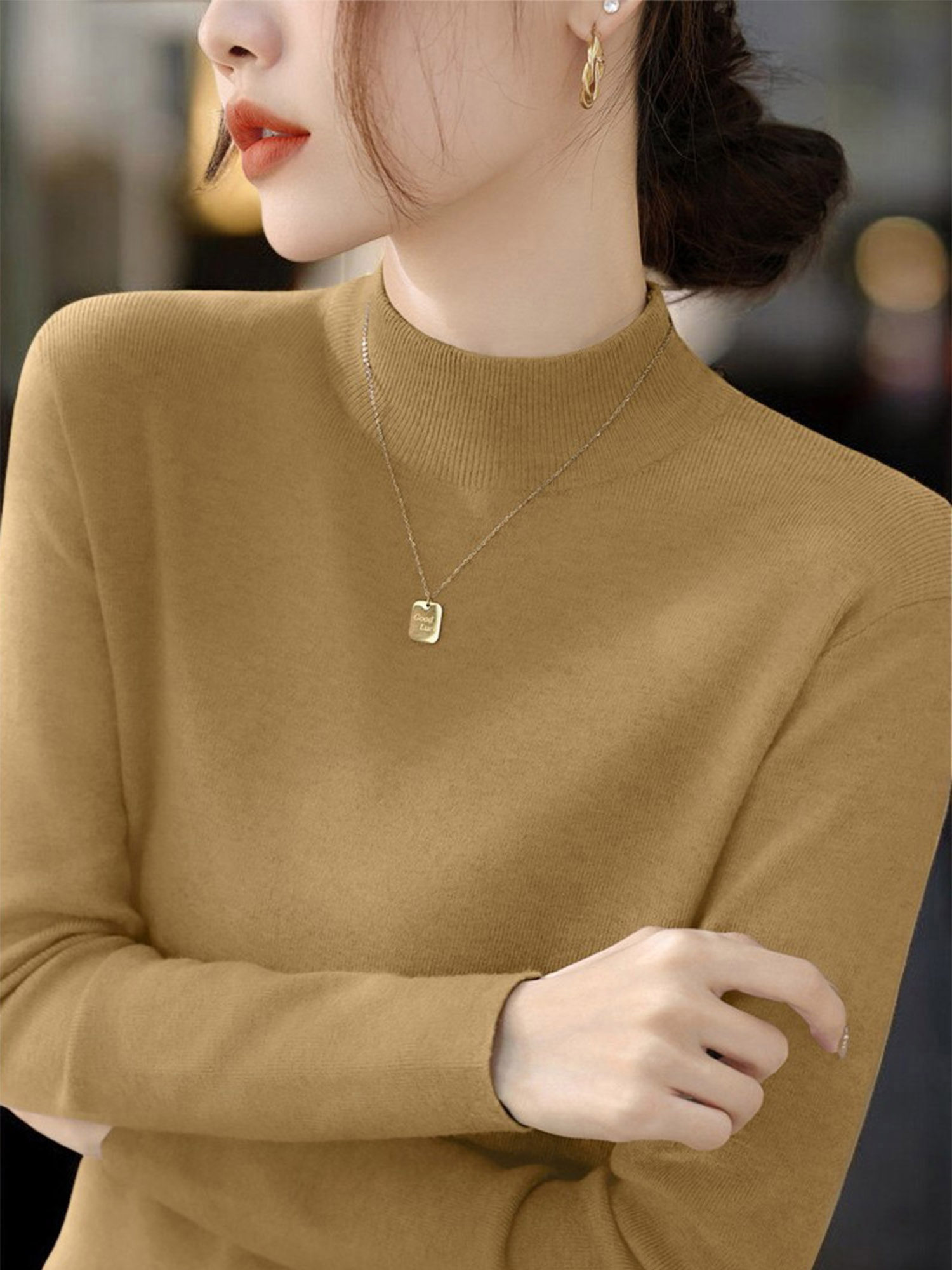 Basic House/百家好半高領針織打底衫女士秋季格雷系內搭灰色毛衣