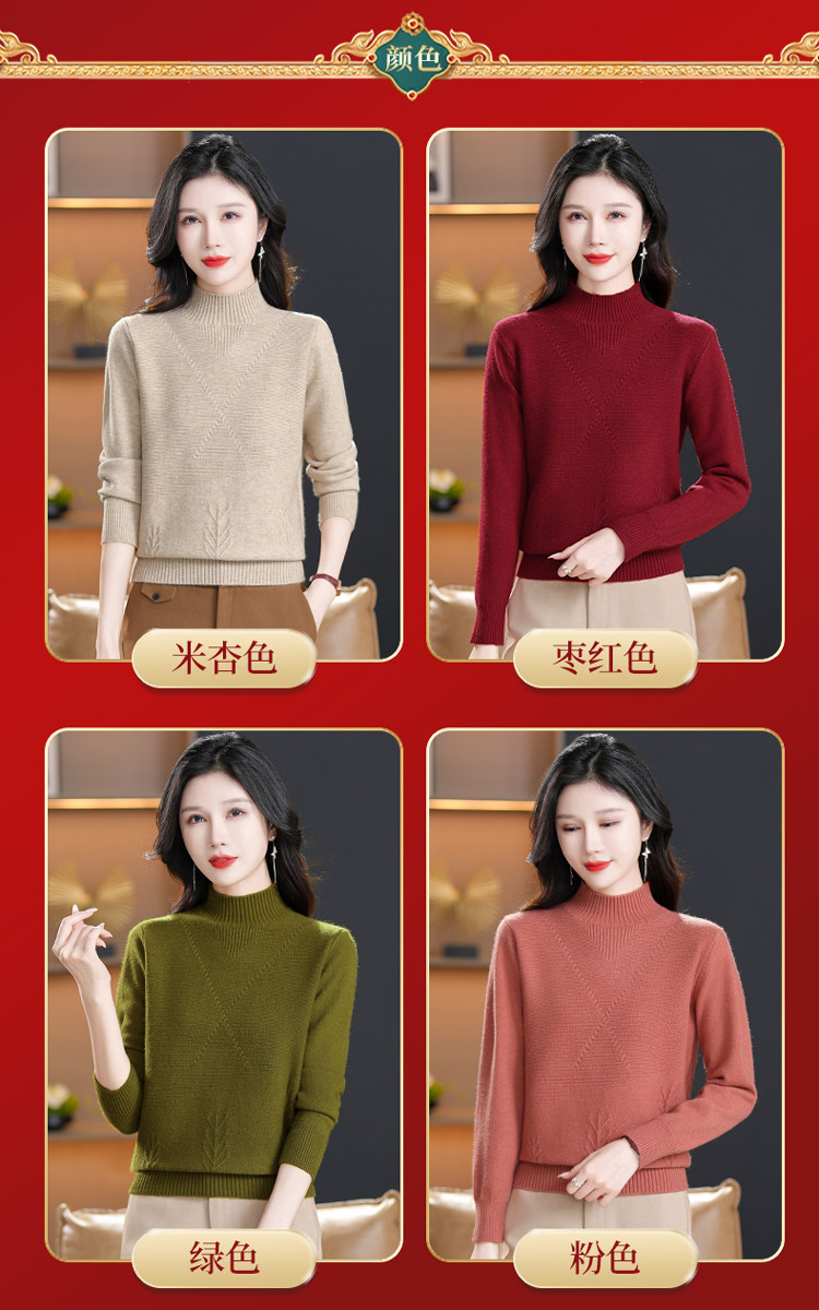春竹世家半高領毛衣女款2025新款冬季加厚羊毛衫內搭針織打底衫女