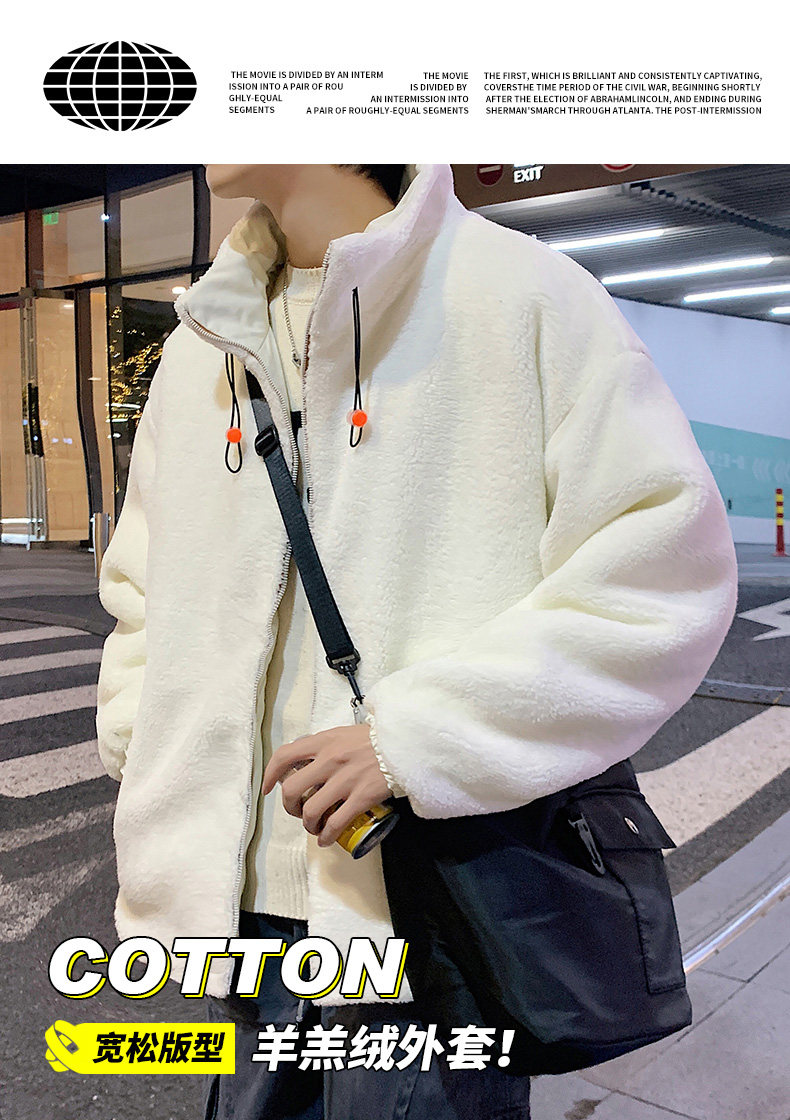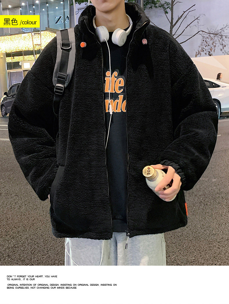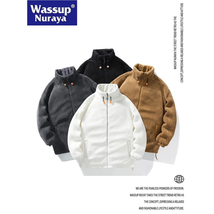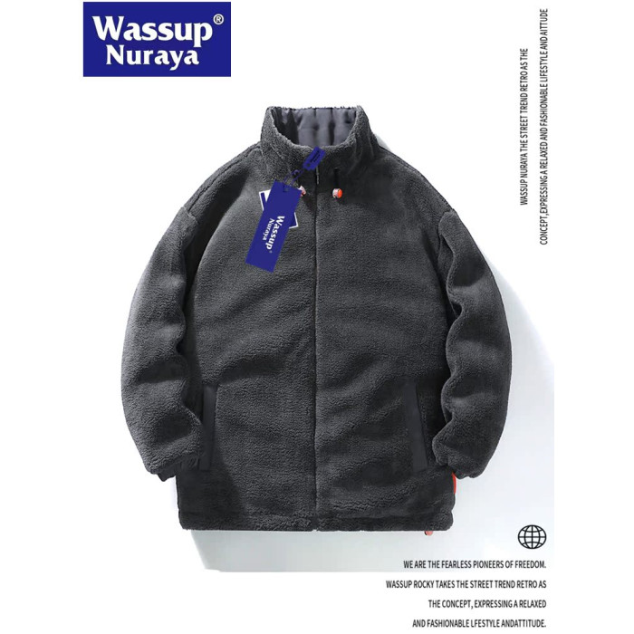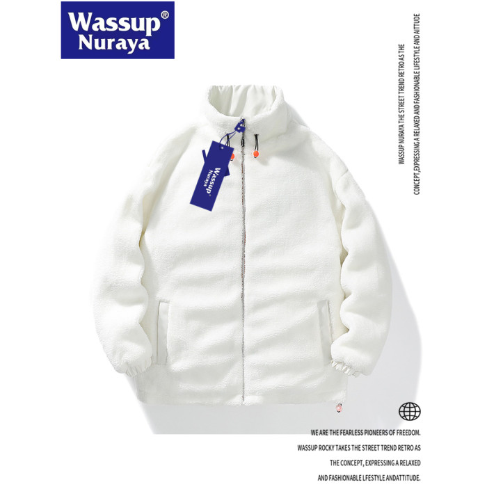 WASSUP Nuraya潮牌羊羔絨外套男生冬季加厚棉衣青少年情侶羊羔毛