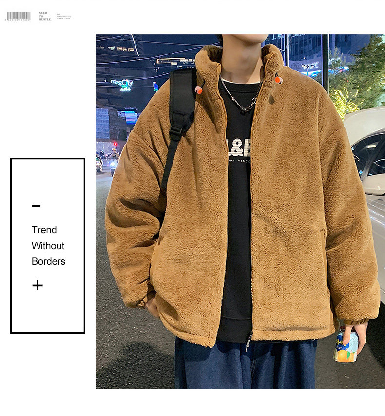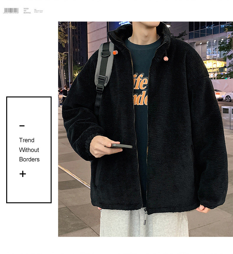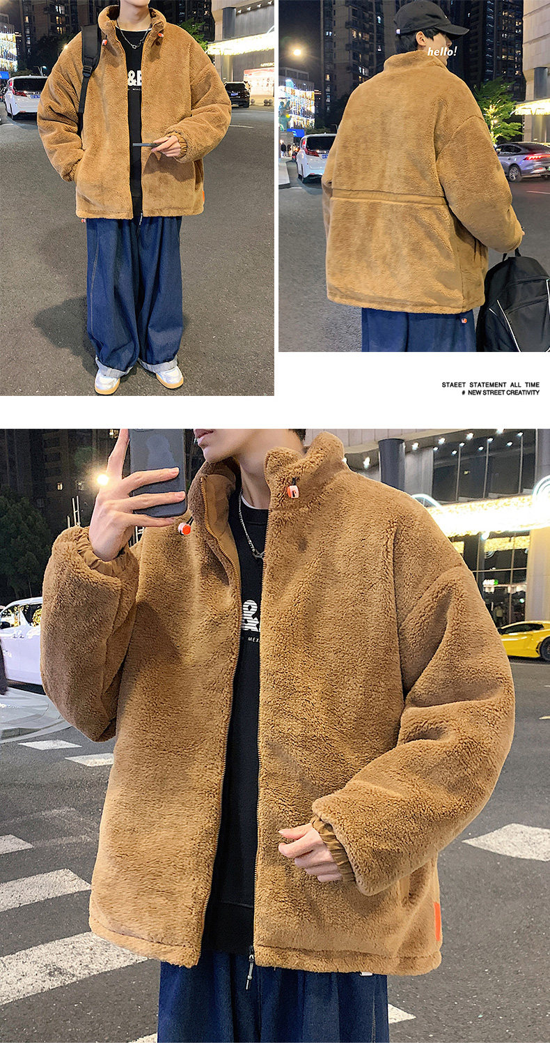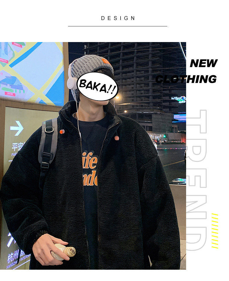 WASSUP Nuraya潮牌羊羔絨外套男生冬季加厚棉衣青少年情侶羊羔毛