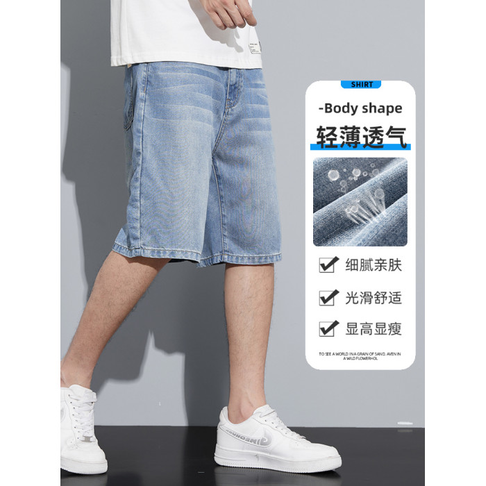冰絲牛仔短褲男士夏季薄款2025新款寬松直筒5分休閒天絲五分中褲