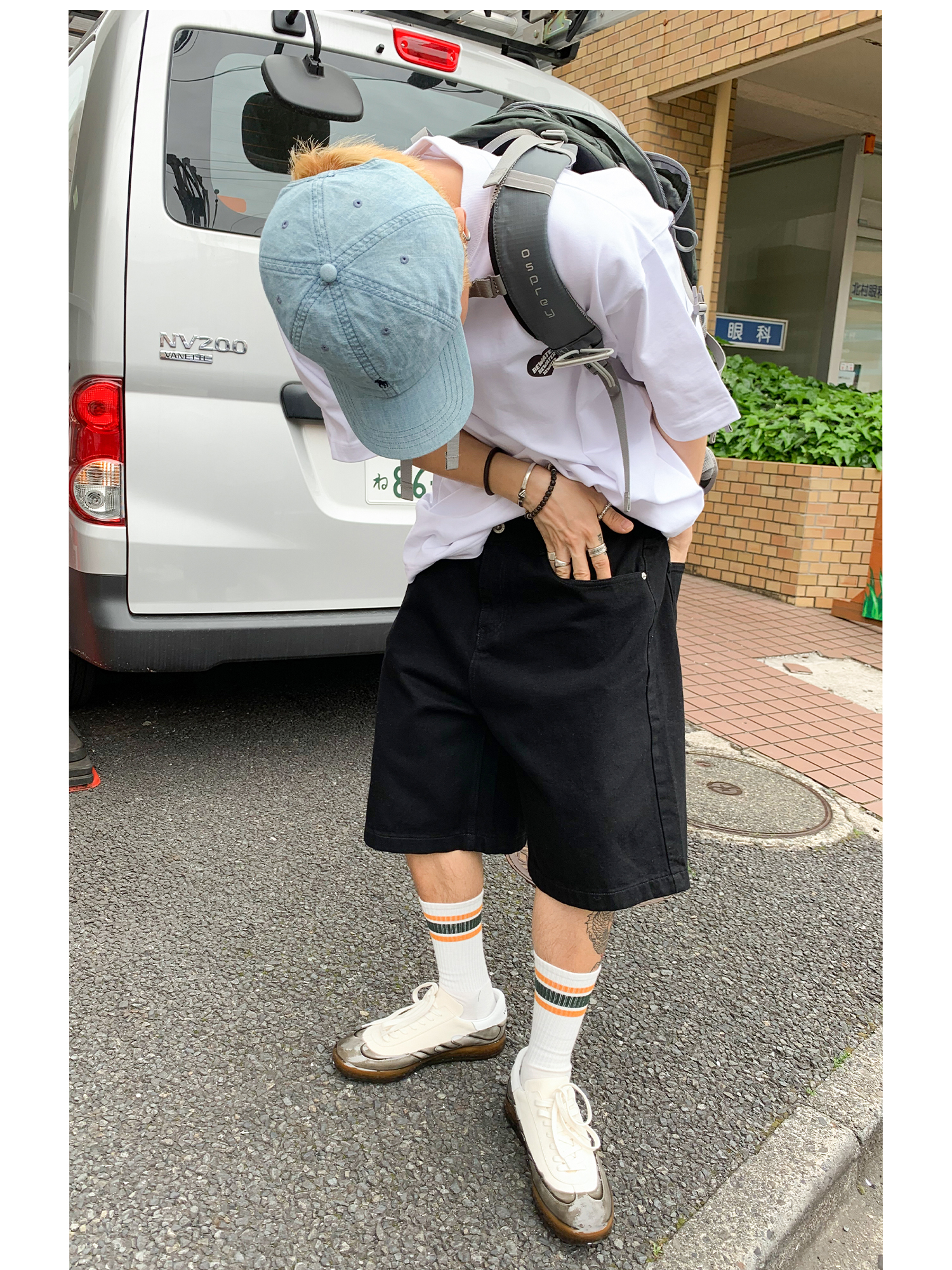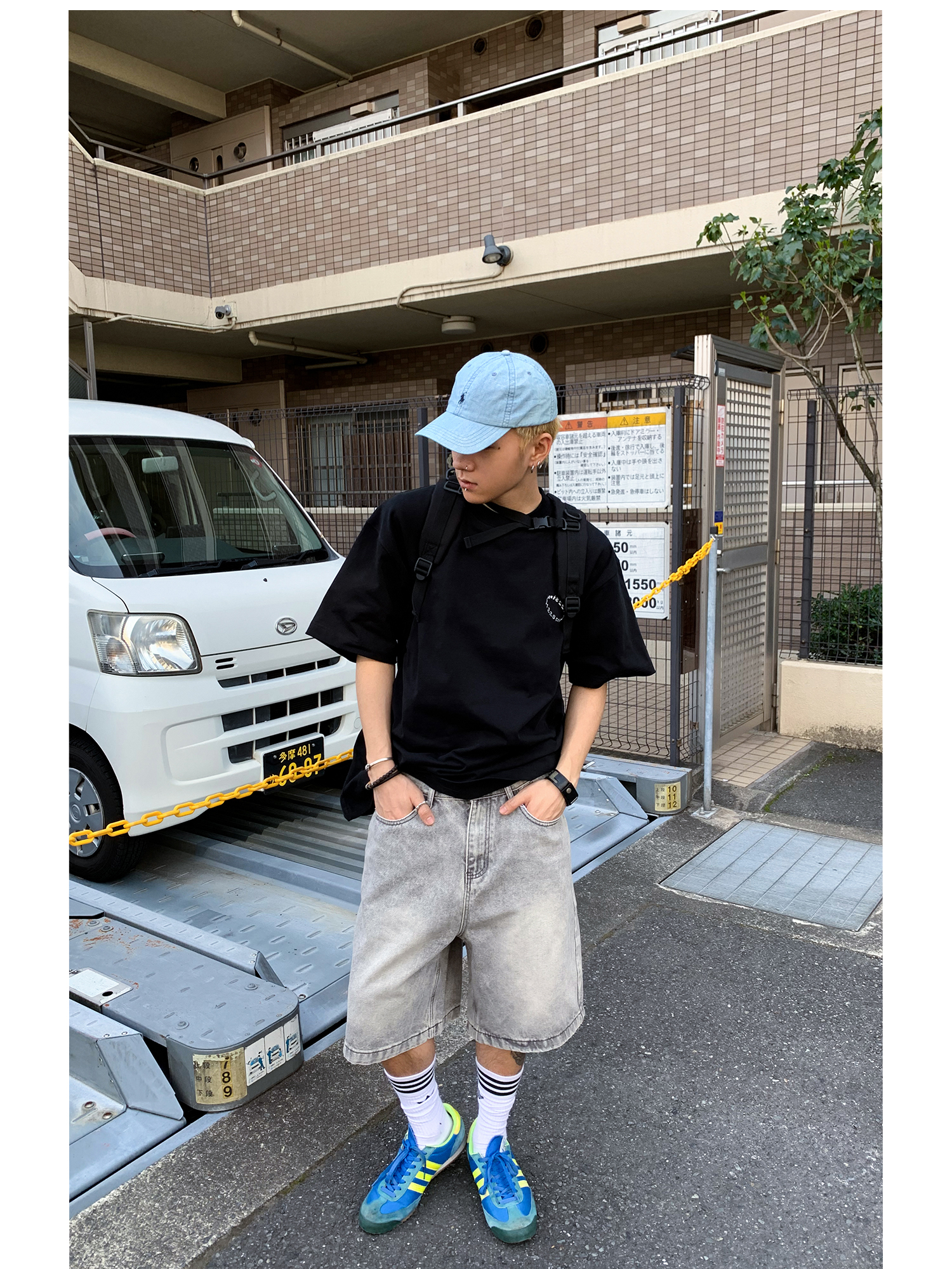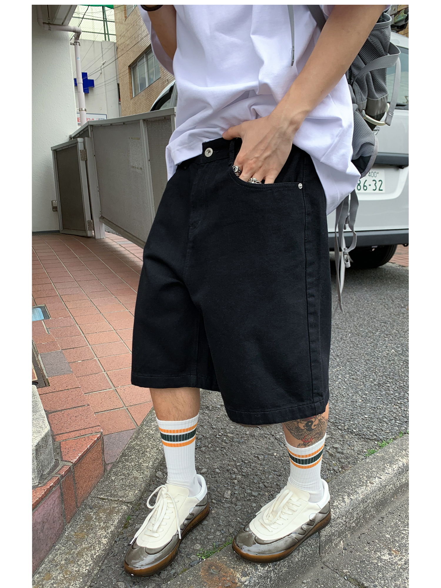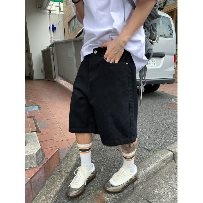 富士見 日系復古牛仔短褲男寬松夏季直筒濶腿休閒水洗五分中褲潮