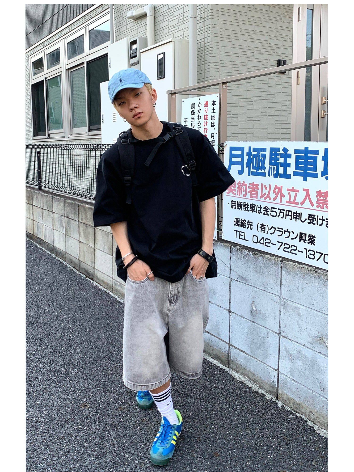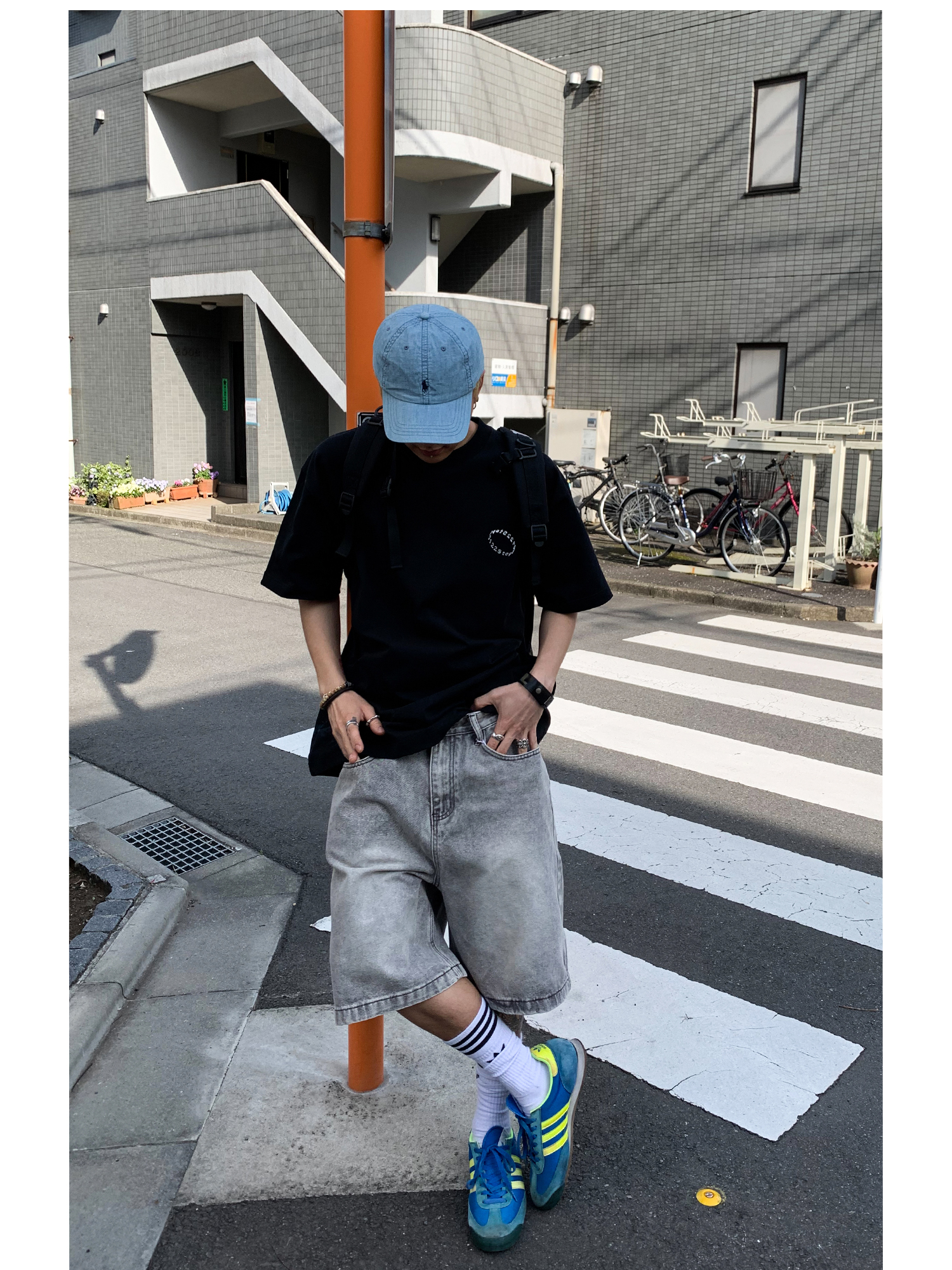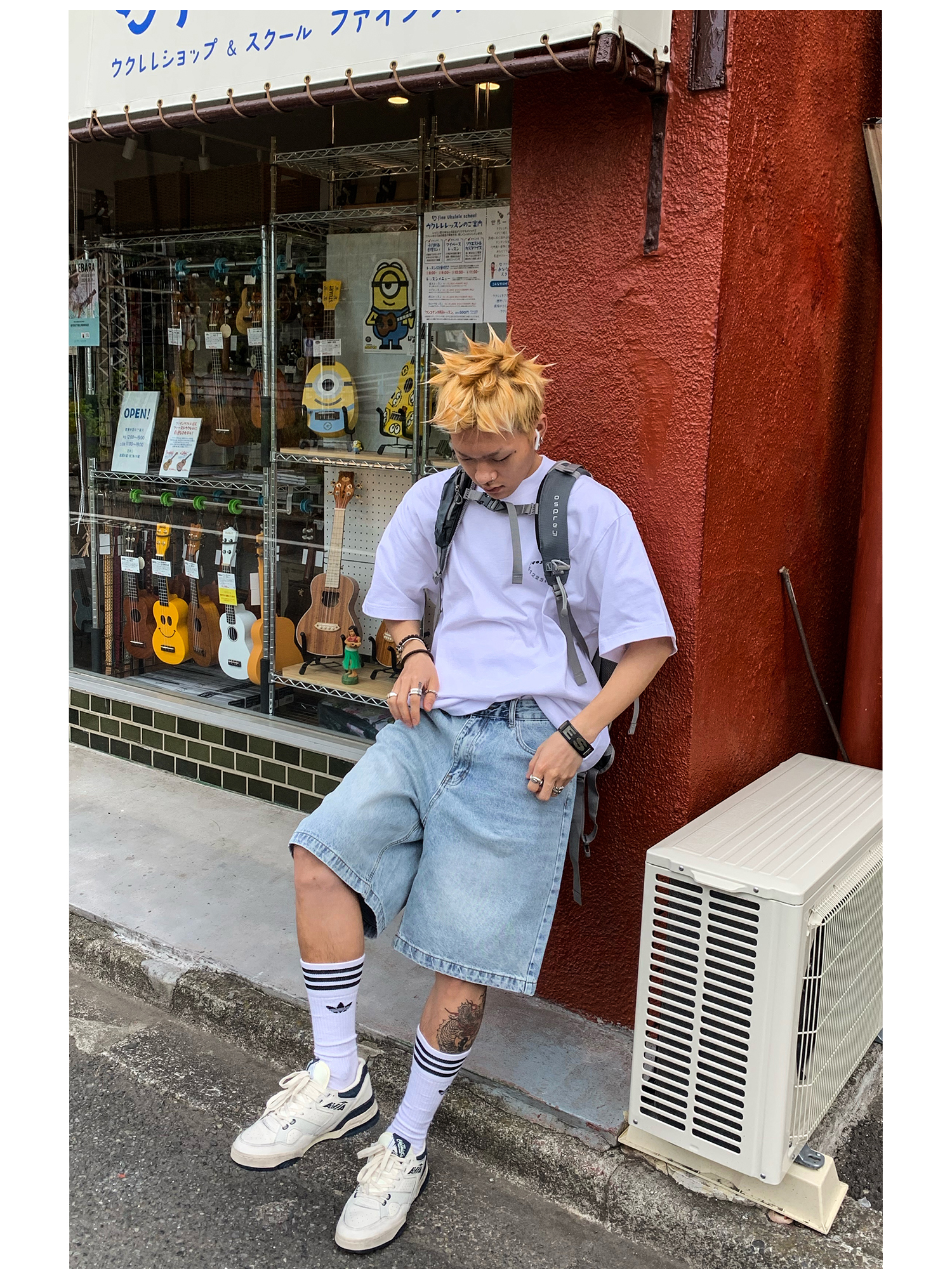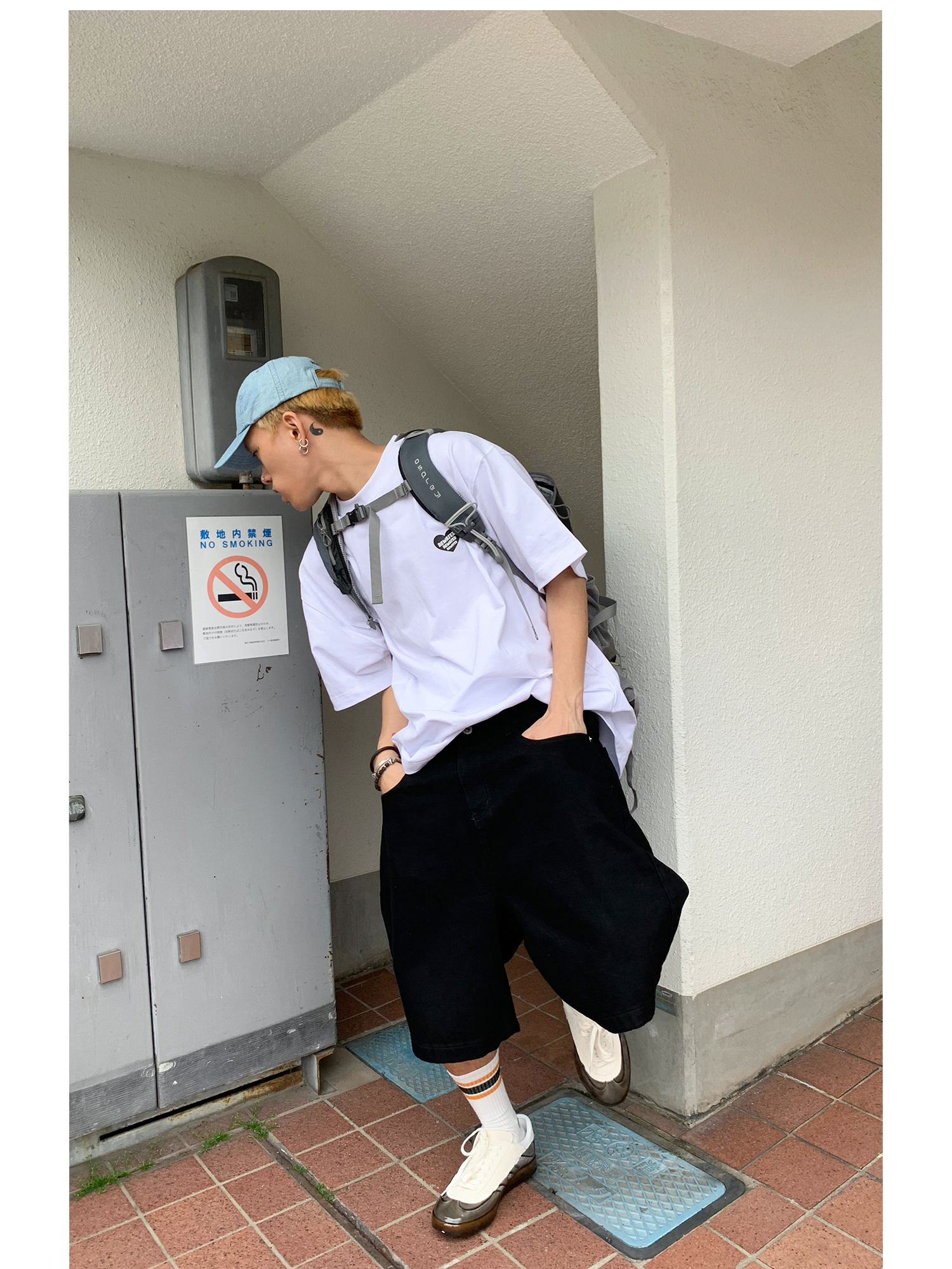 富士見 日系復古牛仔短褲男寬松夏季直筒濶腿休閒水洗五分中褲潮