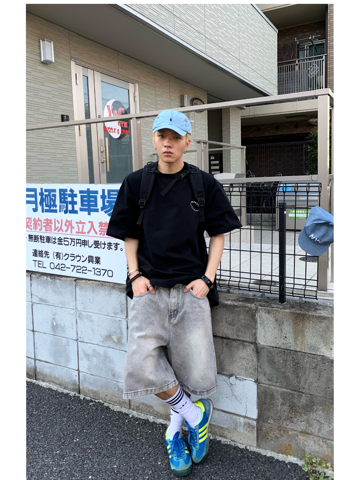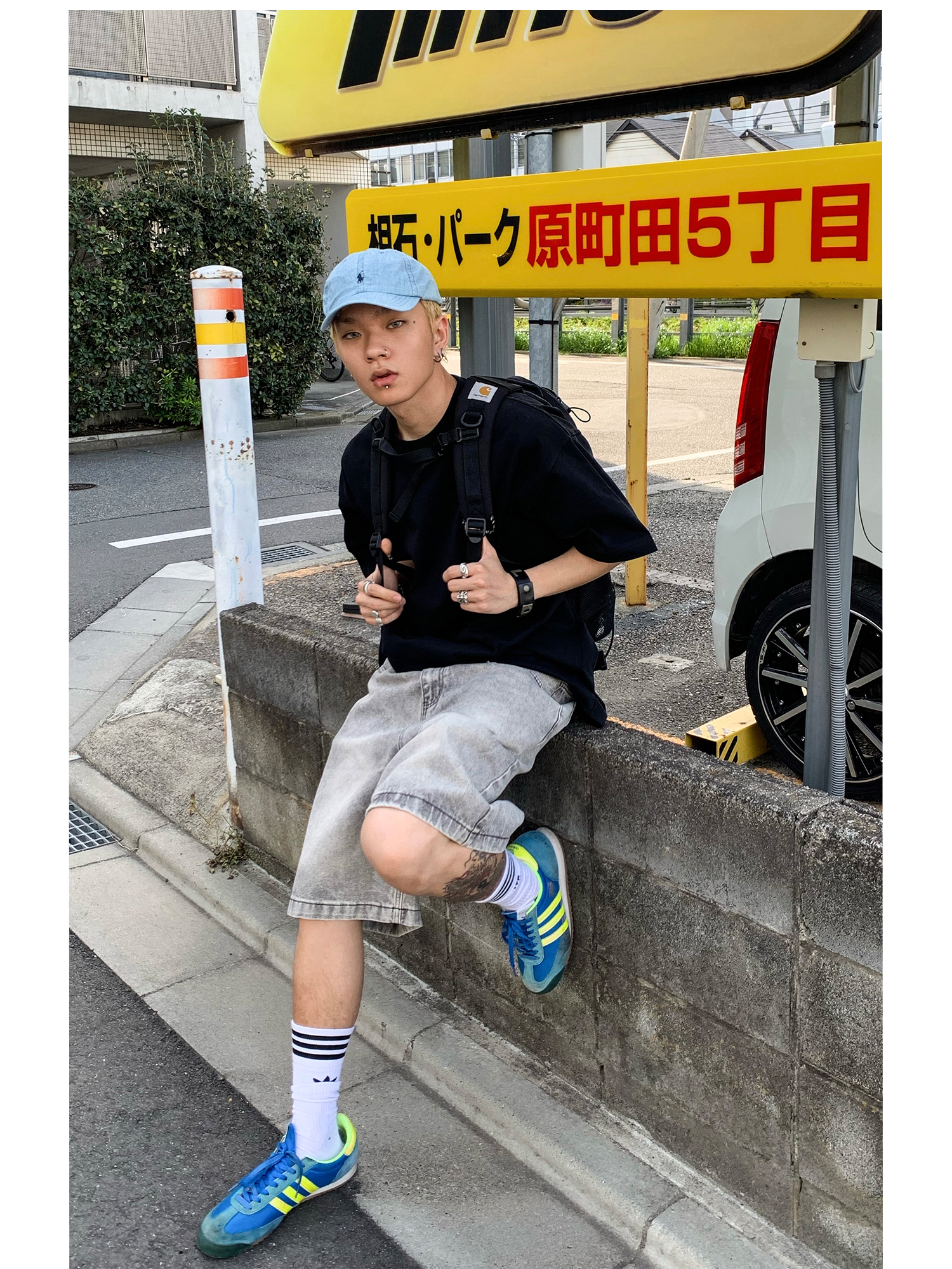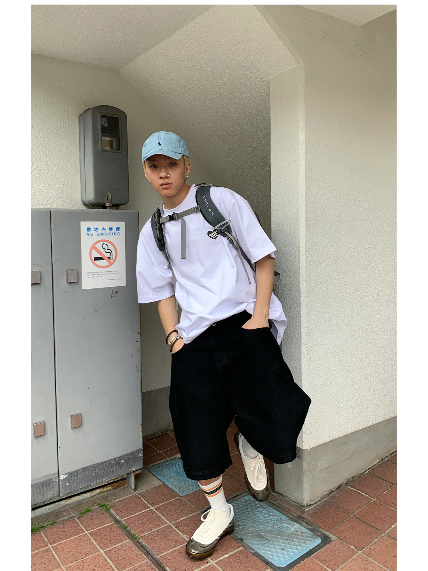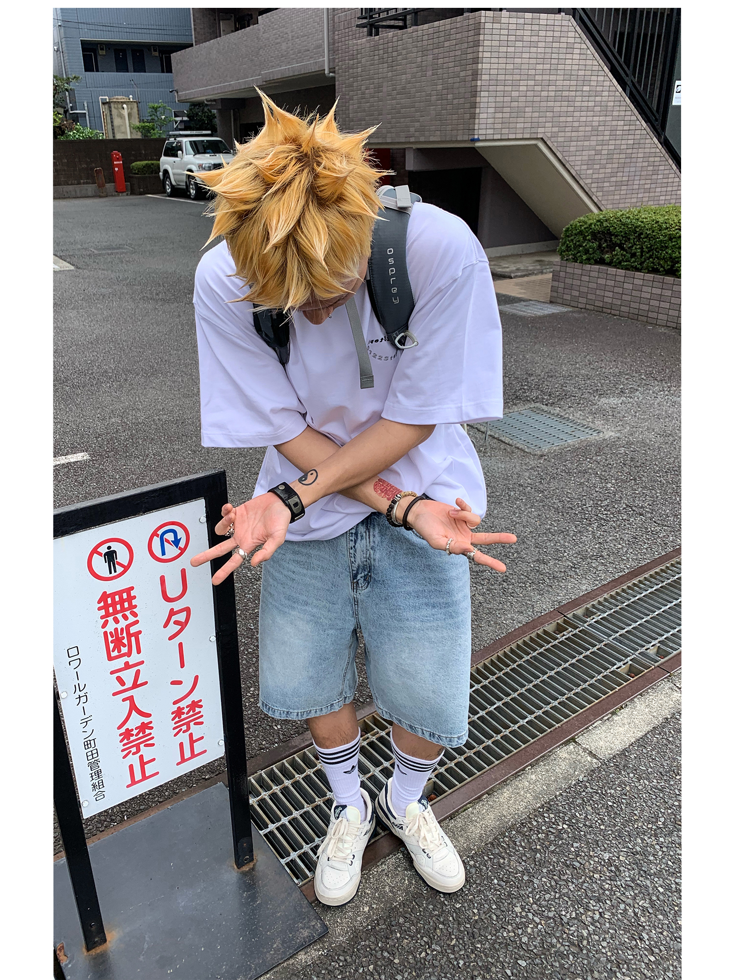 富士見 日系復古牛仔短褲男寬松夏季直筒濶腿休閒水洗五分中褲潮